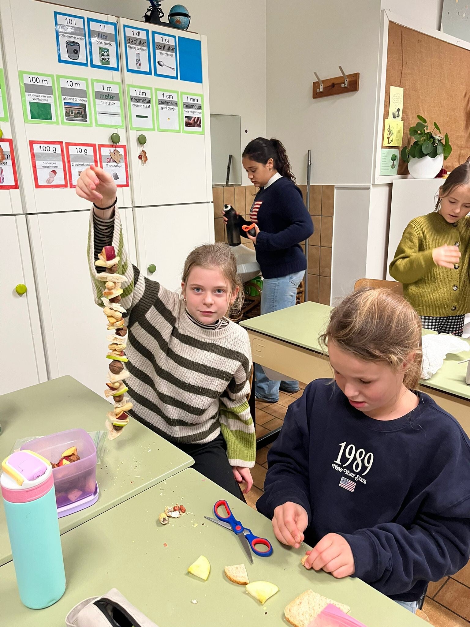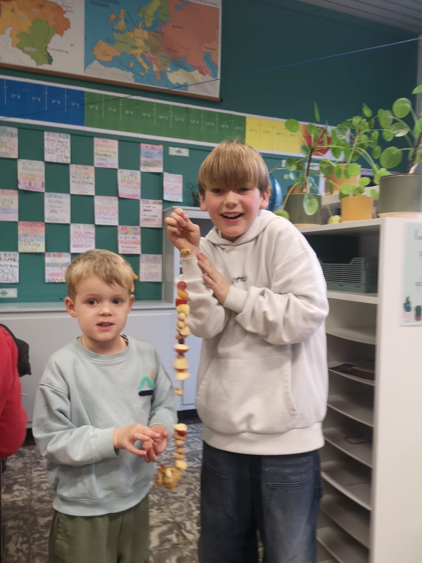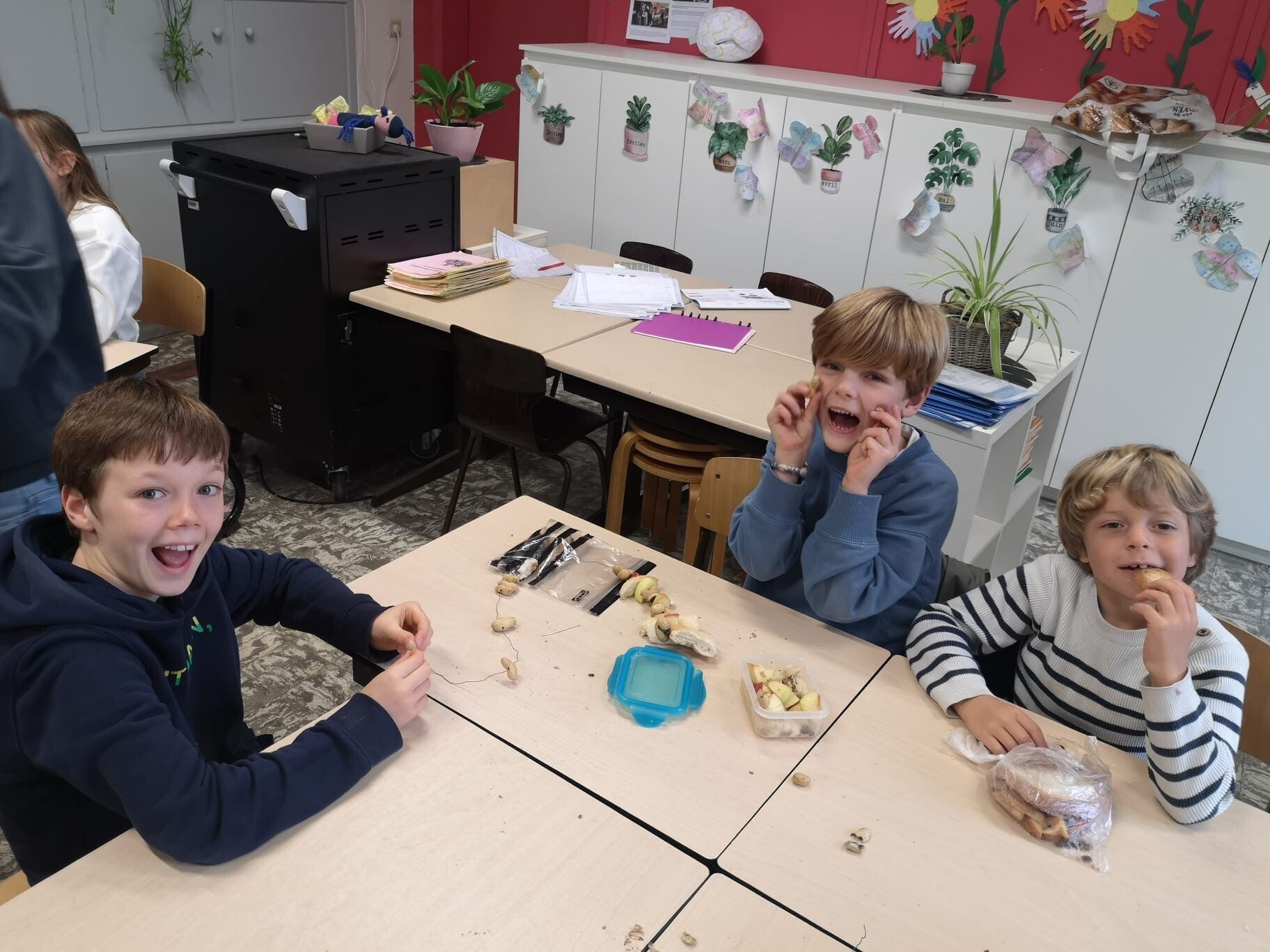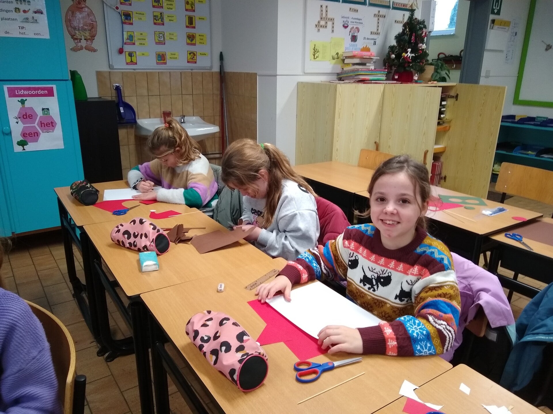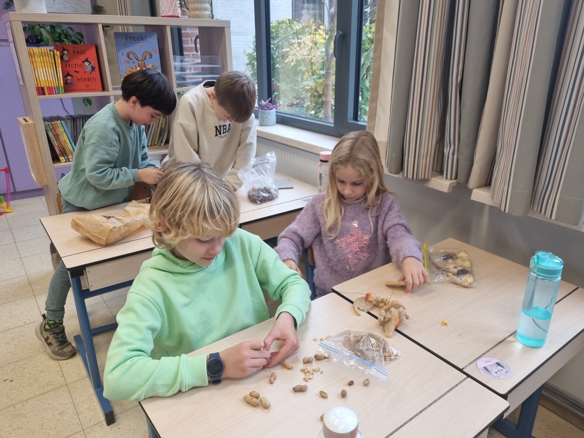 Het andere derde leerjaar knutselde met het zesde leerjaar, het andere tweede leerjaar knutselde met het vijfde leerjaar en het andere vierde leerjaar knutselde met het tweede zesde leerjaar.