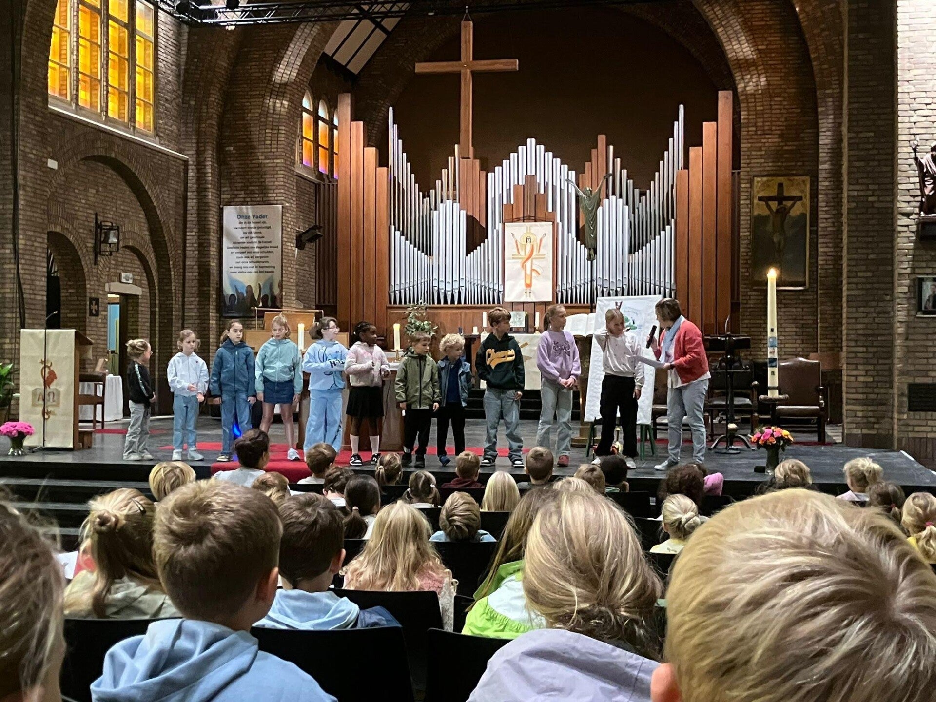 Pastoor Jos benadrukte dat we dankbaar moeten zijn; dankbaar voor het wonder van het leven! Dankbaar zijn we ook voor dit moment van samenzijn in onze kerk. We blijven hopen dat we dit met onze school nog lang mogen en kunnen blijven doen!