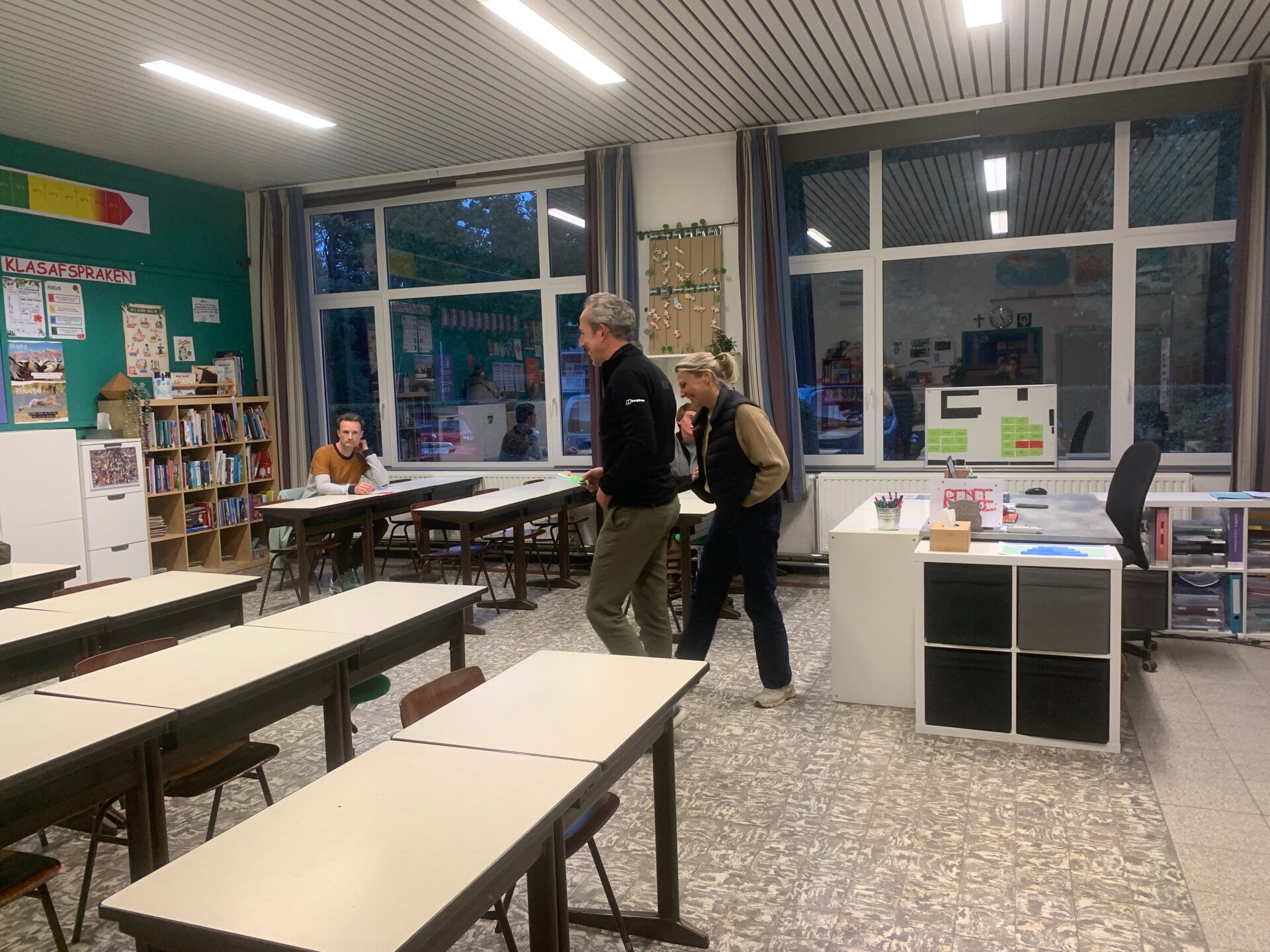 In sommige klassen werden de ouders zelfs in actie gezet met een leuke zoektocht om zo de zitplaats van hun kind te ontdekken – een speelse en originele manier om de klas te verkennen! Daarnaast kregen ouders in sommige klassen de mogelijkheid om een persoonlijk briefje te schrijven voor hun kind. Deze kleine verrassing vonden de kinderen de volgende dag terug in hun bank, wat voor heel wat blije gezichten zorgde.