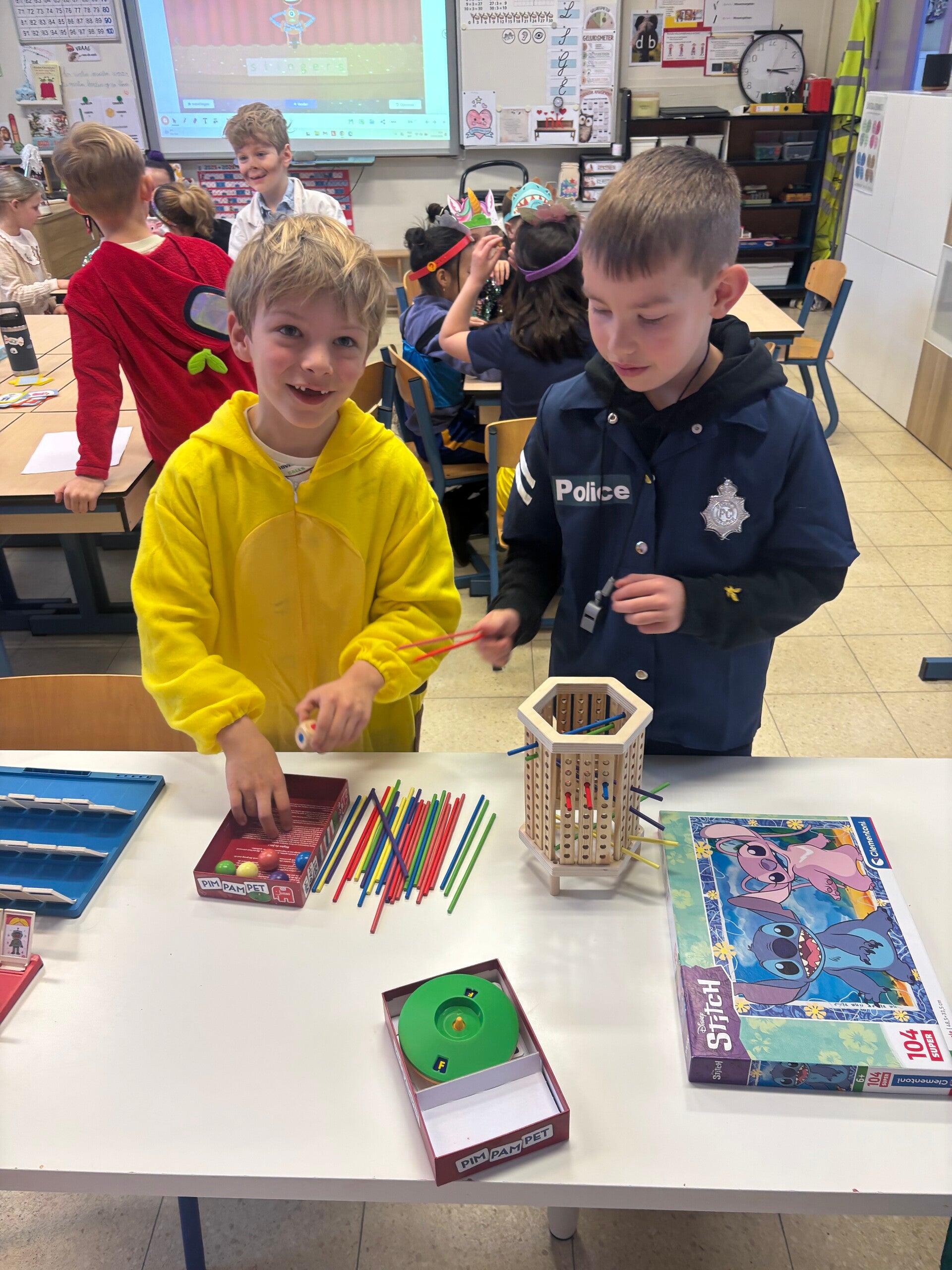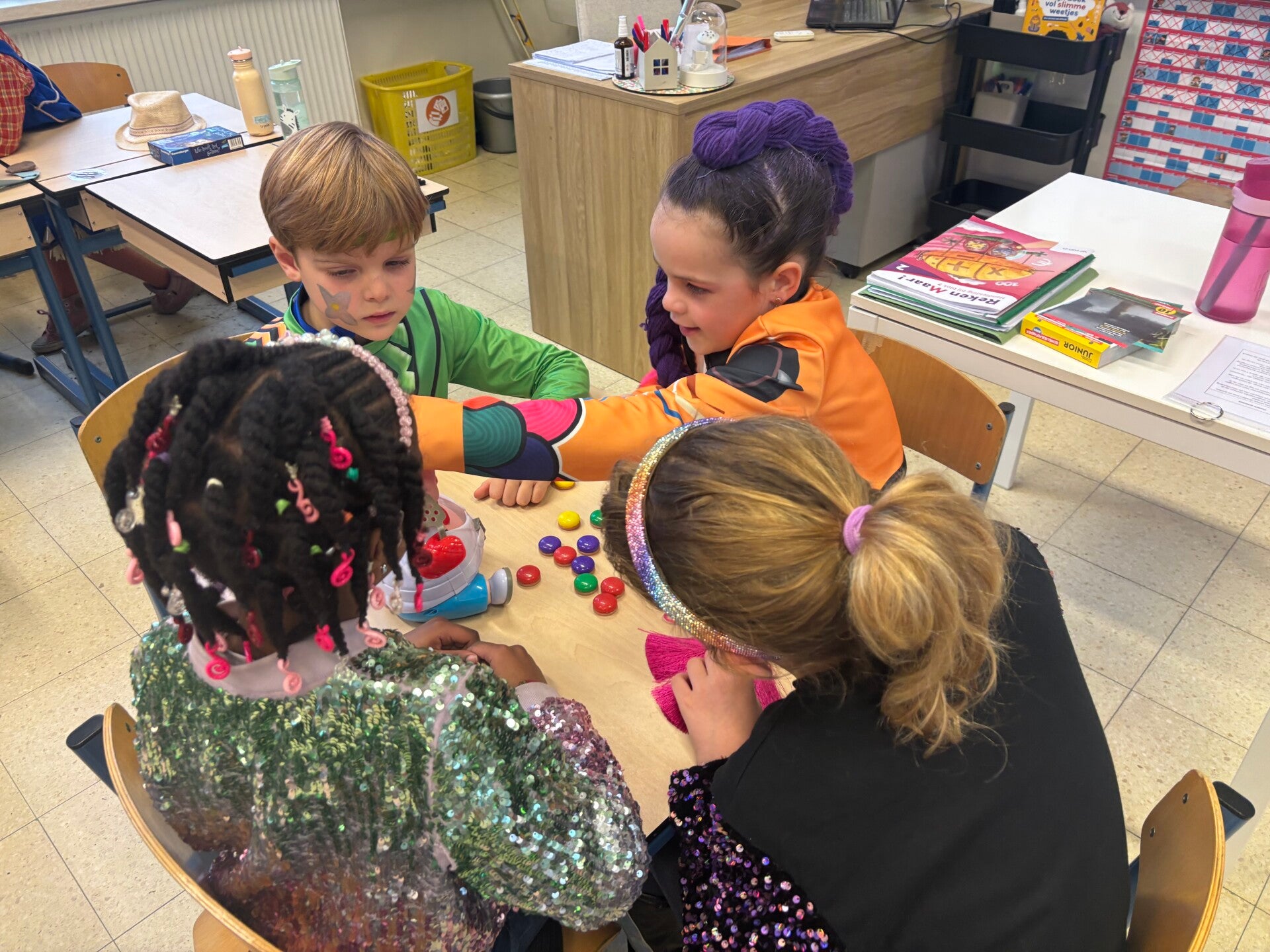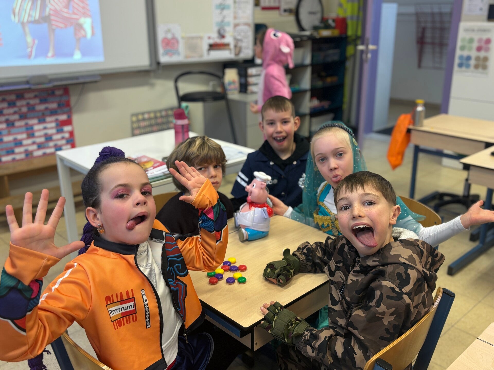 Deze maand vierden de kinderen en leerkrachten carnaval! We trokken onze verkleedkleren aan, luisterden naar feestmuziek en zagen ook gekke dansjes op de speelplaats. Wat een leuke tijd!