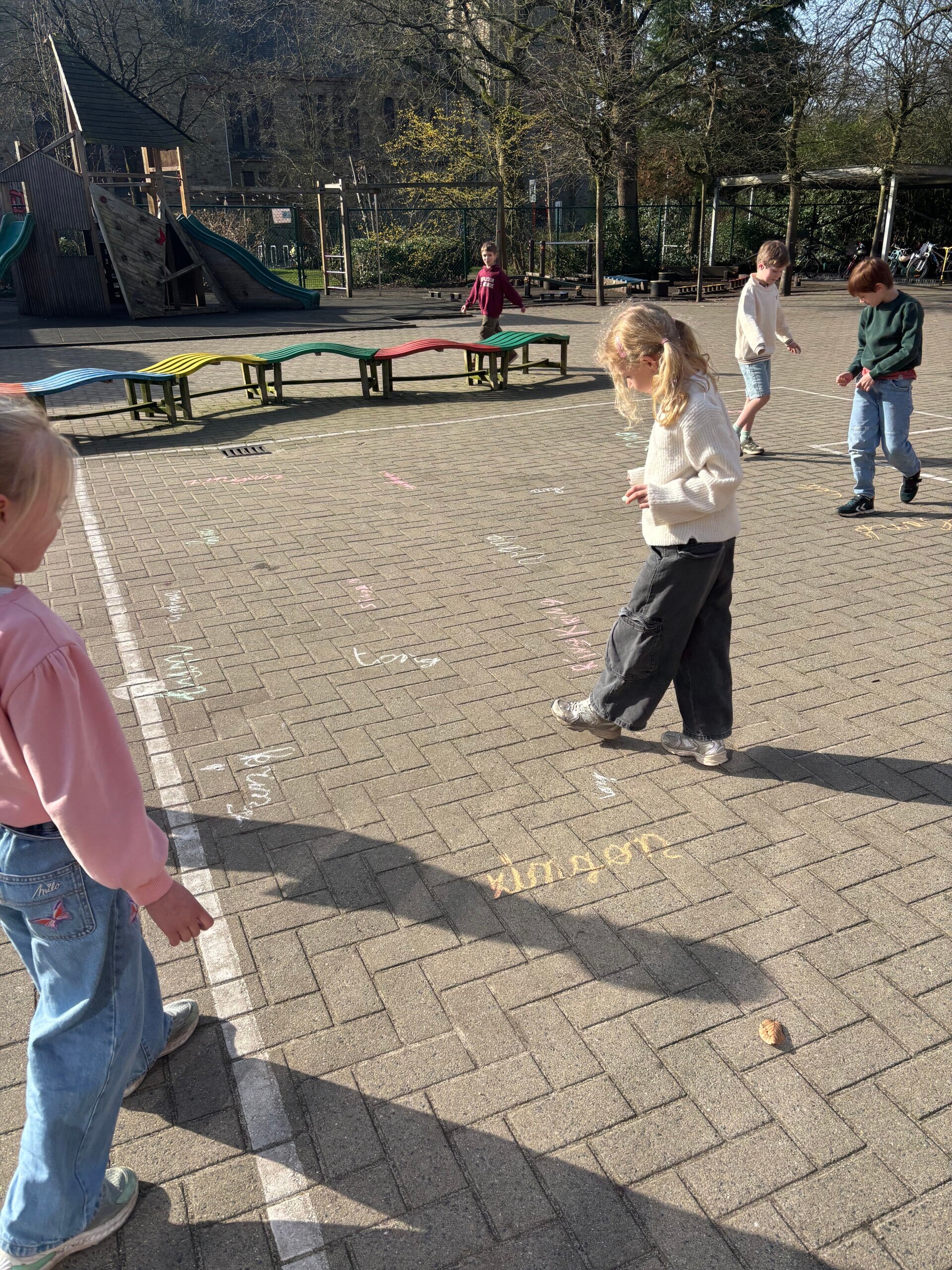 Het ei dat we in het begin van het schooljaar voor onze klassen kregen, is ondertussen uitgebroed. Nu het stilaan wat kouder wordt buiten, wilde Mama Pia graag dat we extra eten maakten voor haar kuikentjes. Daarom gingen we samen met kinderen van andere klassen aan de slag met voedsel- en pindaslingers.