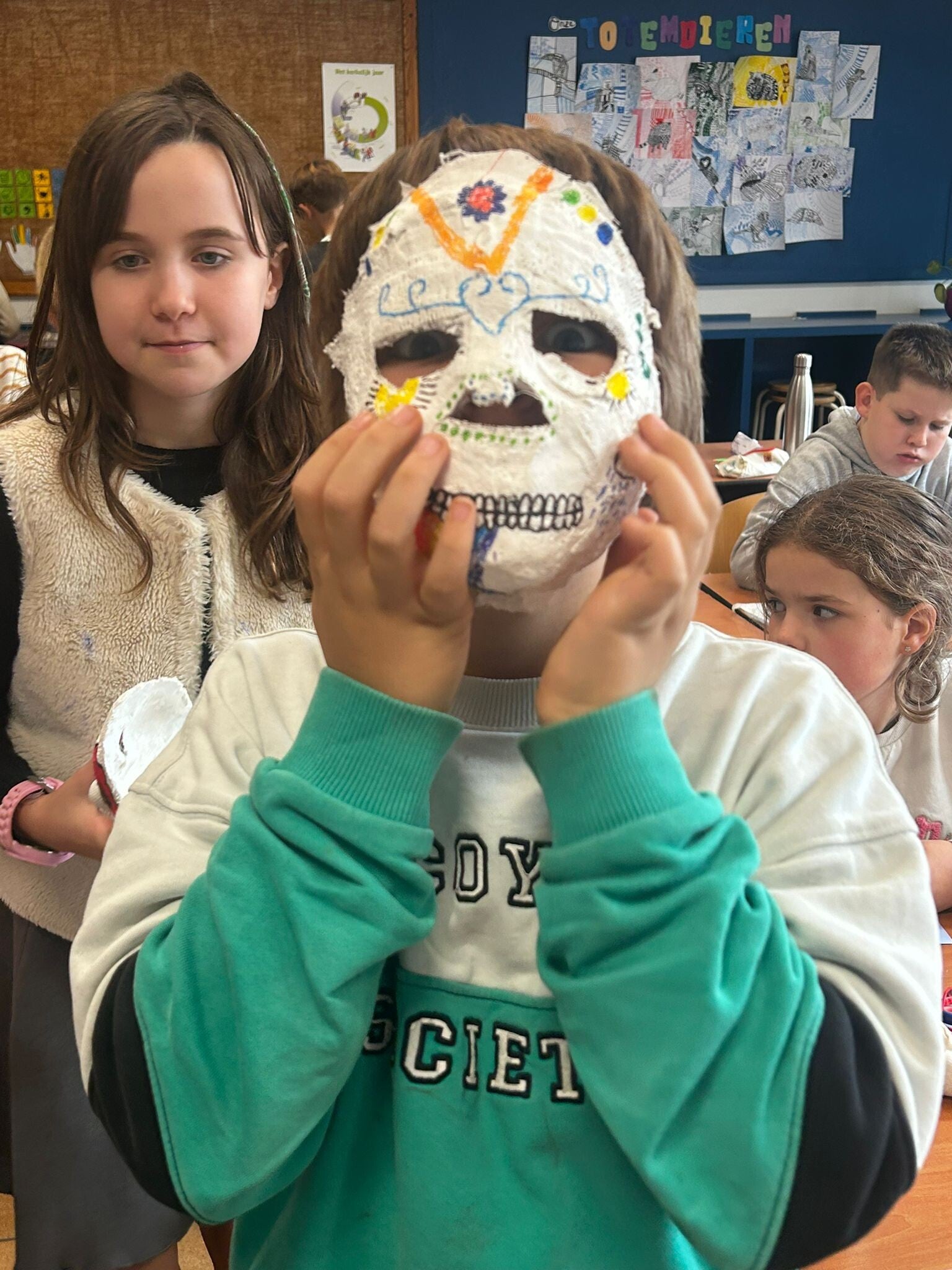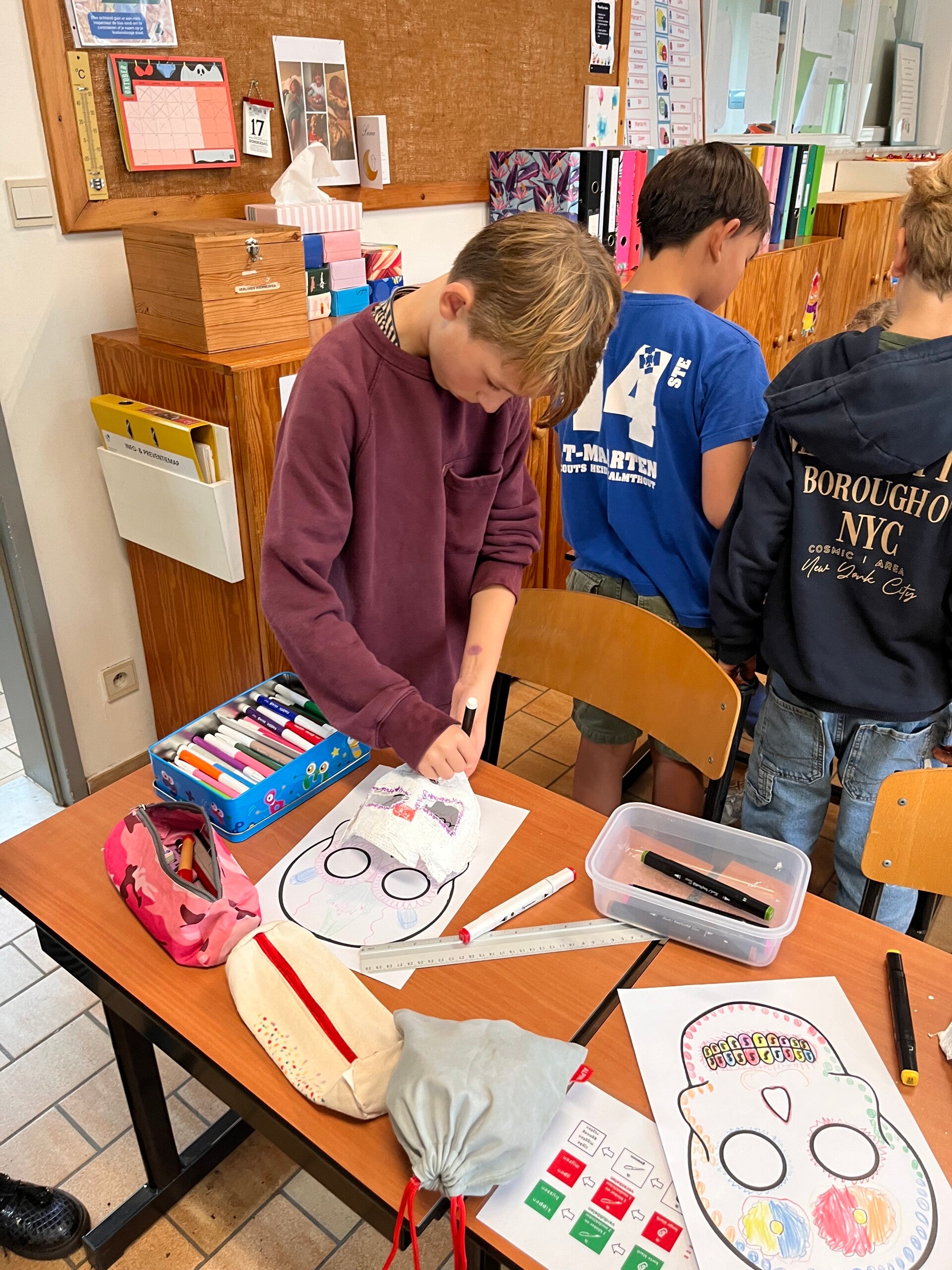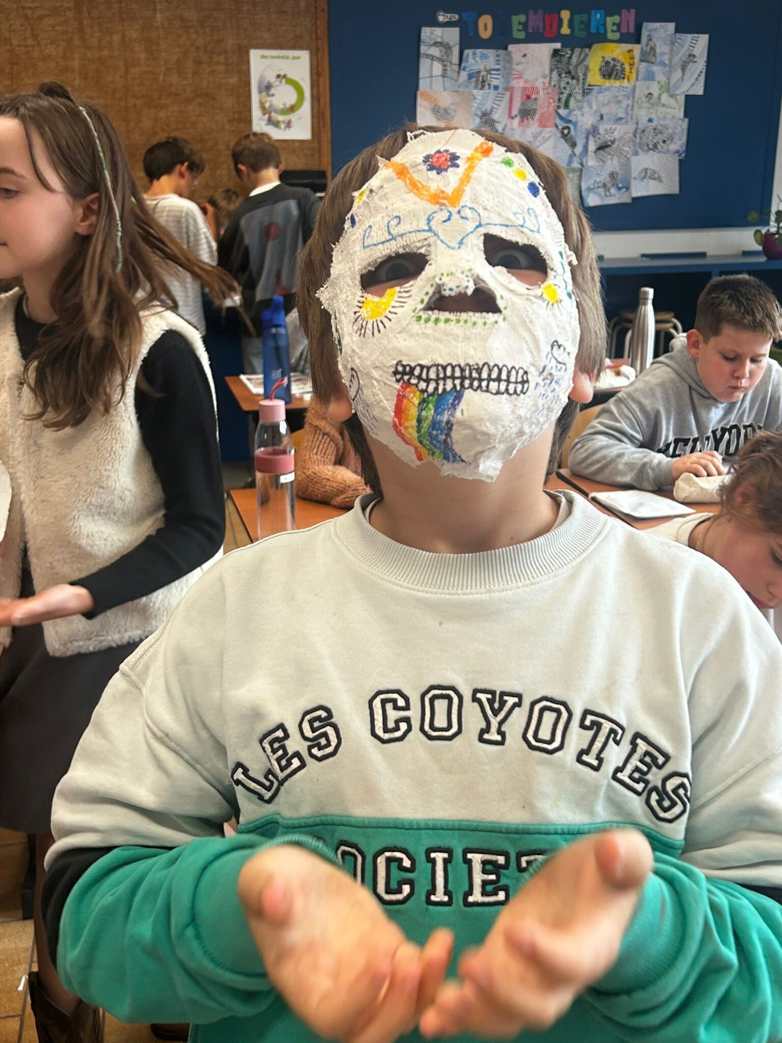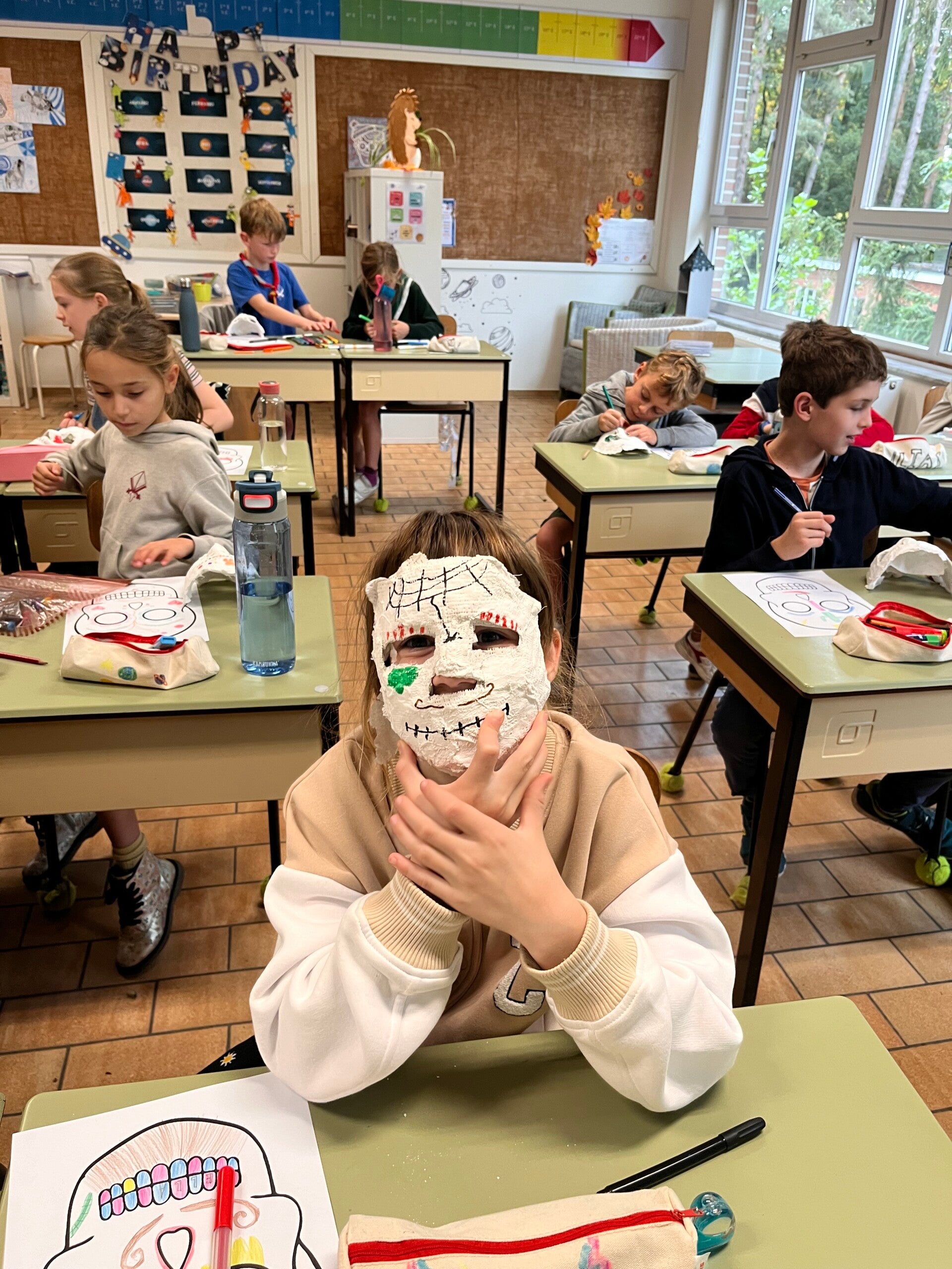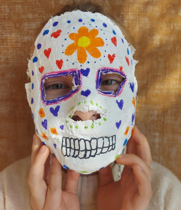 Wij knutselden enge maar mooie maskers voor de "dag des doods": dia de los muertos. Kijk je mee naar de resultaten?
