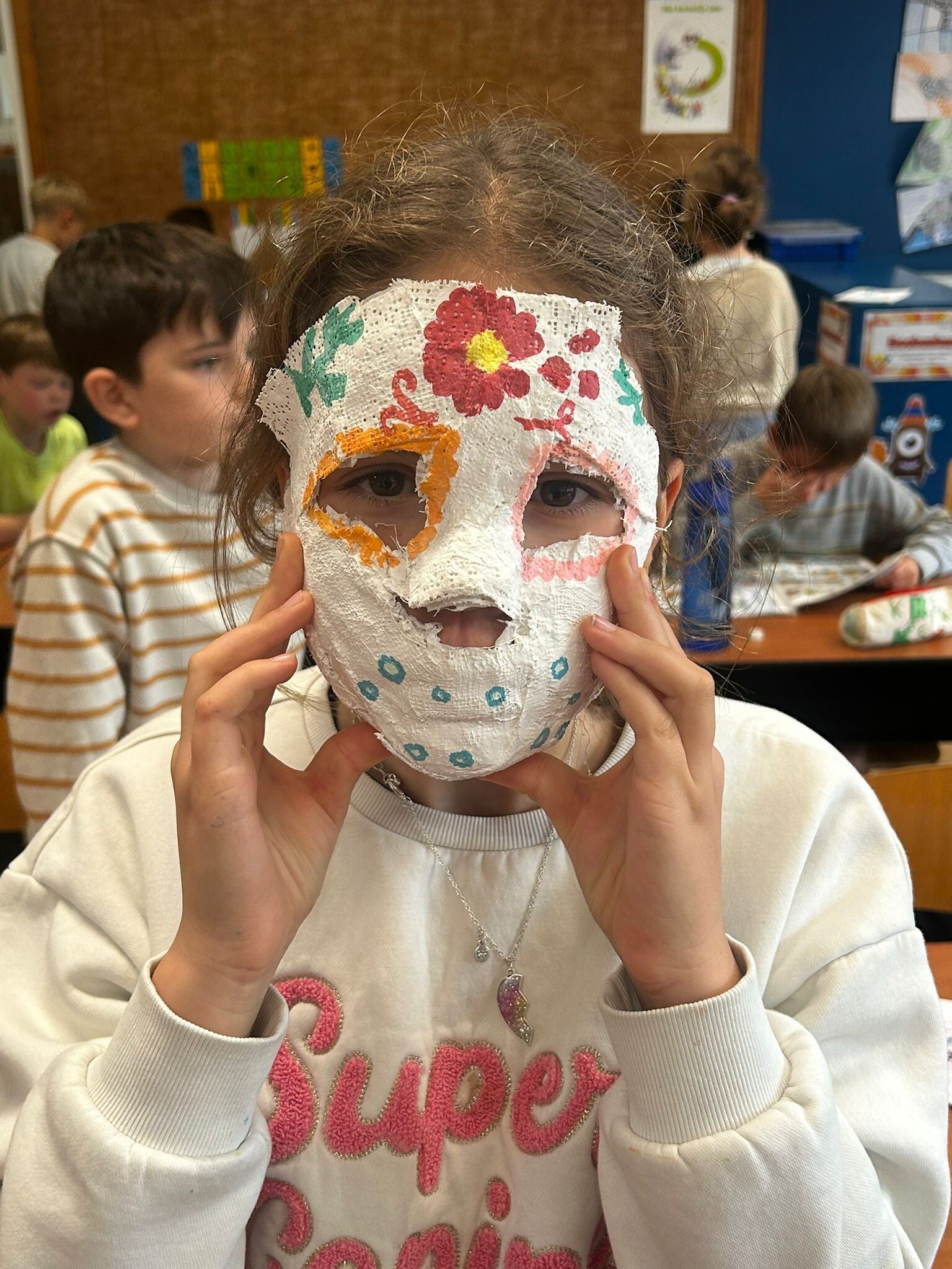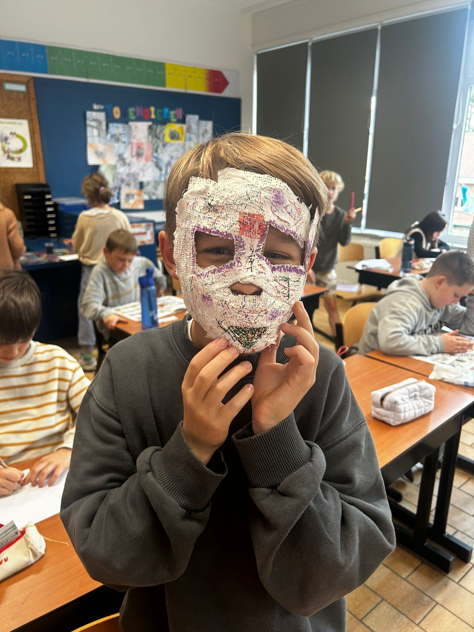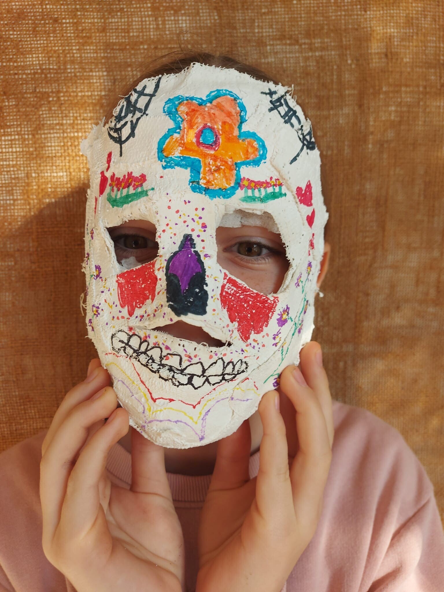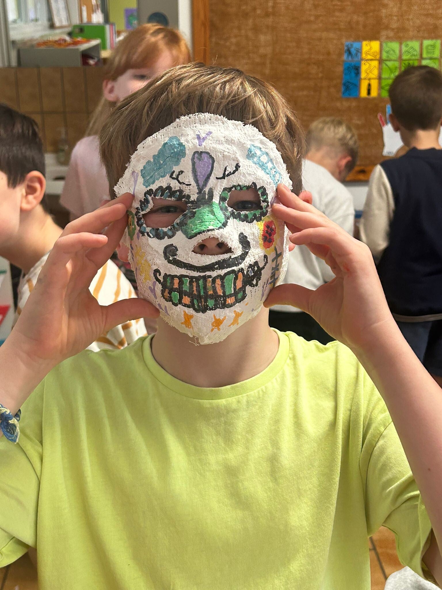 Wij knutselden enge maar mooie maskers voor de "dag des doods": dia de los muertos. Kijk je mee naar de resultaten?