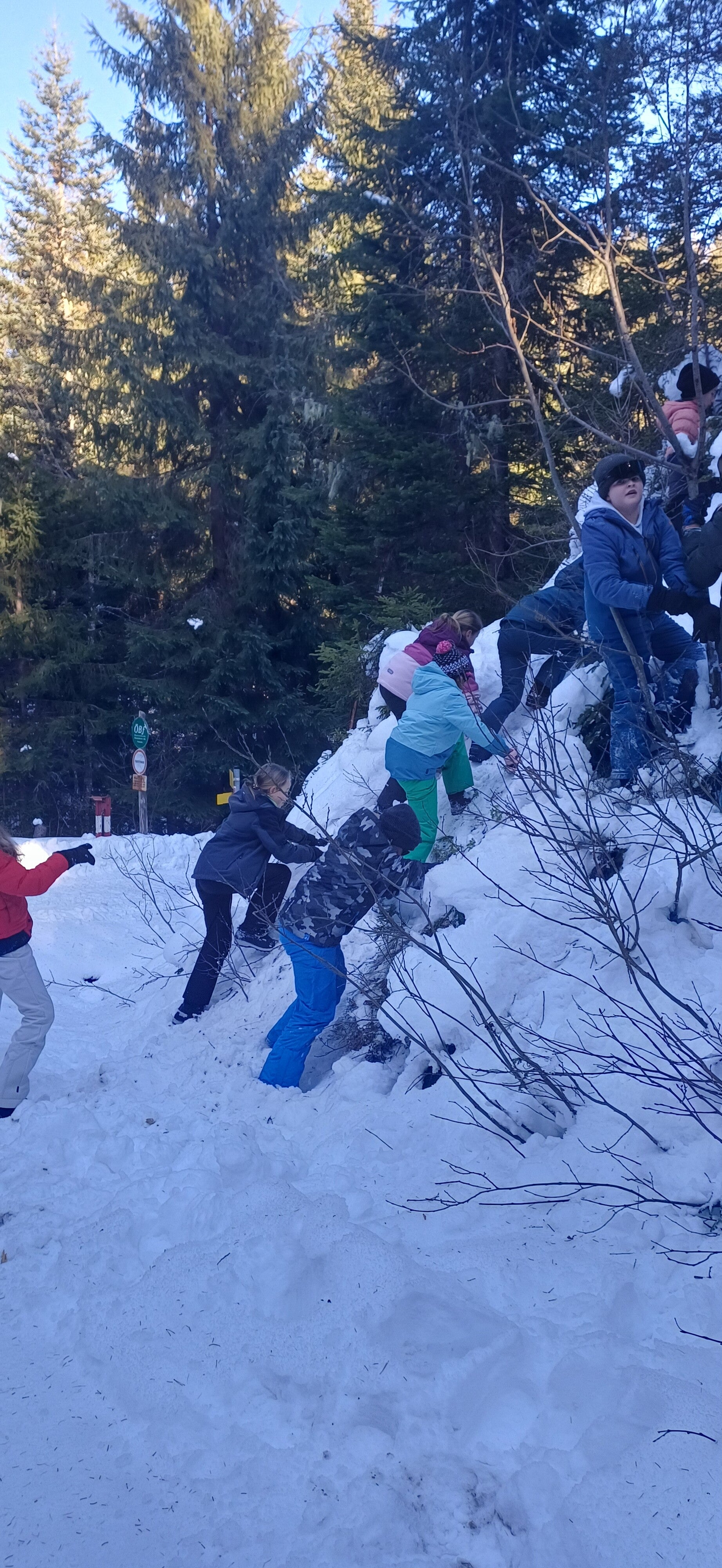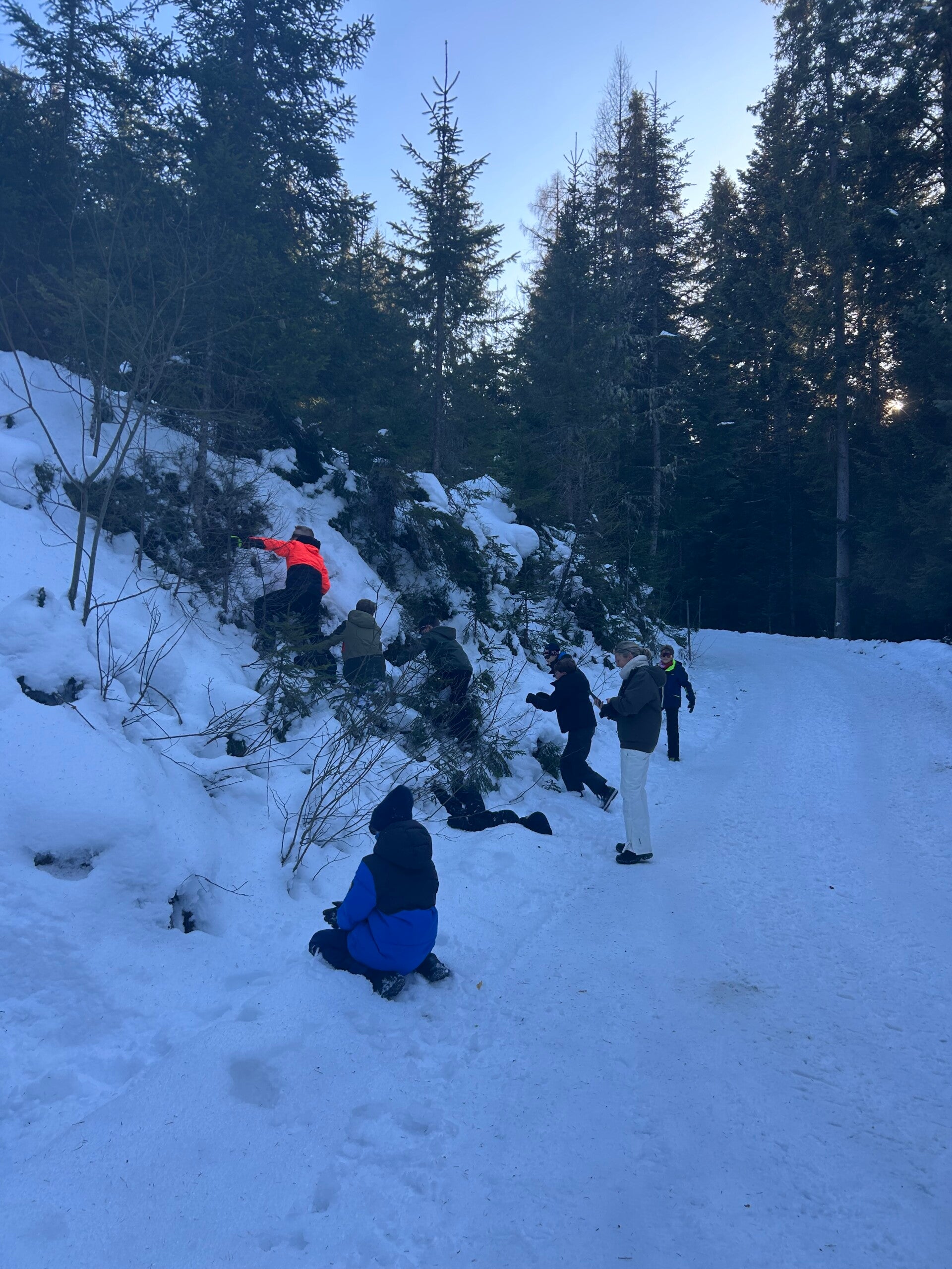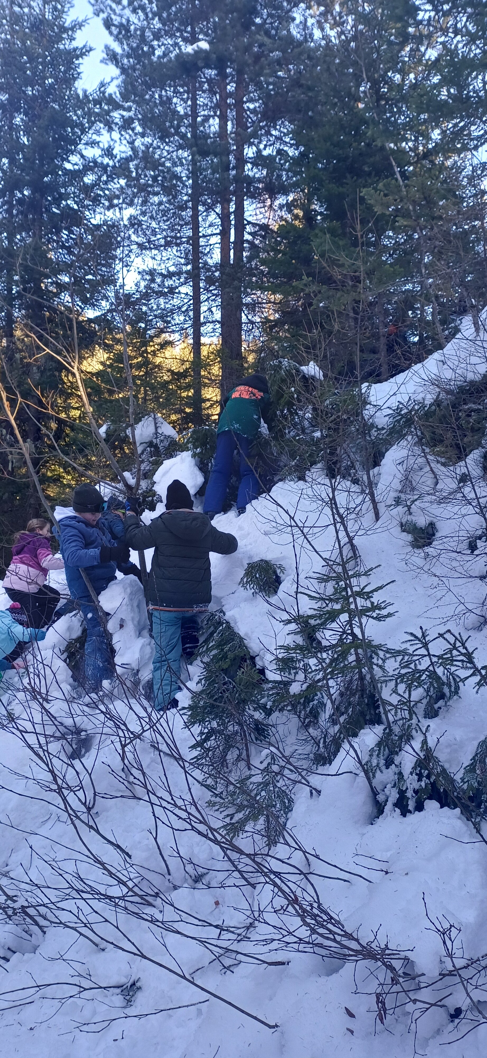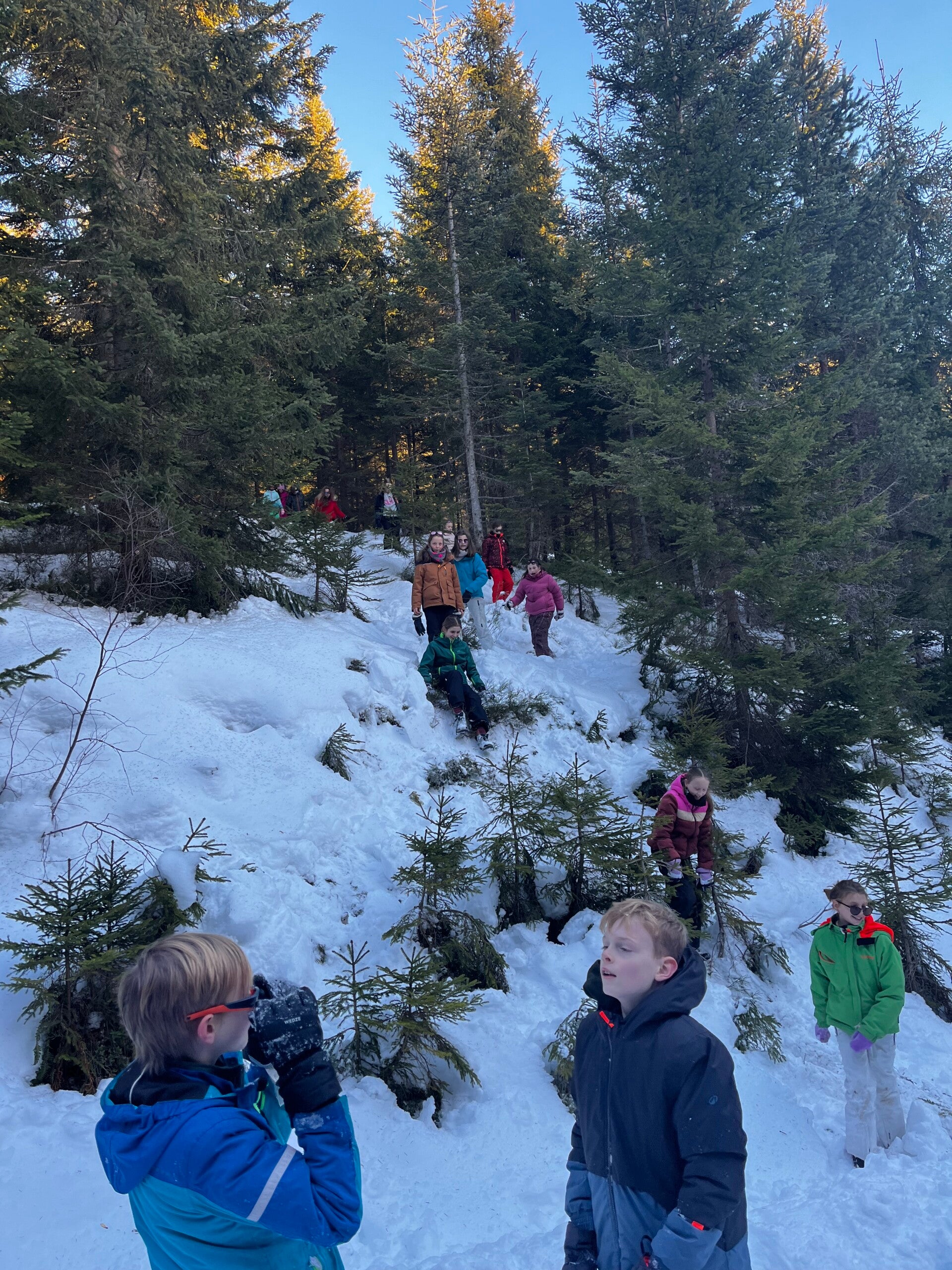 Dan gingen we terug naar het pension, dat was echt een avontuurlijke ervaring. Bergen, beekjes, putten, heuvels, veel sneeuw en ook vooral veel diepe sneeuw trotseerden we.