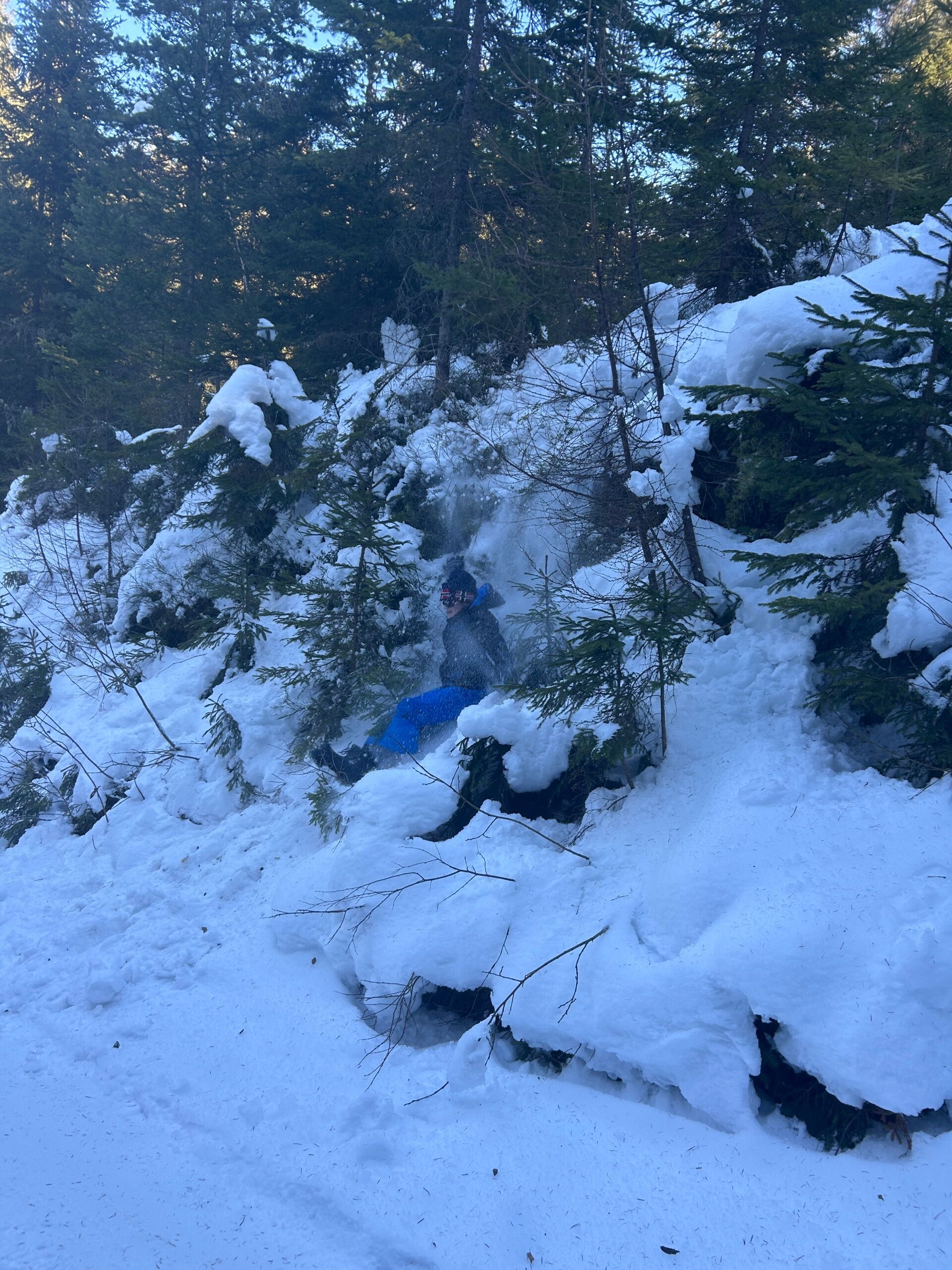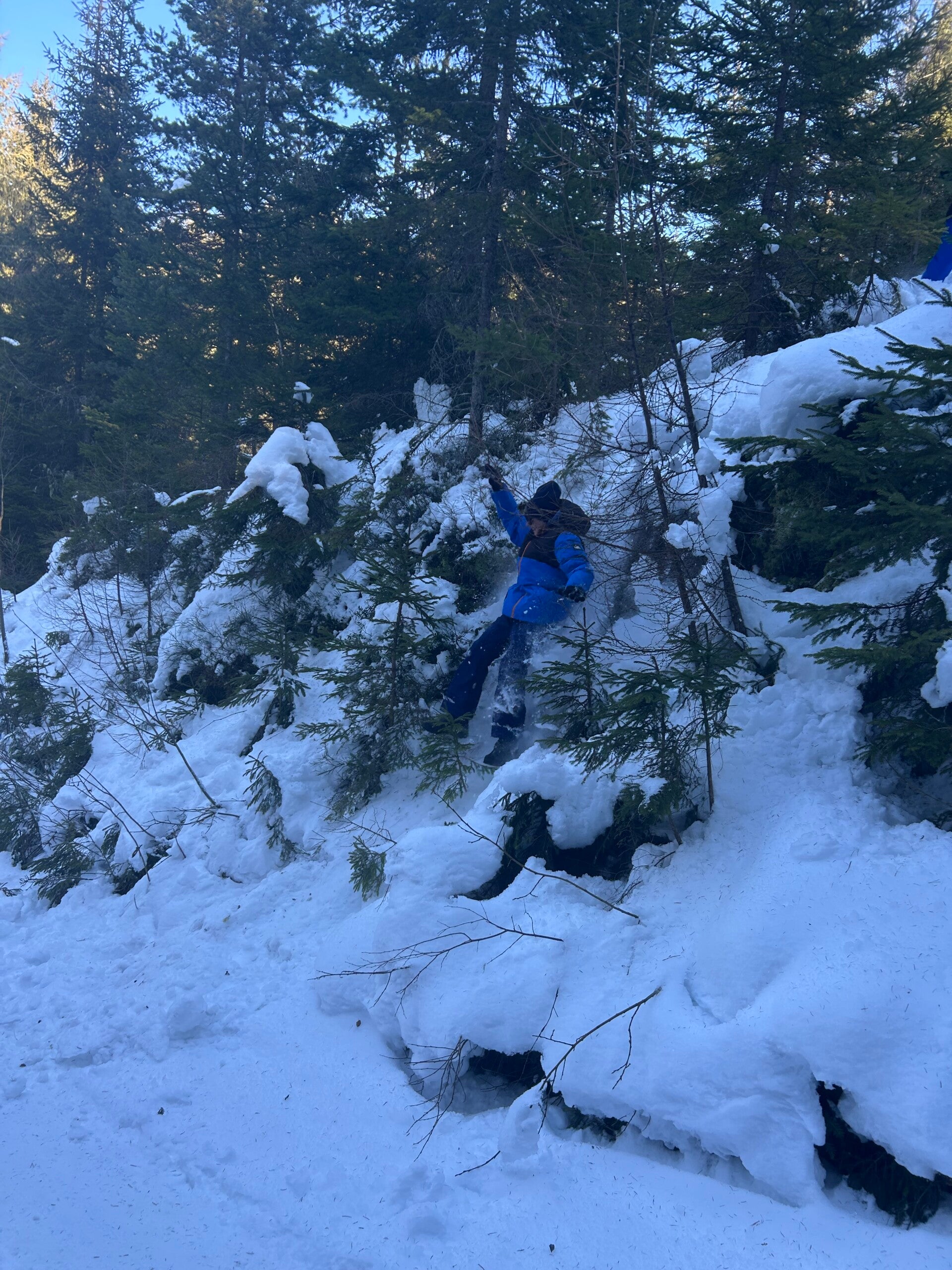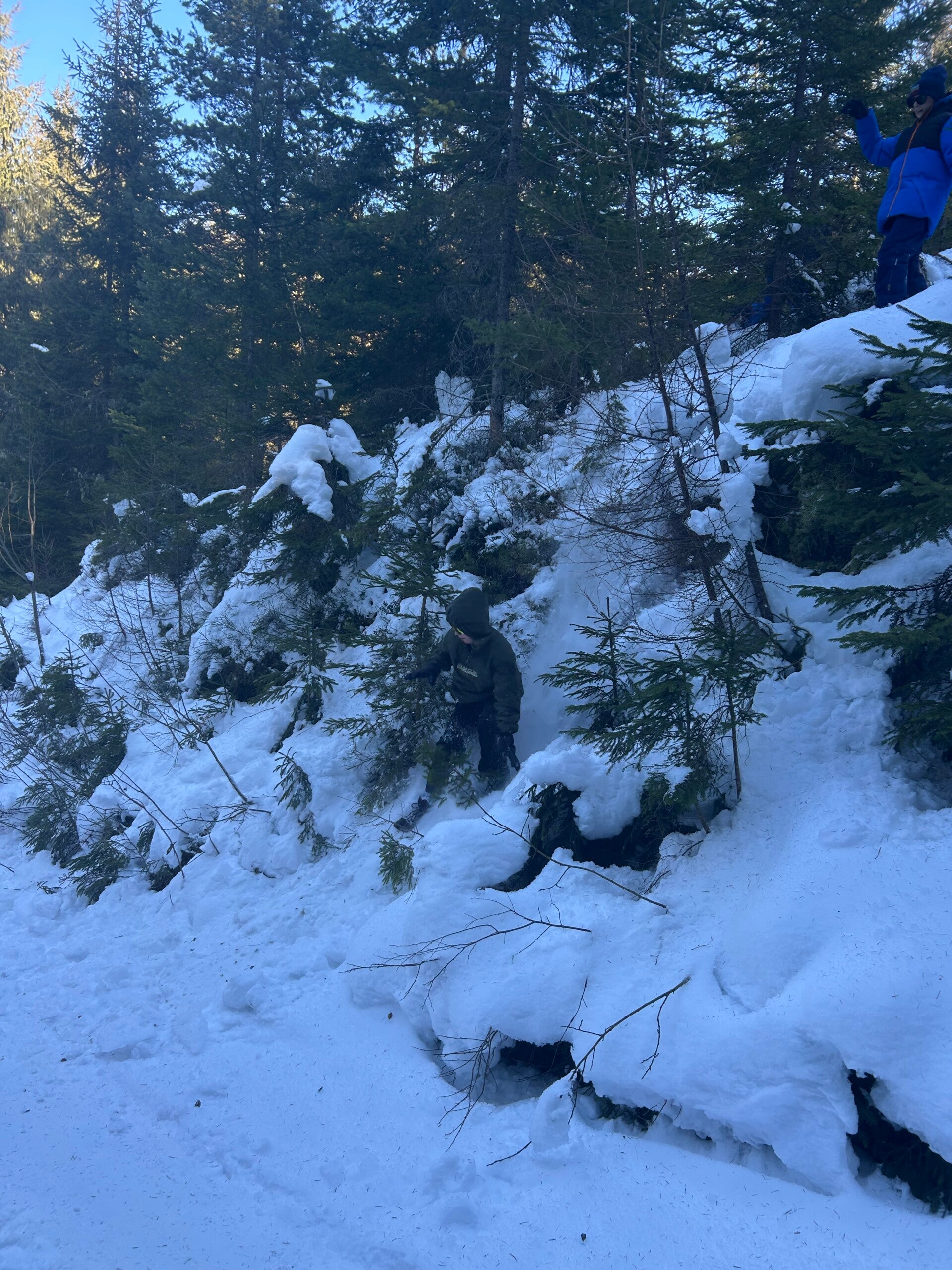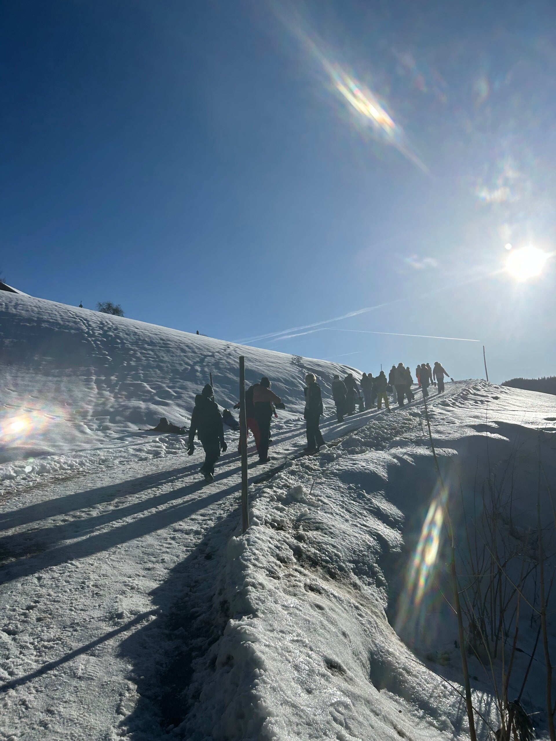Dan gingen we terug naar het pension, dat was echt een avontuurlijke ervaring. Bergen, beekjes, putten, heuvels, veel sneeuw en ook vooral veel diepe sneeuw trotseerden we.