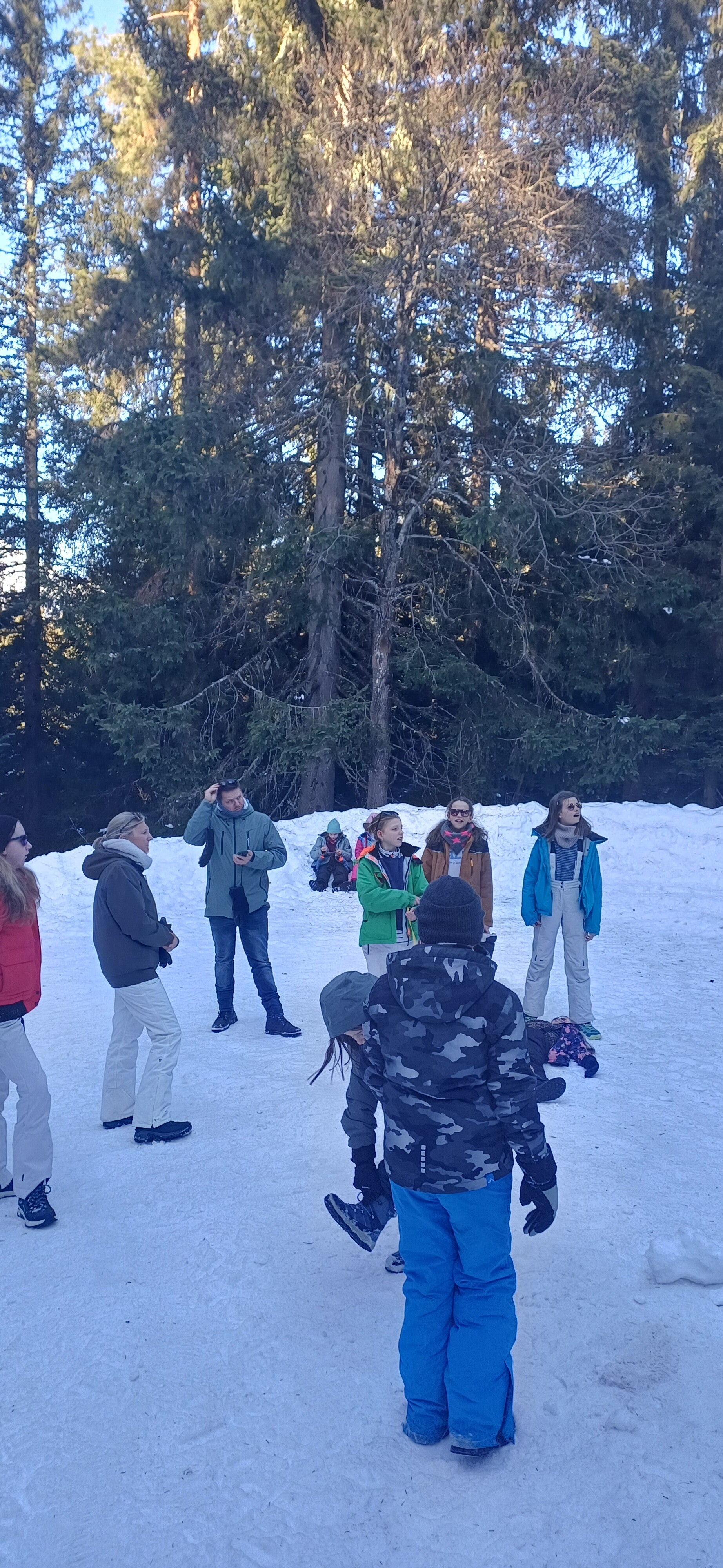 We hebben heel hard gelachen, om welke reden, dat hoor je zondag wel. Er was een groot sneeuwballengevecht van heel het 6e: iedereen tegen iedereeen. Sommige haren en vooral kleren hingen vol met sneeuw.