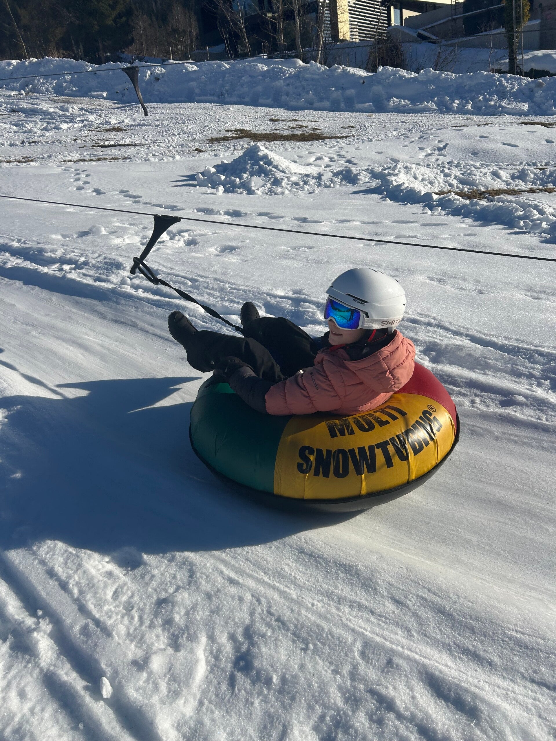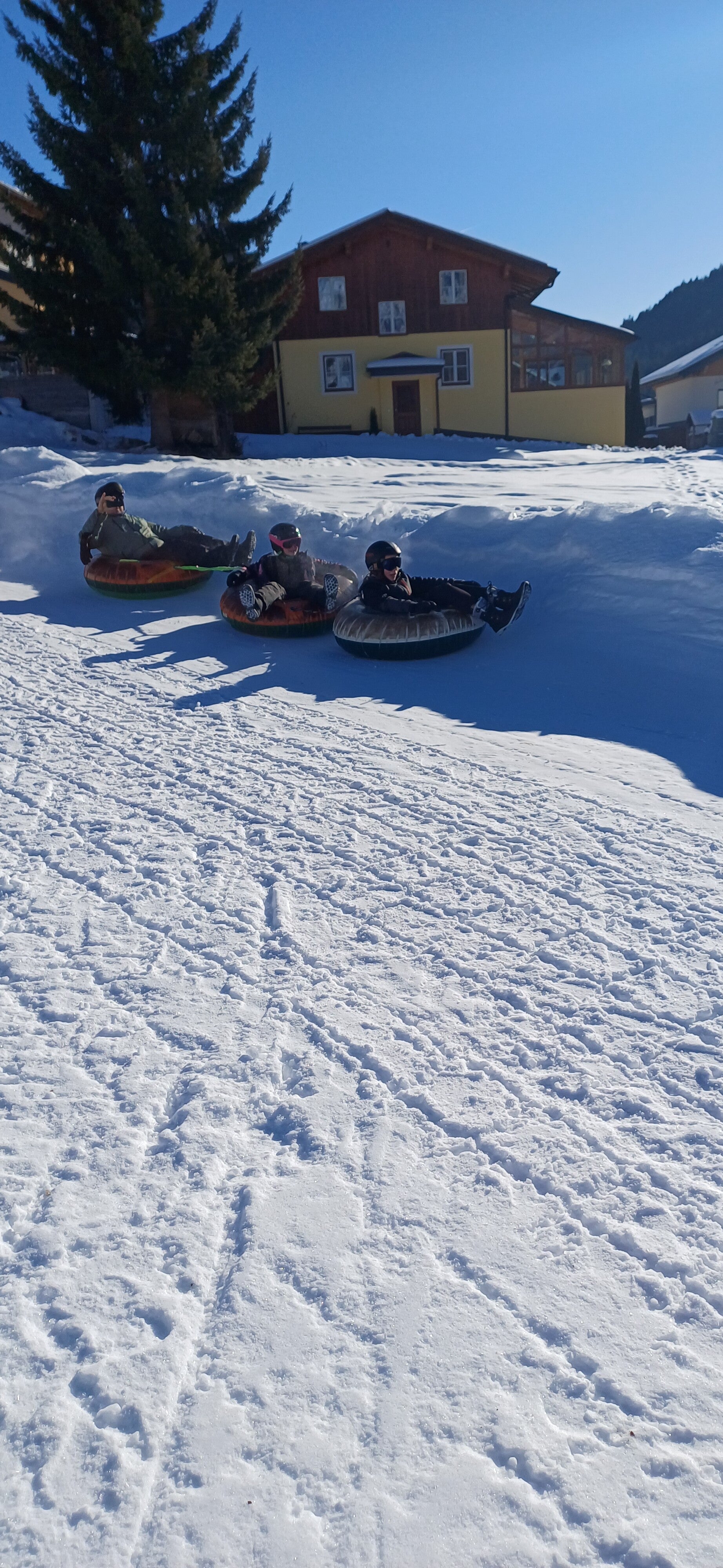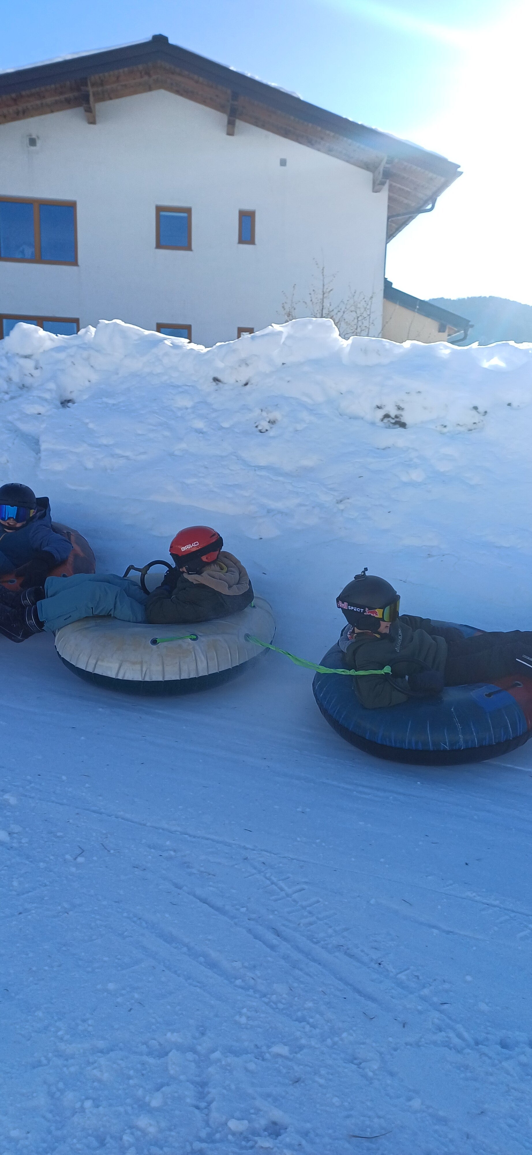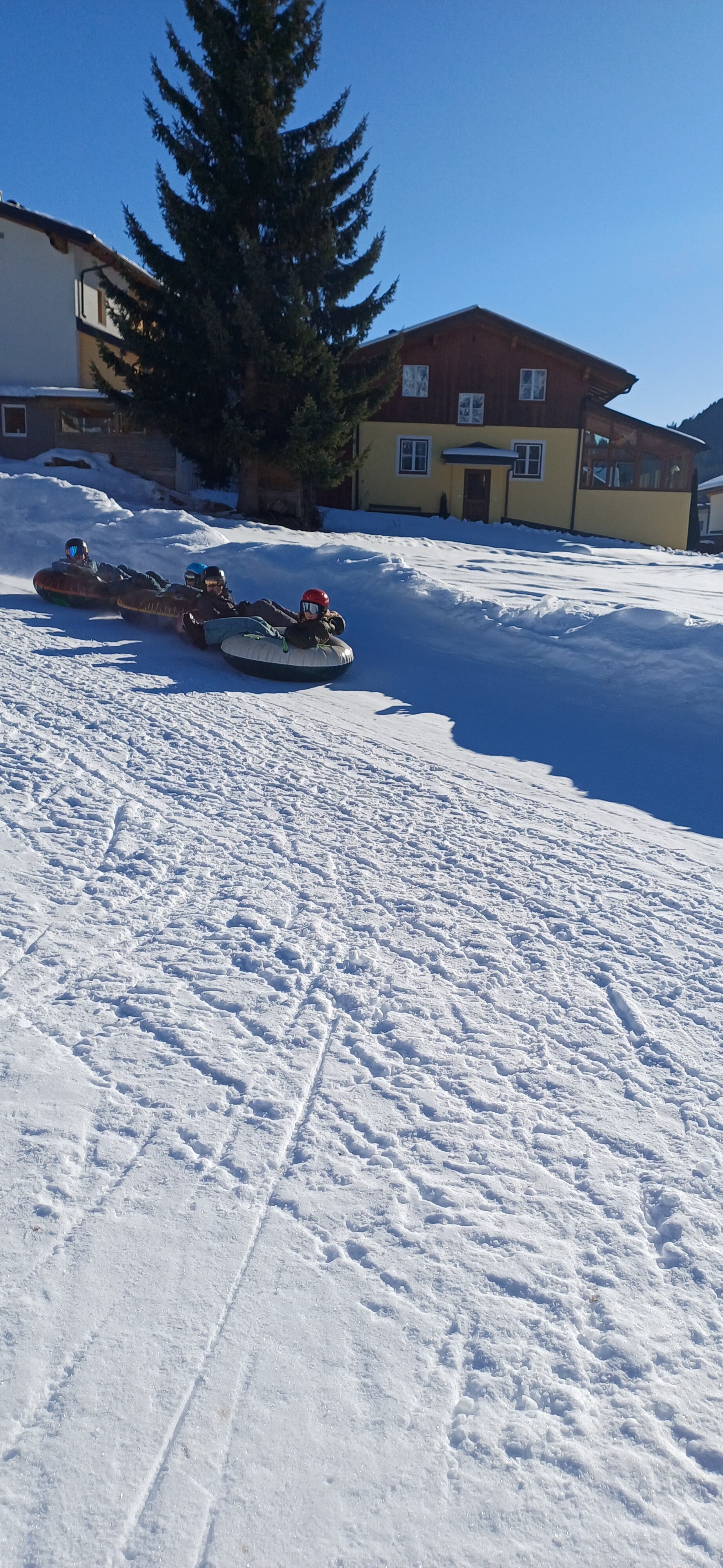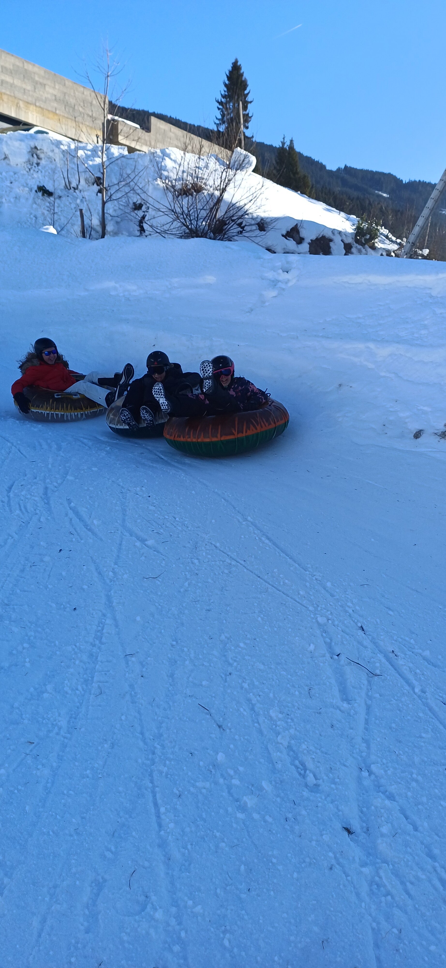 Na het middageten vertrok 6B dan richting de tubes terwijl 6A even mocht ‘chillen’ op de kamer. Een uurtje later mochten zij ook naar de tubes. Bij snowtuben word je met een speciale lift naar boven getrokken. Nadien glijd je dan met een band naar beneden.