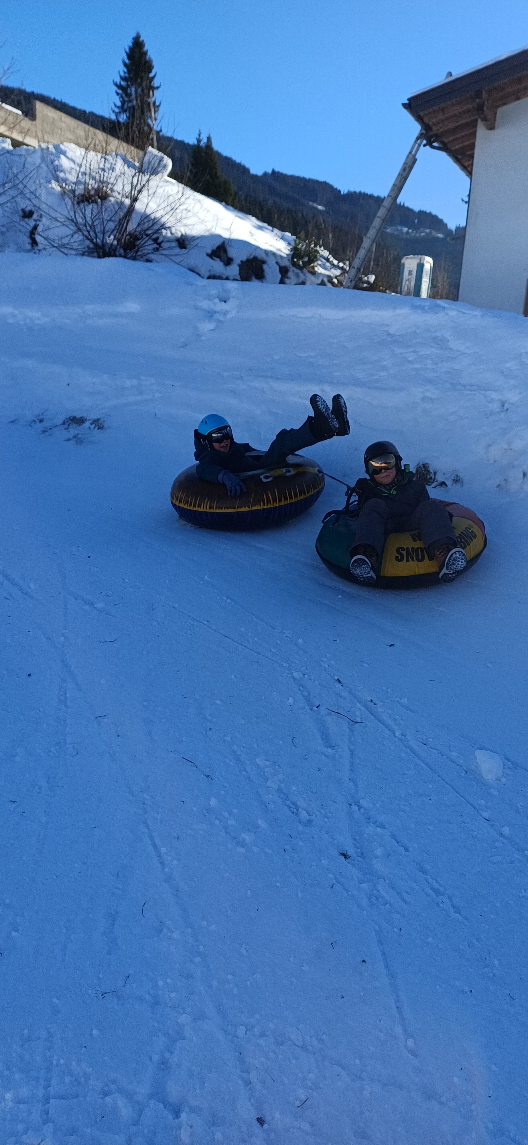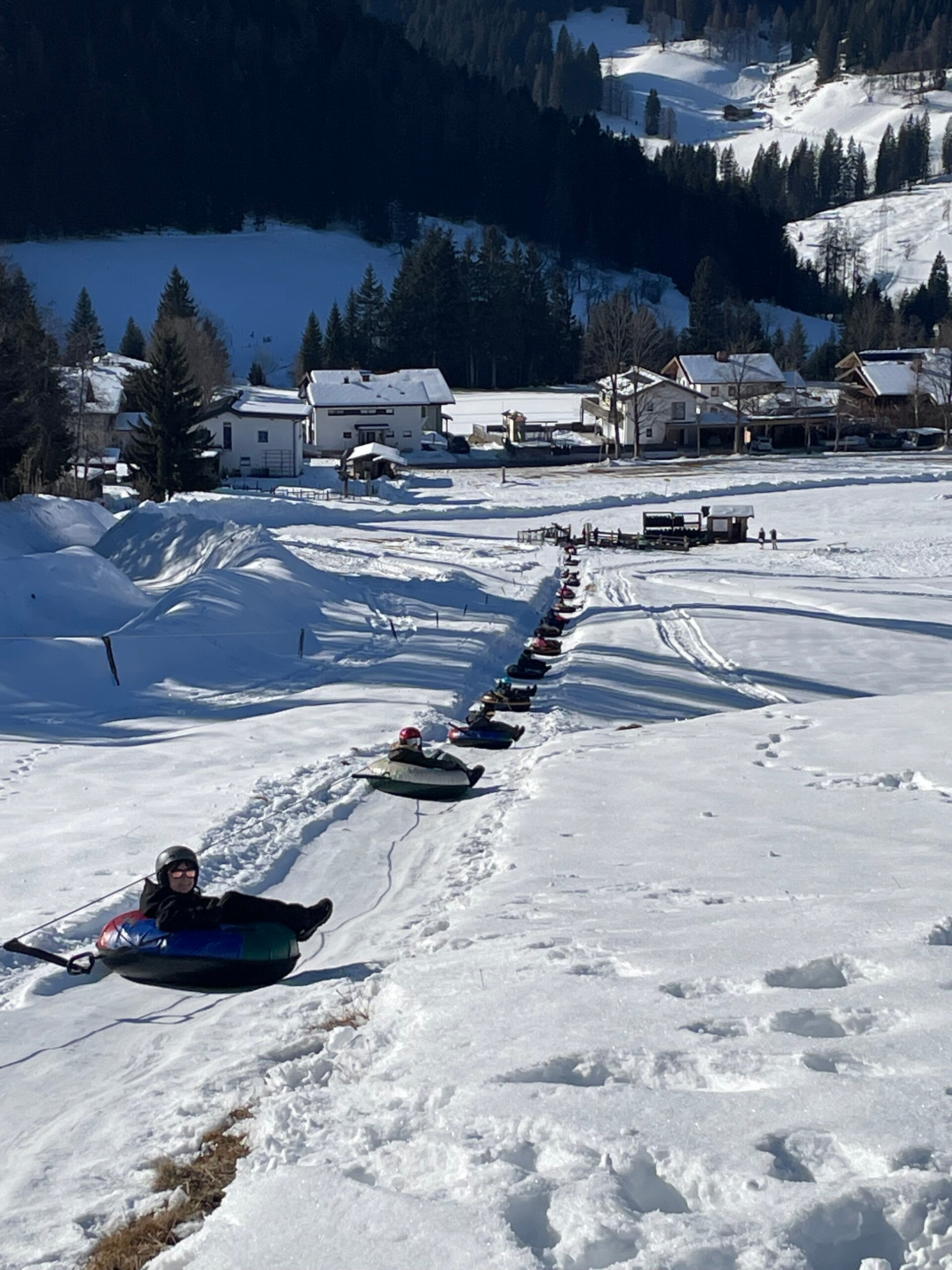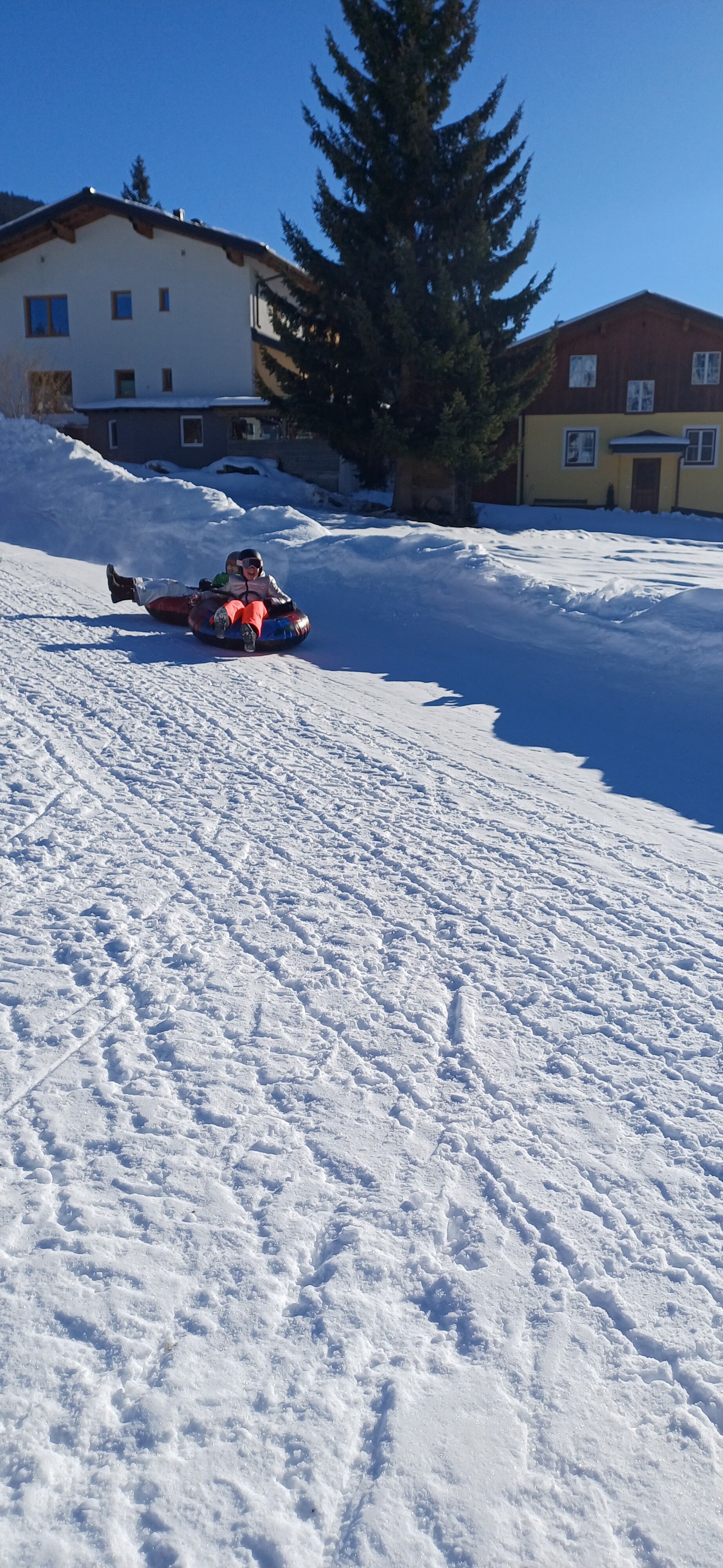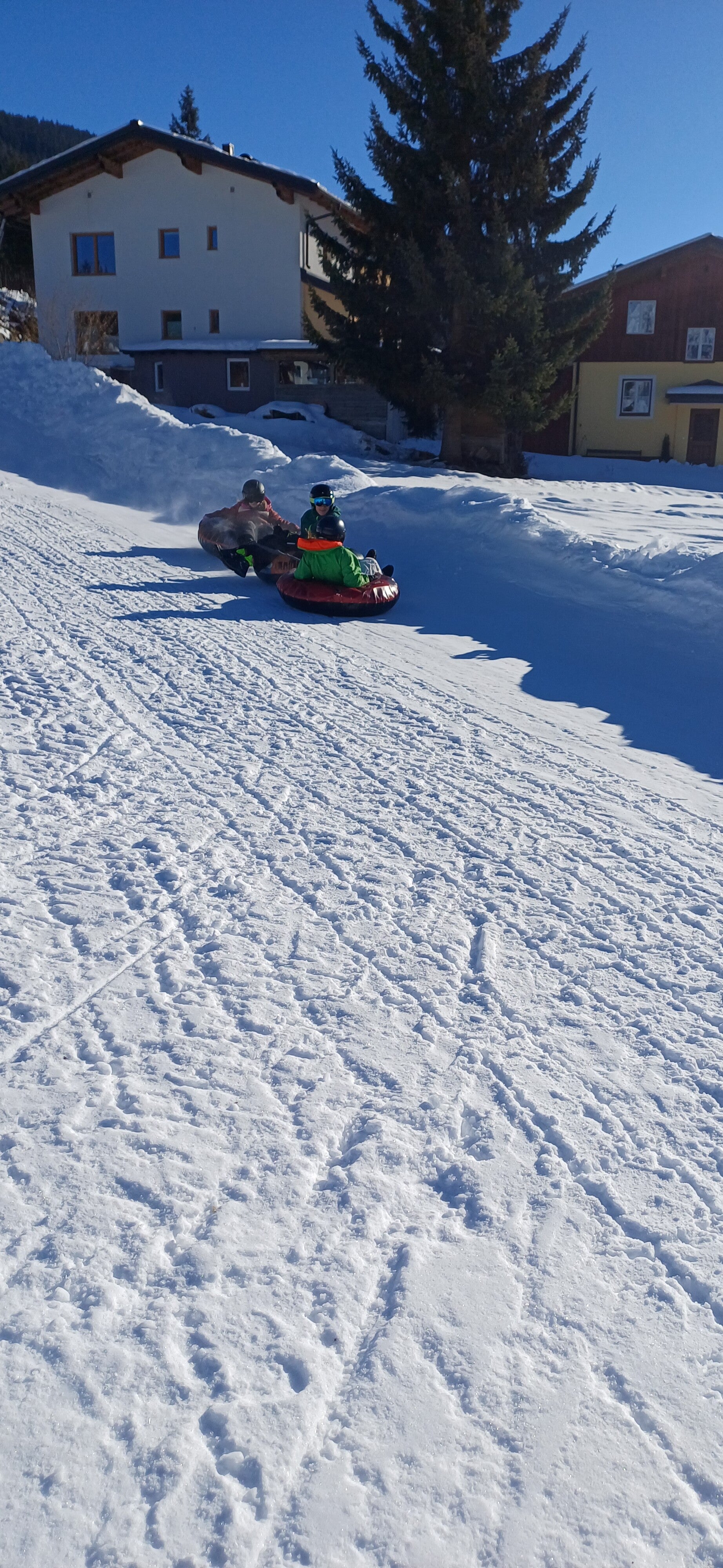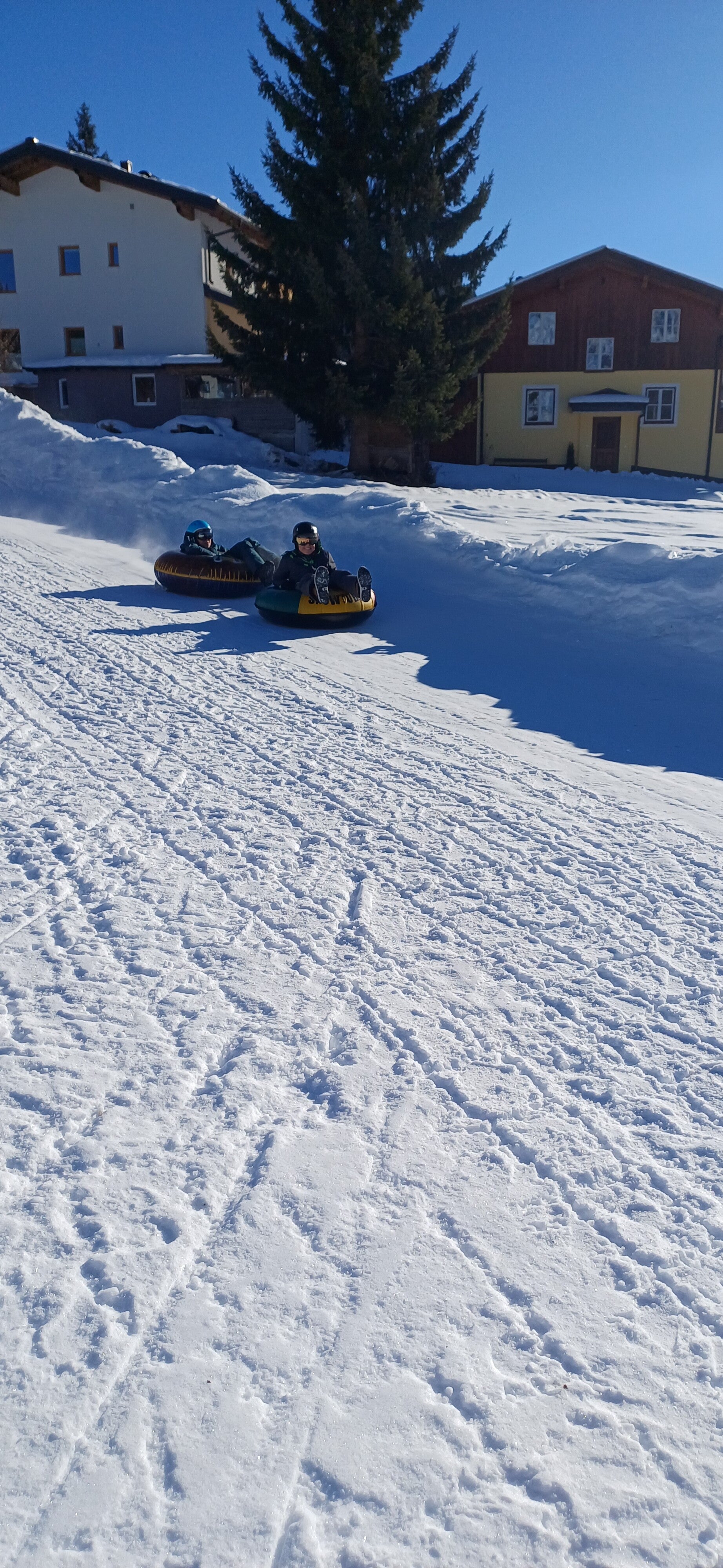 Na het middageten vertrok 6B dan richting de tubes terwijl 6A even mocht ‘chillen’ op de kamer. Een uurtje later mochten zij ook naar de tubes. Bij snowtuben word je met een speciale lift naar boven getrokken. Nadien glijd je dan met een band naar beneden.
