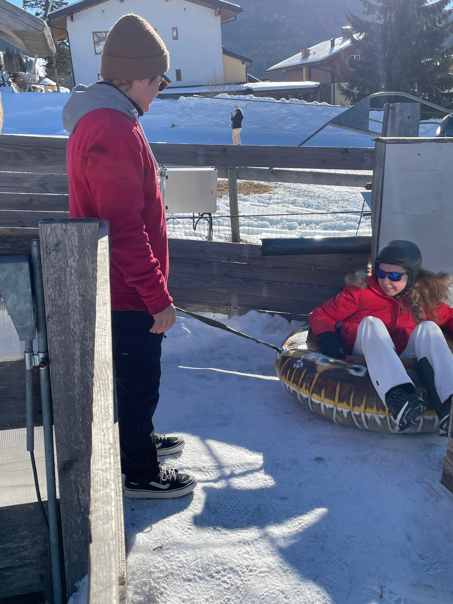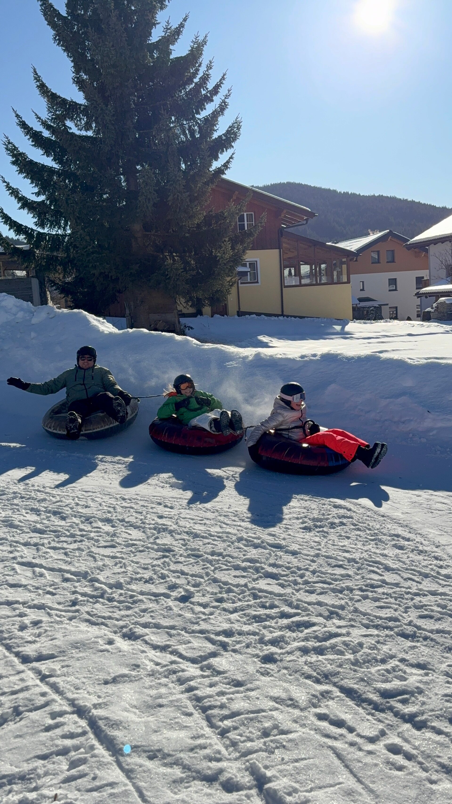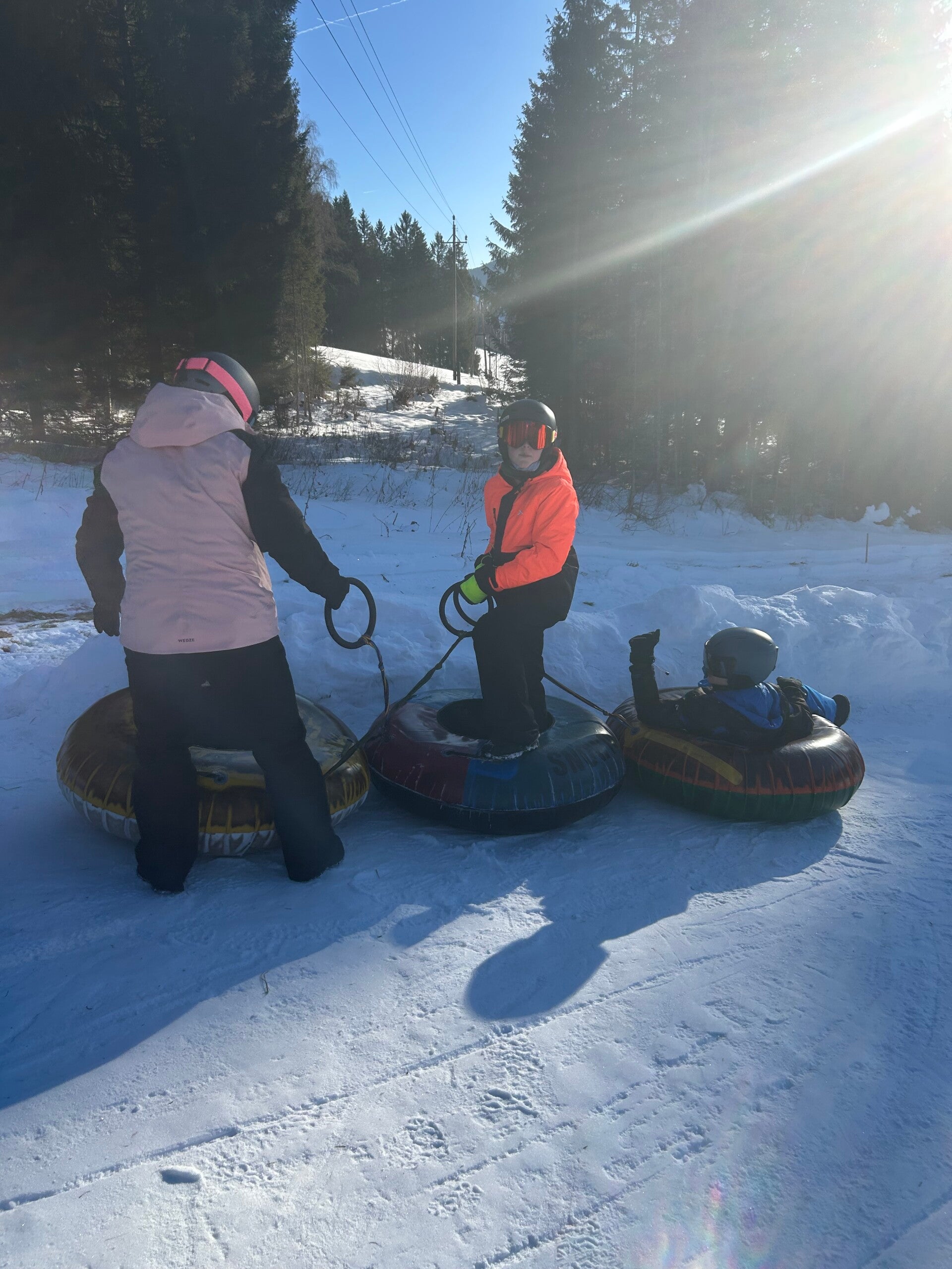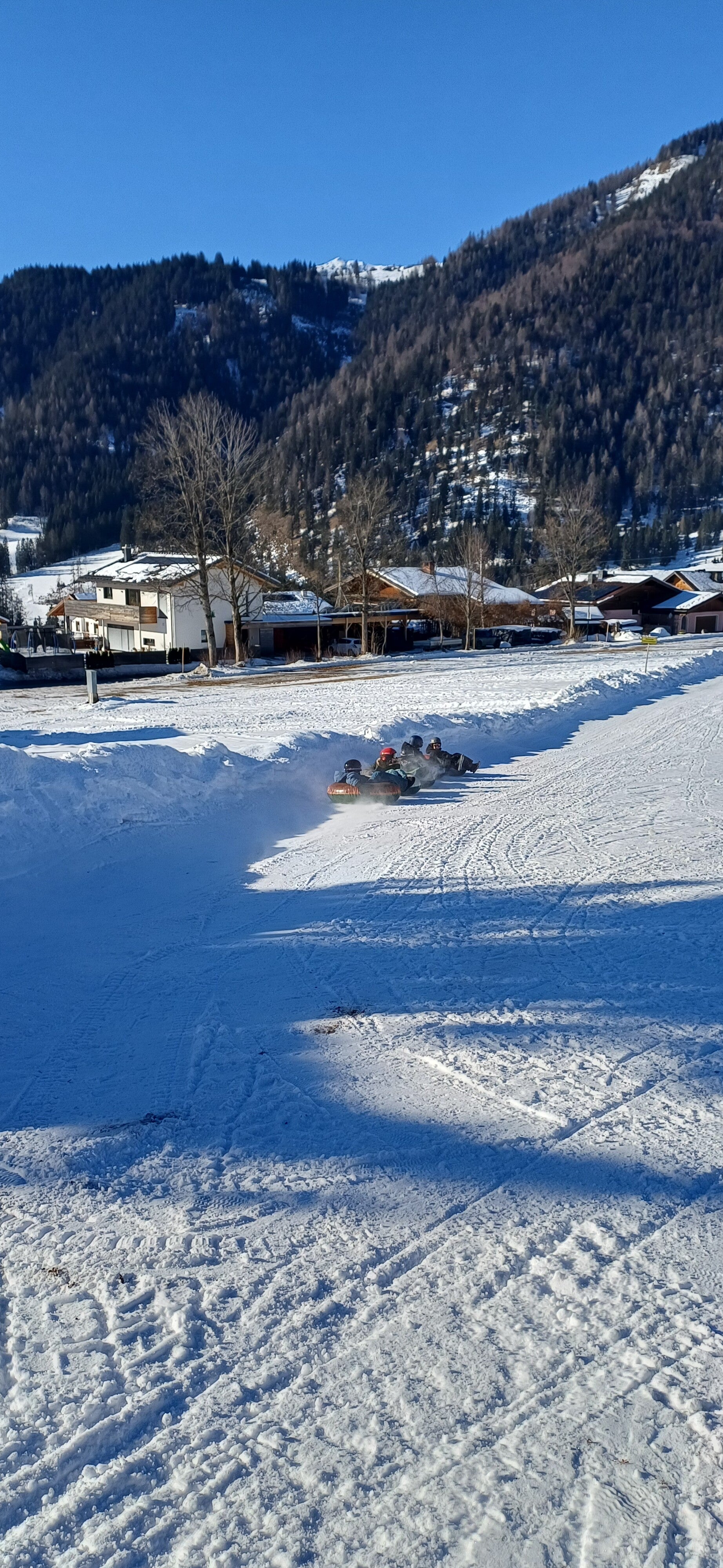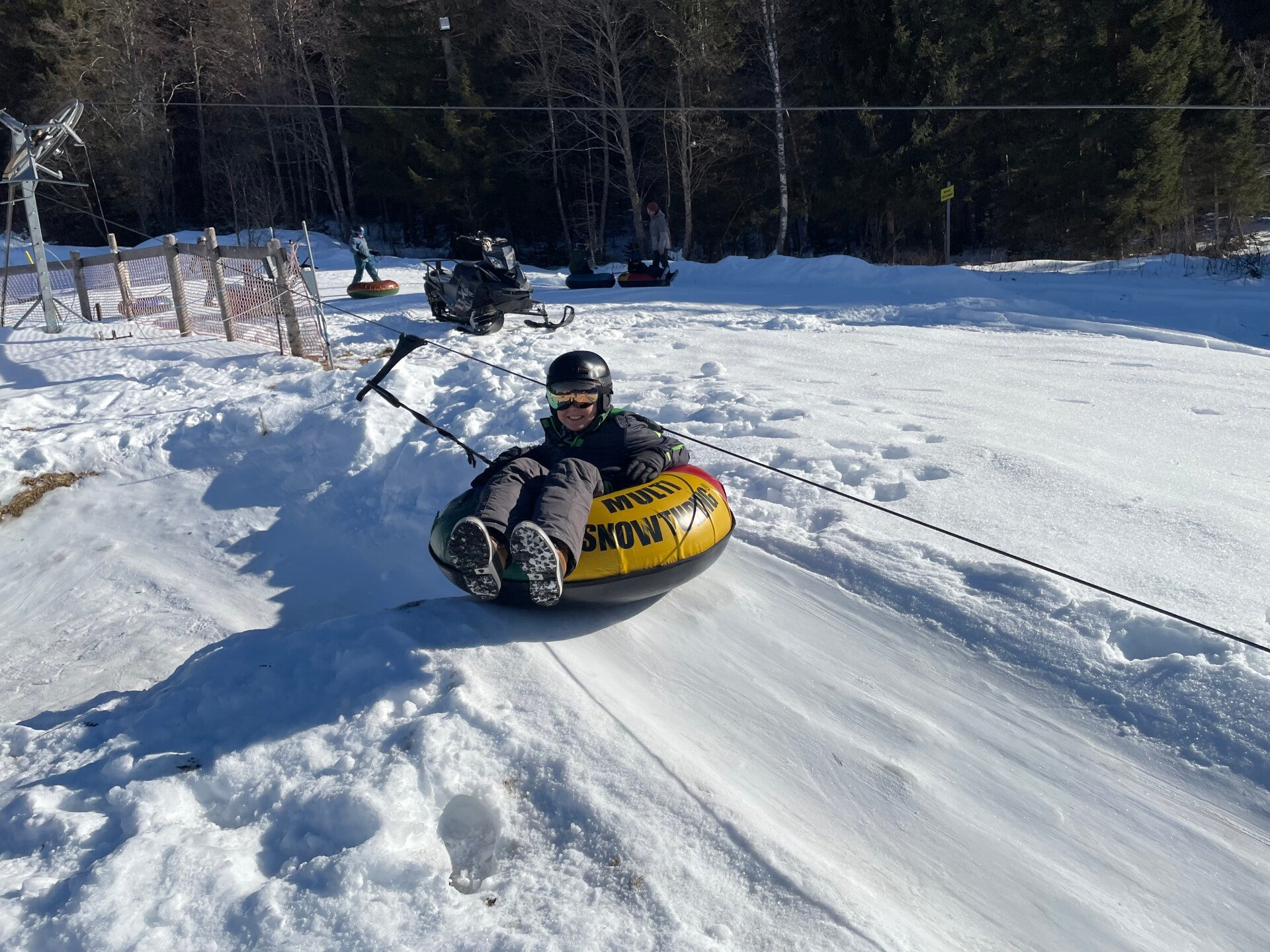 Na het middageten vertrok 6B dan richting de tubes terwijl 6A even mocht ‘chillen’ op de kamer. Een uurtje later mochten zij ook naar de tubes. Bij snowtuben word je met een speciale lift naar boven getrokken. Nadien glijd je dan met een band naar beneden.