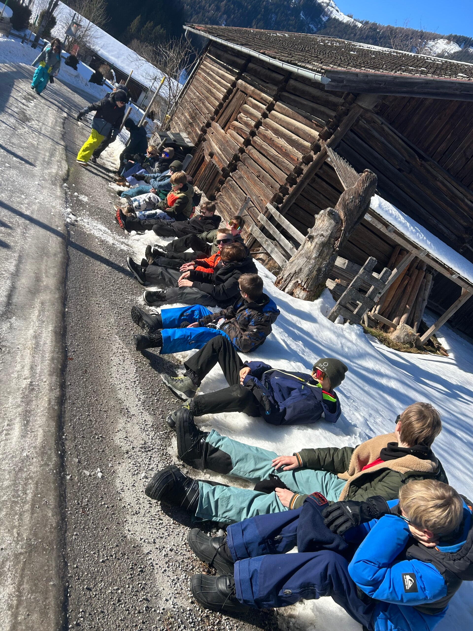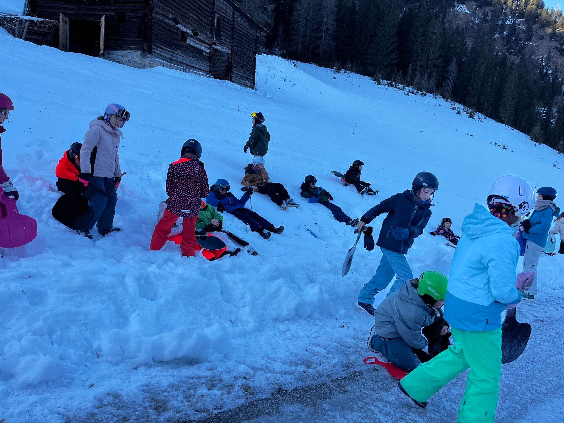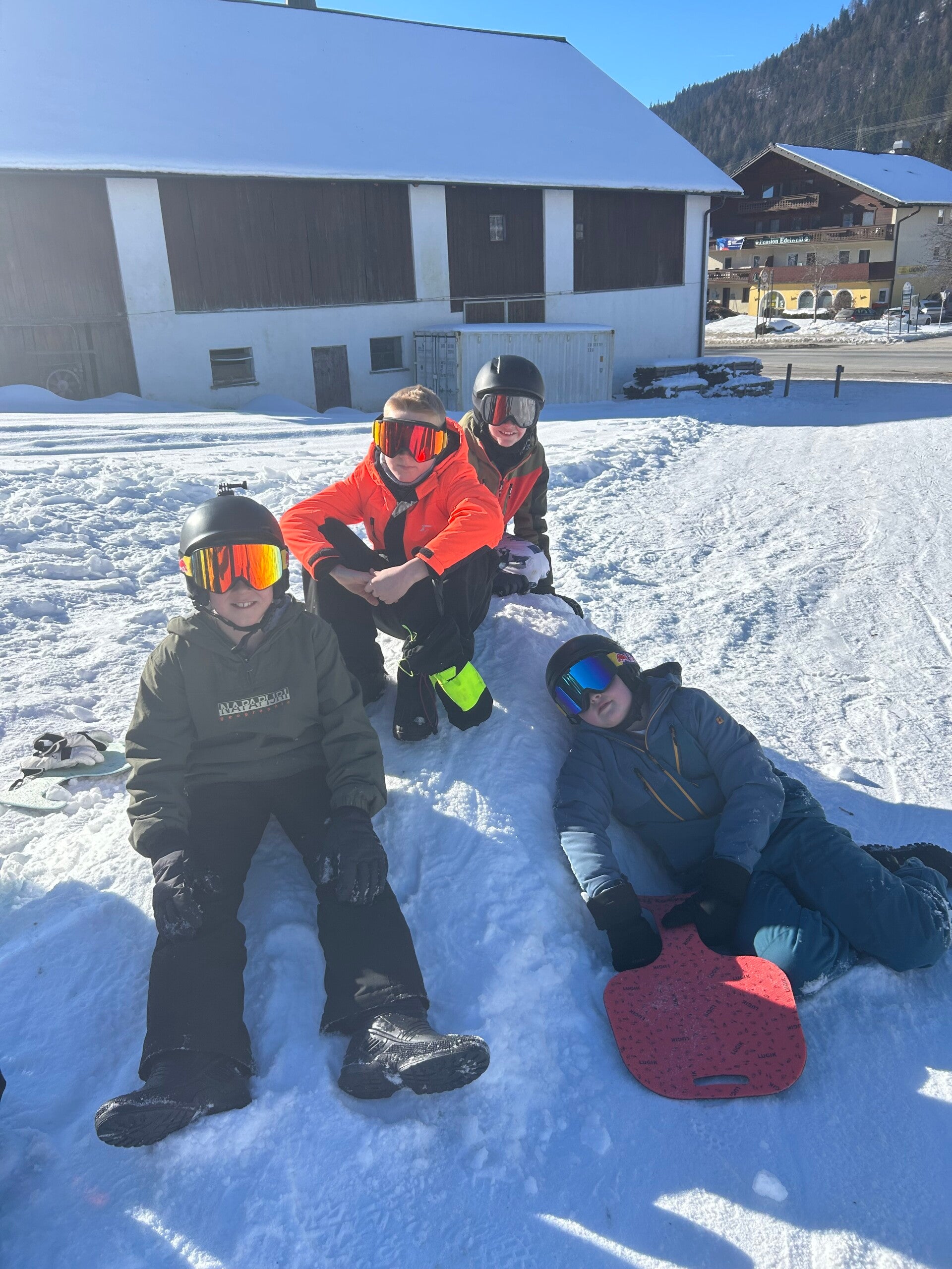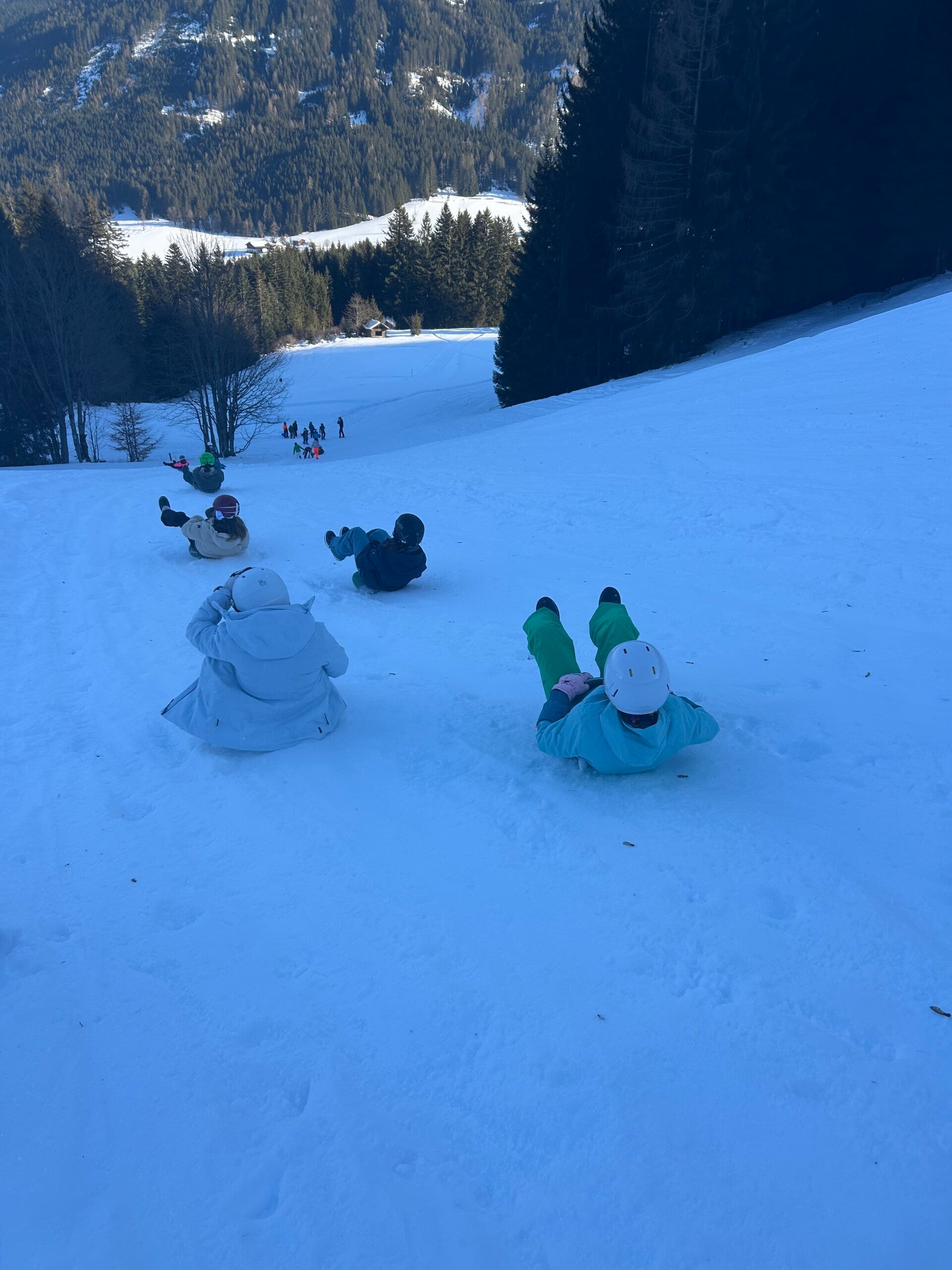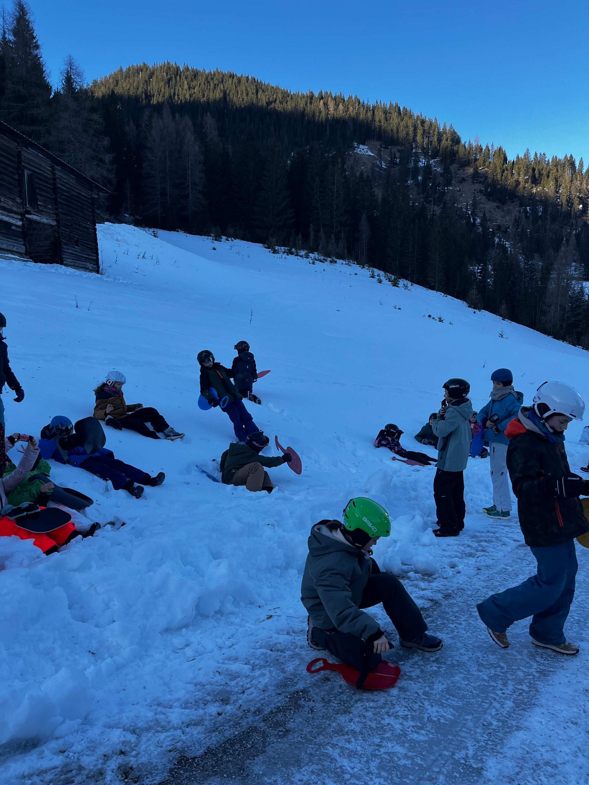 We werden met muziek gewekt. Speciaal voor onze kamer werd er ‘wanna play’ gekozen. Nadien kregen we als ochtendeten keizerpistolets en cornflakes. 6A vertrok nadien richting de snowtubes hier in het dorp. Die bleken echter nog toe in de ochtend. Daarom zijn we met zijn allen gaan poepsleeën en spelen in de sneeuw. De groep van Mitch moest ook nog zijn ski’s en botten gaan halen, want morgen gaan zij skiën in Dachstein-West.