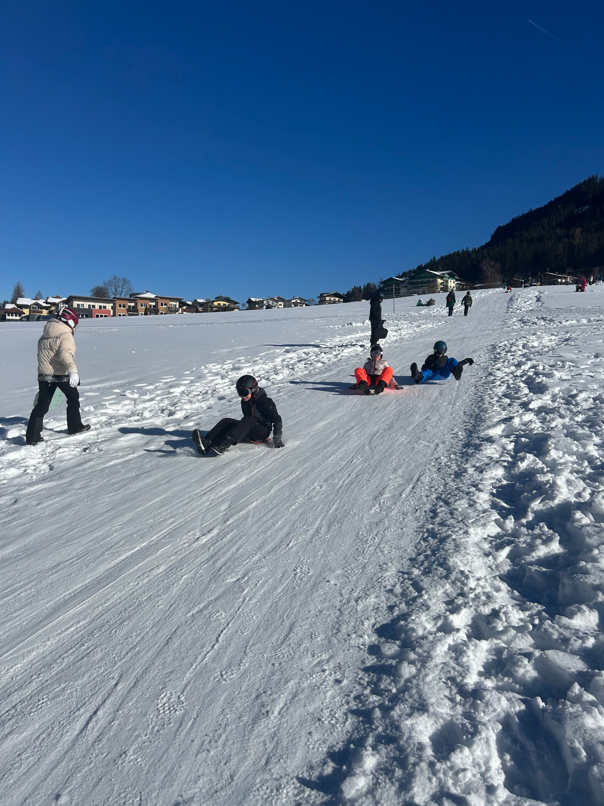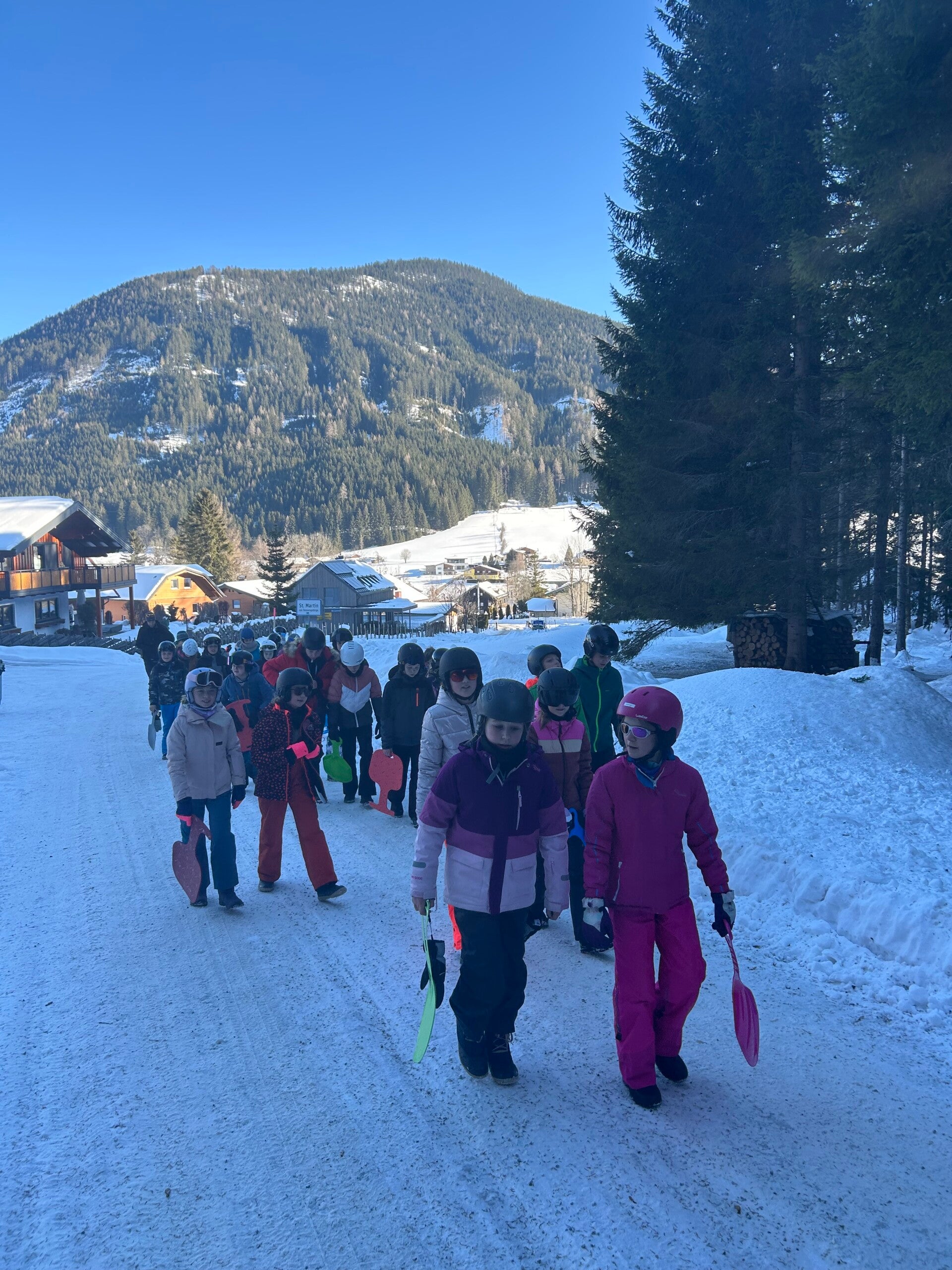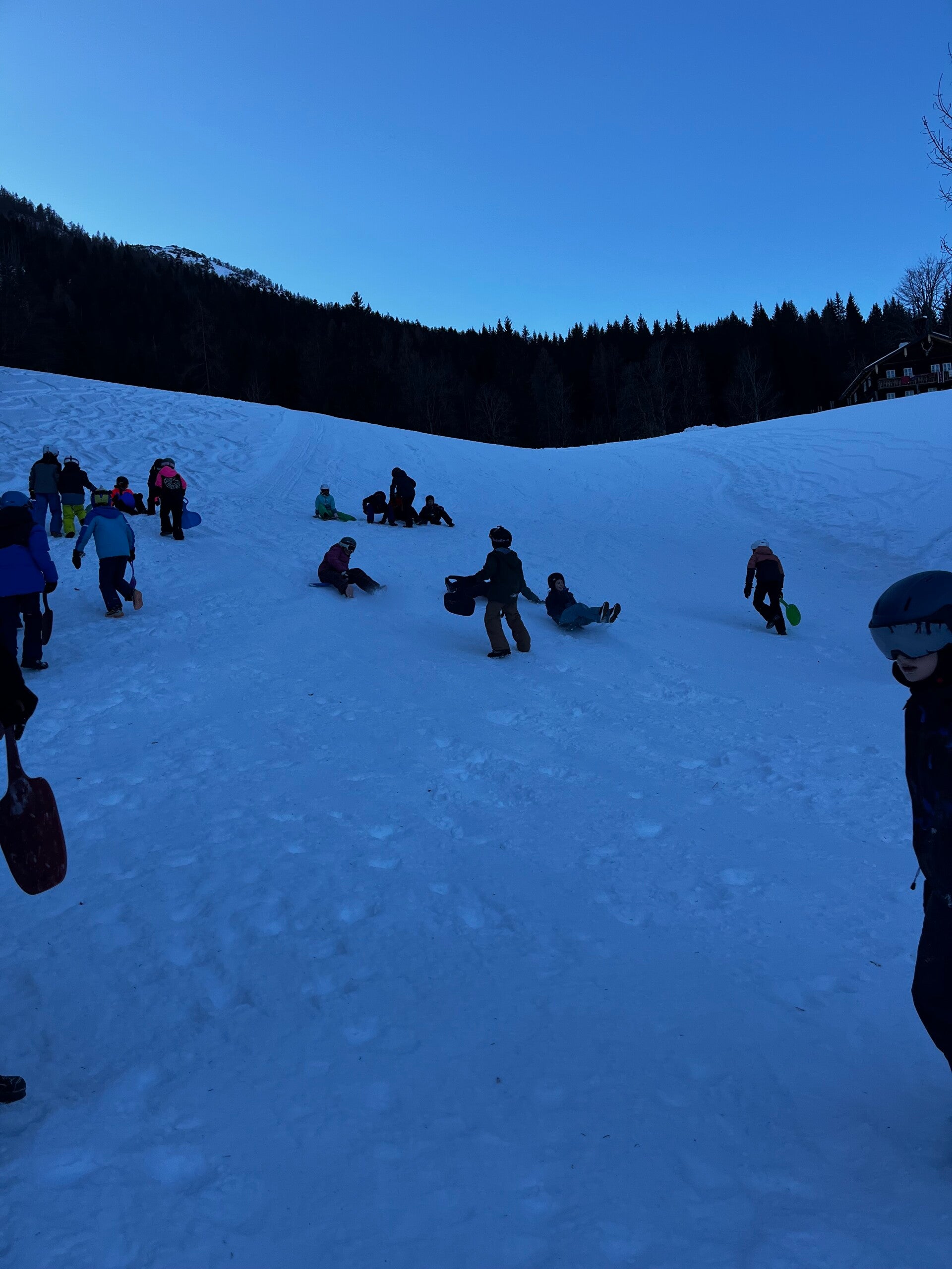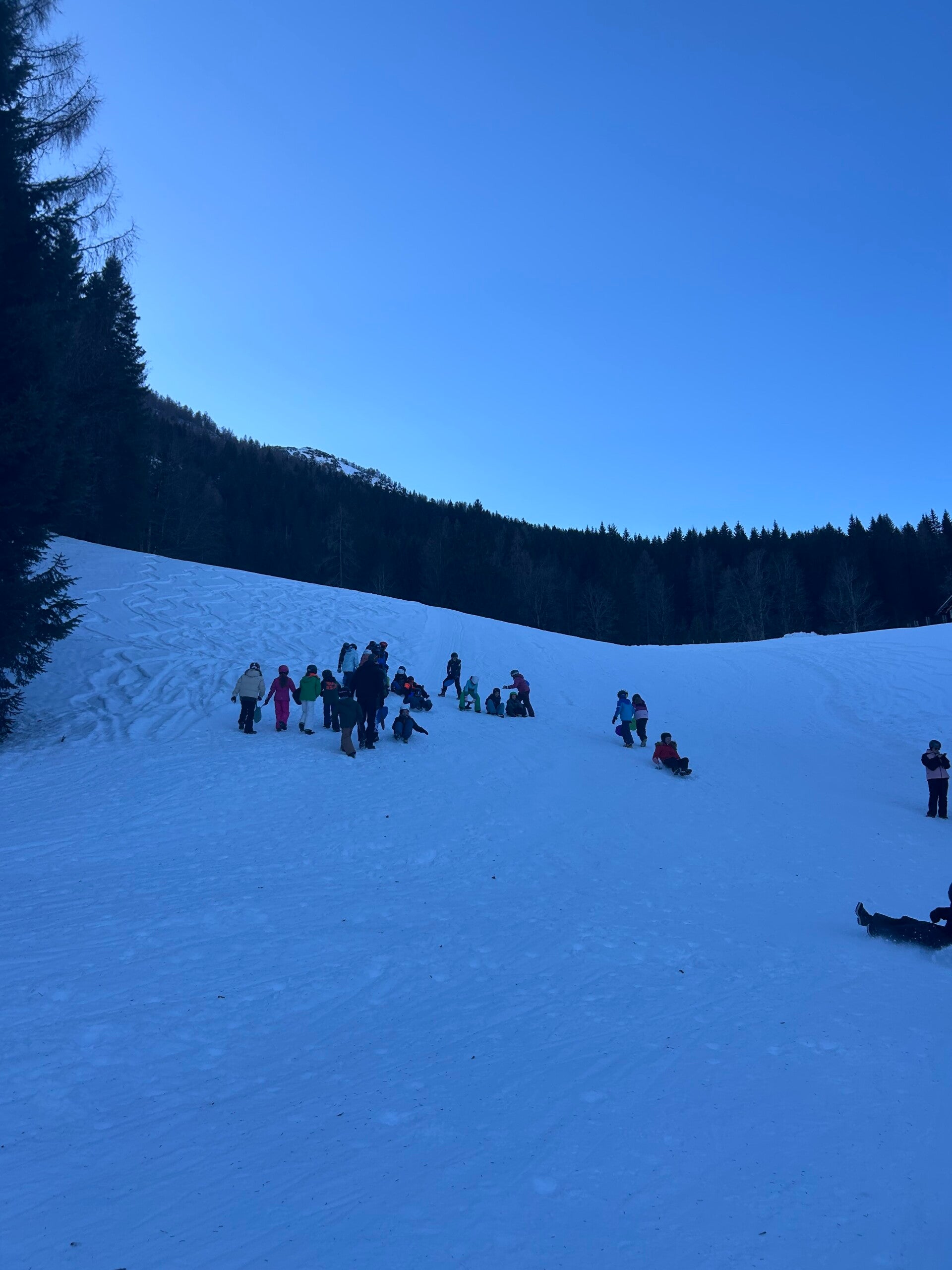 We werden met muziek gewekt. Speciaal voor onze kamer werd er ‘wanna play’ gekozen. Nadien kregen we als ochtendeten keizerpistolets en cornflakes. 6A vertrok nadien richting de snowtubes hier in het dorp. Die bleken echter nog toe in de ochtend. Daarom zijn we met zijn allen gaan poepsleeën en spelen in de sneeuw. De groep van Mitch moest ook nog zijn ski’s en botten gaan halen, want morgen gaan zij skiën in Dachstein-West.