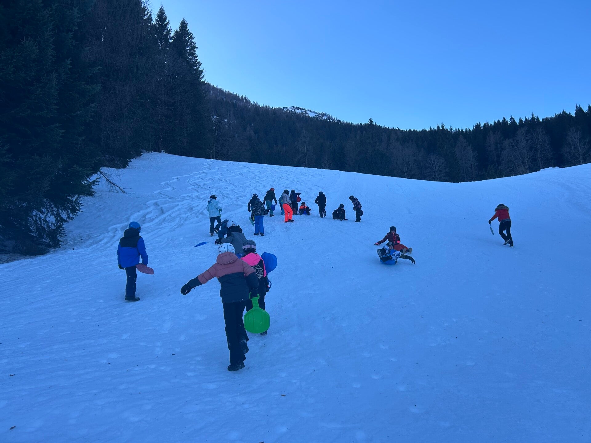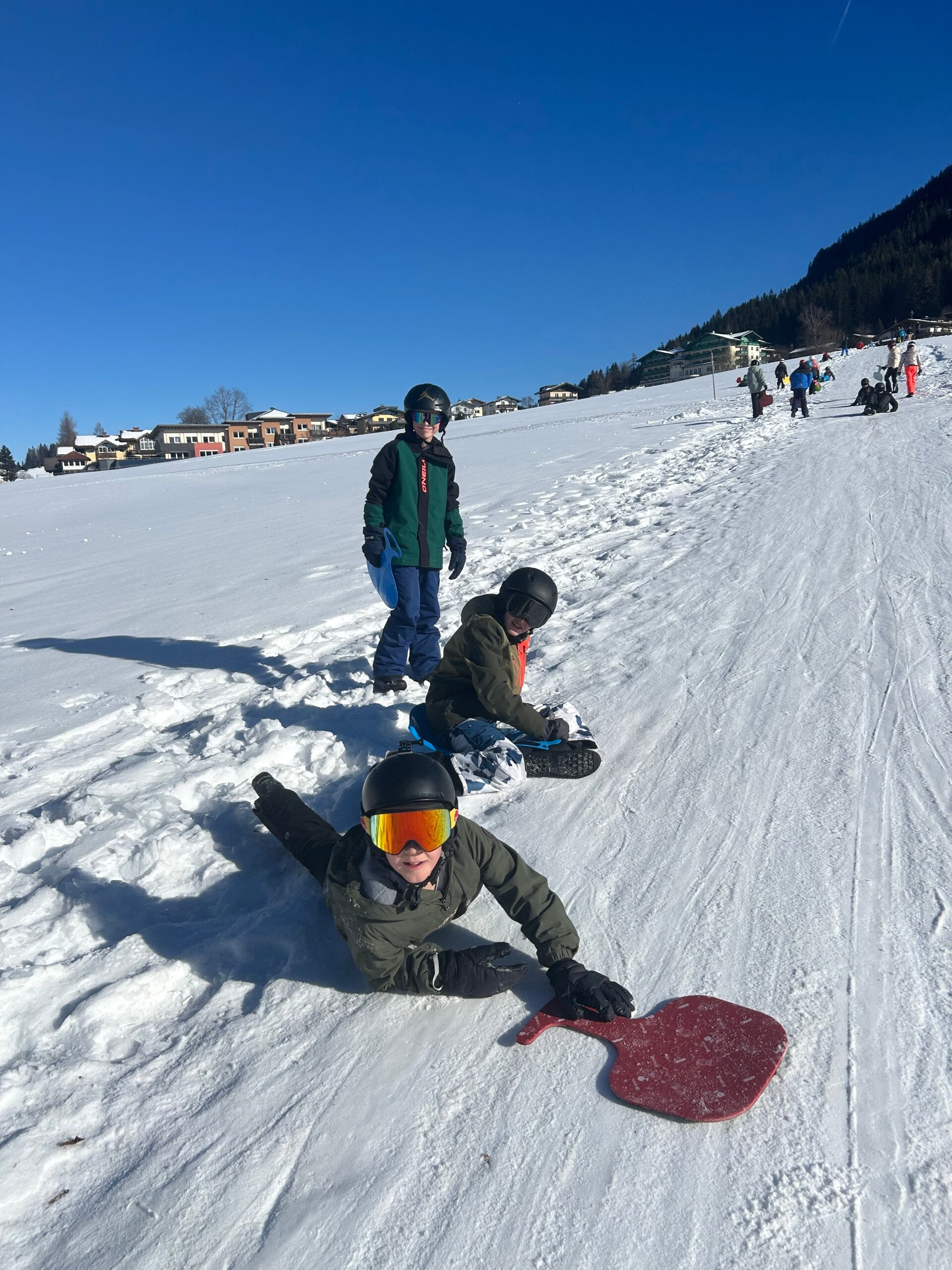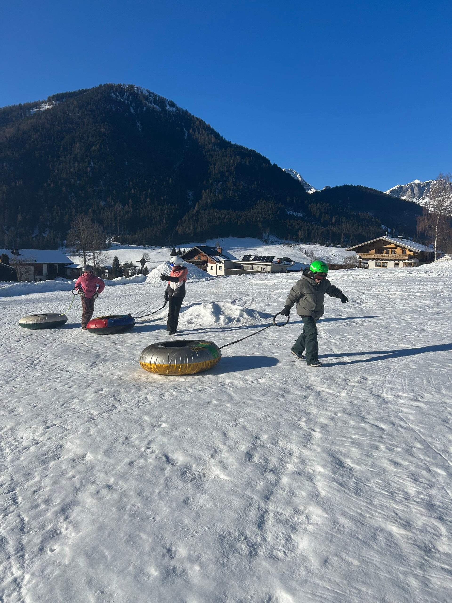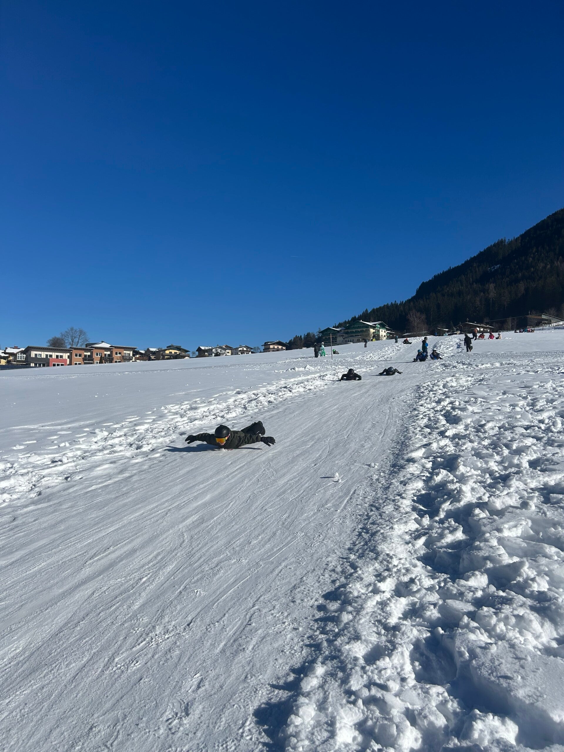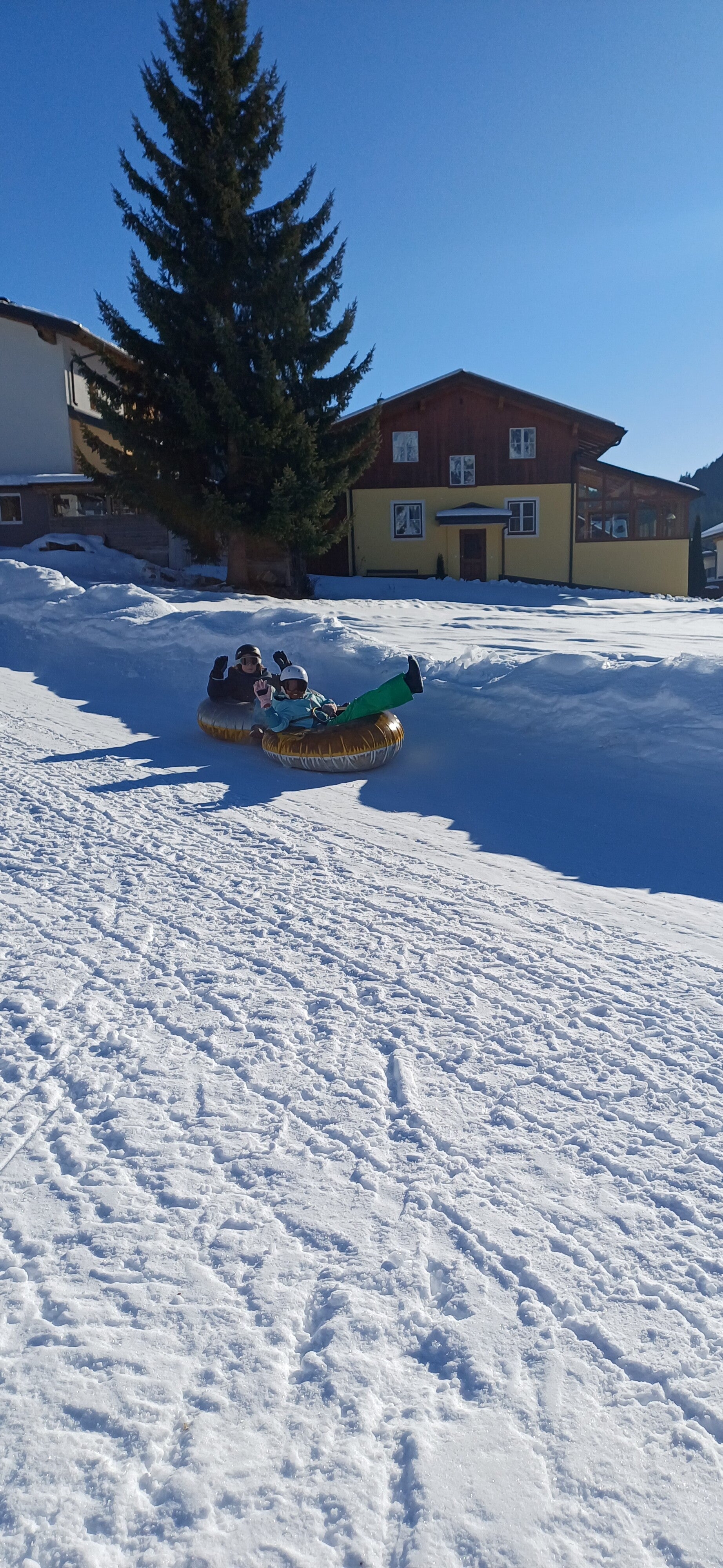 We werden met muziek gewekt. Speciaal voor onze kamer werd er ‘wanna play’ gekozen. Nadien kregen we als ochtendeten keizerpistolets en cornflakes. 6A vertrok nadien richting de snowtubes hier in het dorp. Die bleken echter nog toe in de ochtend. Daarom zijn we met zijn allen gaan poepsleeën en spelen in de sneeuw. De groep van Mitch moest ook nog zijn ski’s en botten gaan halen, want morgen gaan zij skiën in Dachstein-West.