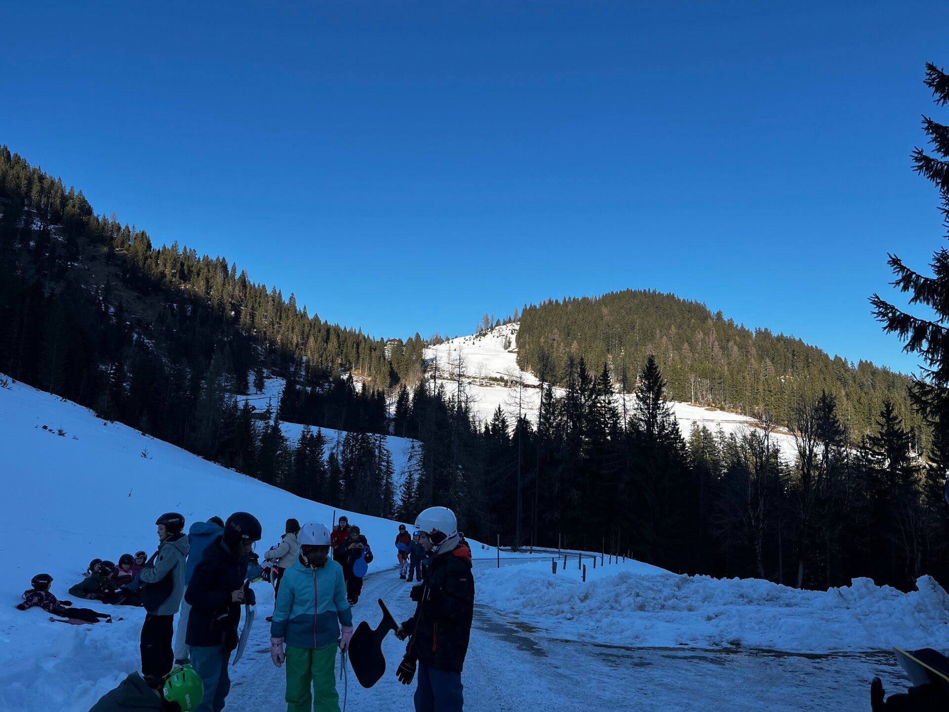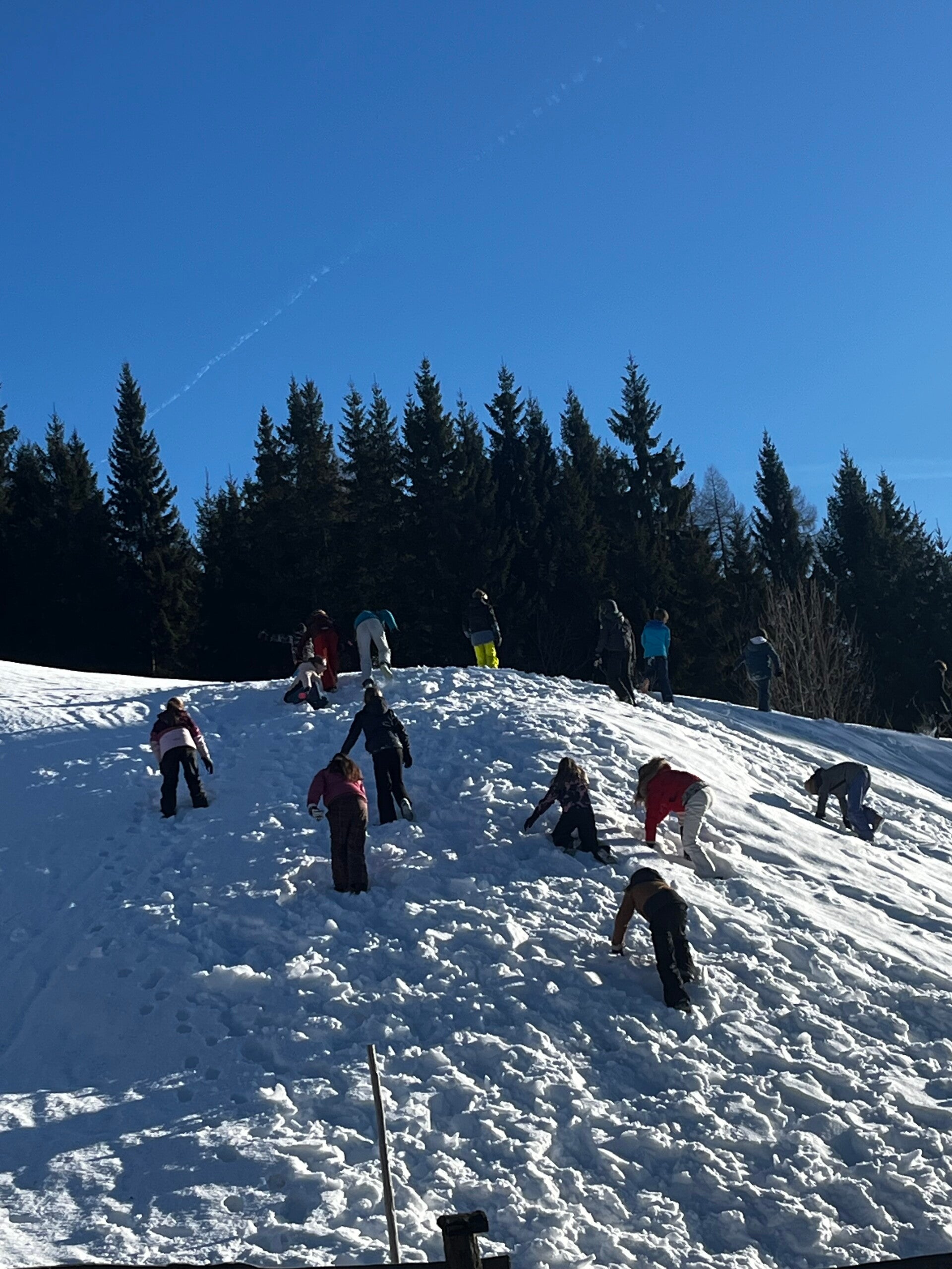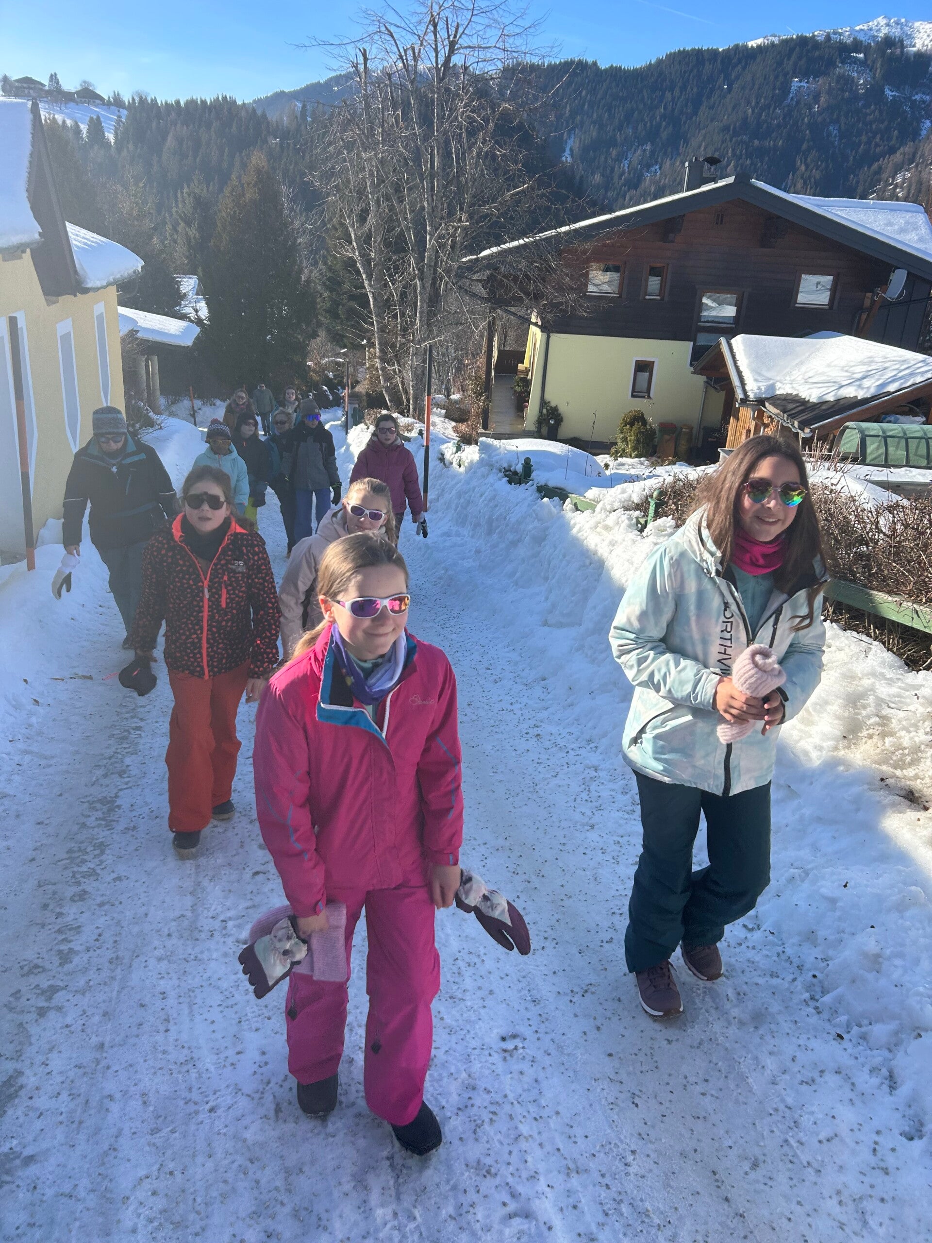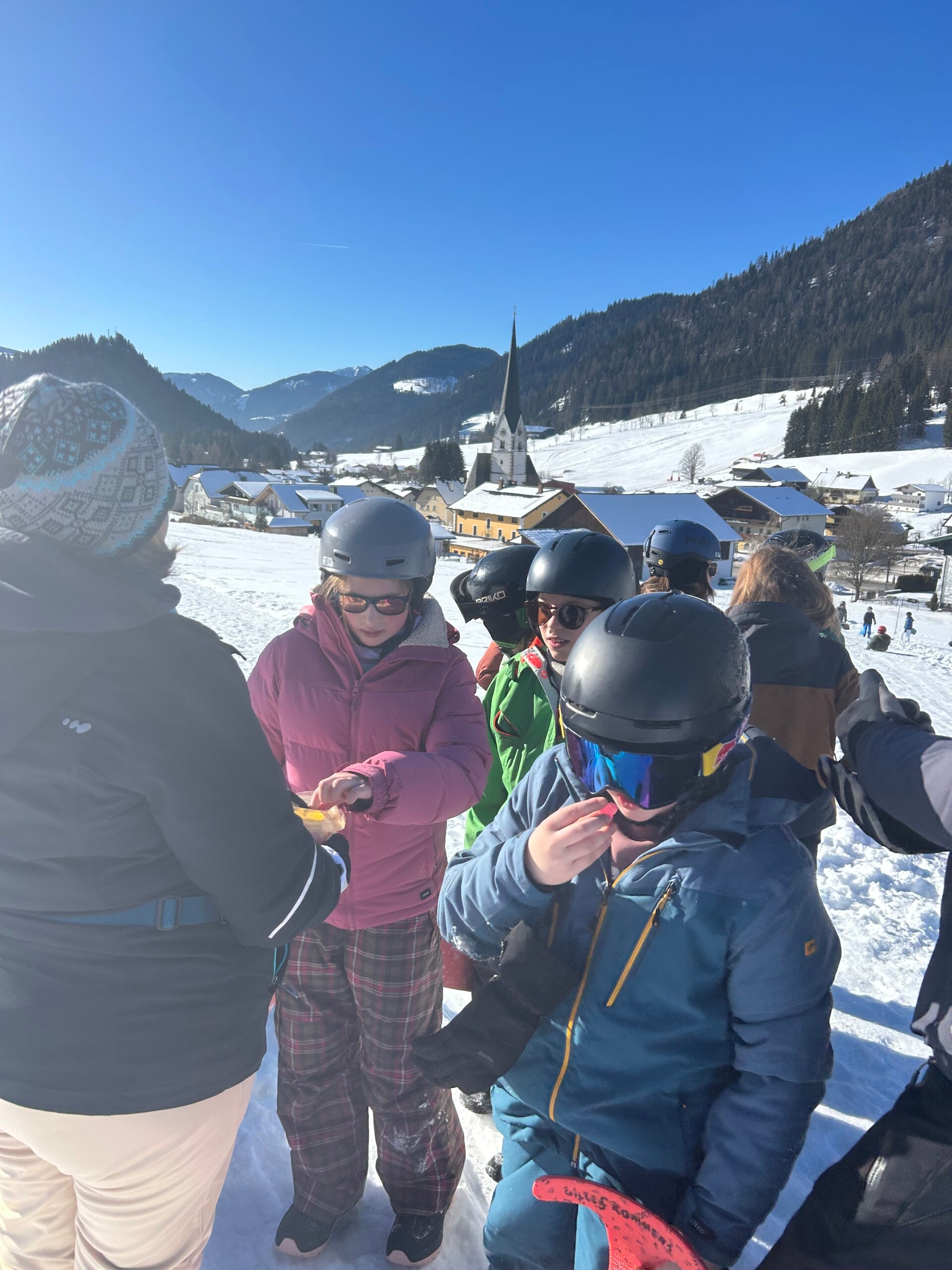 We werden met muziek gewekt. Speciaal voor onze kamer werd er ‘wanna play’ gekozen. Nadien kregen we als ochtendeten keizerpistolets en cornflakes. 6A vertrok nadien richting de snowtubes hier in het dorp. Die bleken echter nog toe in de ochtend. Daarom zijn we met zijn allen gaan poepsleeën en spelen in de sneeuw. De groep van Mitch moest ook nog zijn ski’s en botten gaan halen, want morgen gaan zij skiën in Dachstein-West.