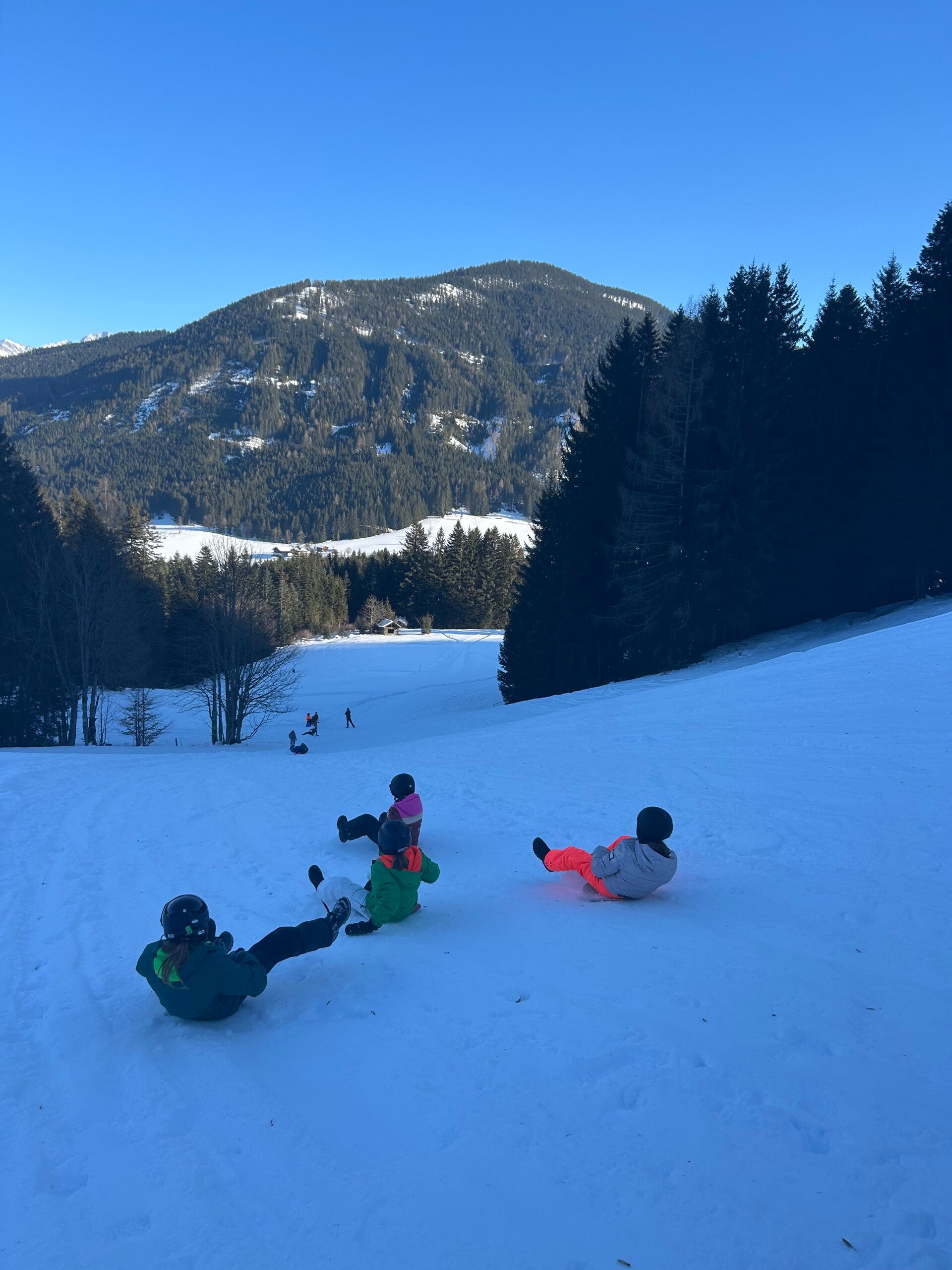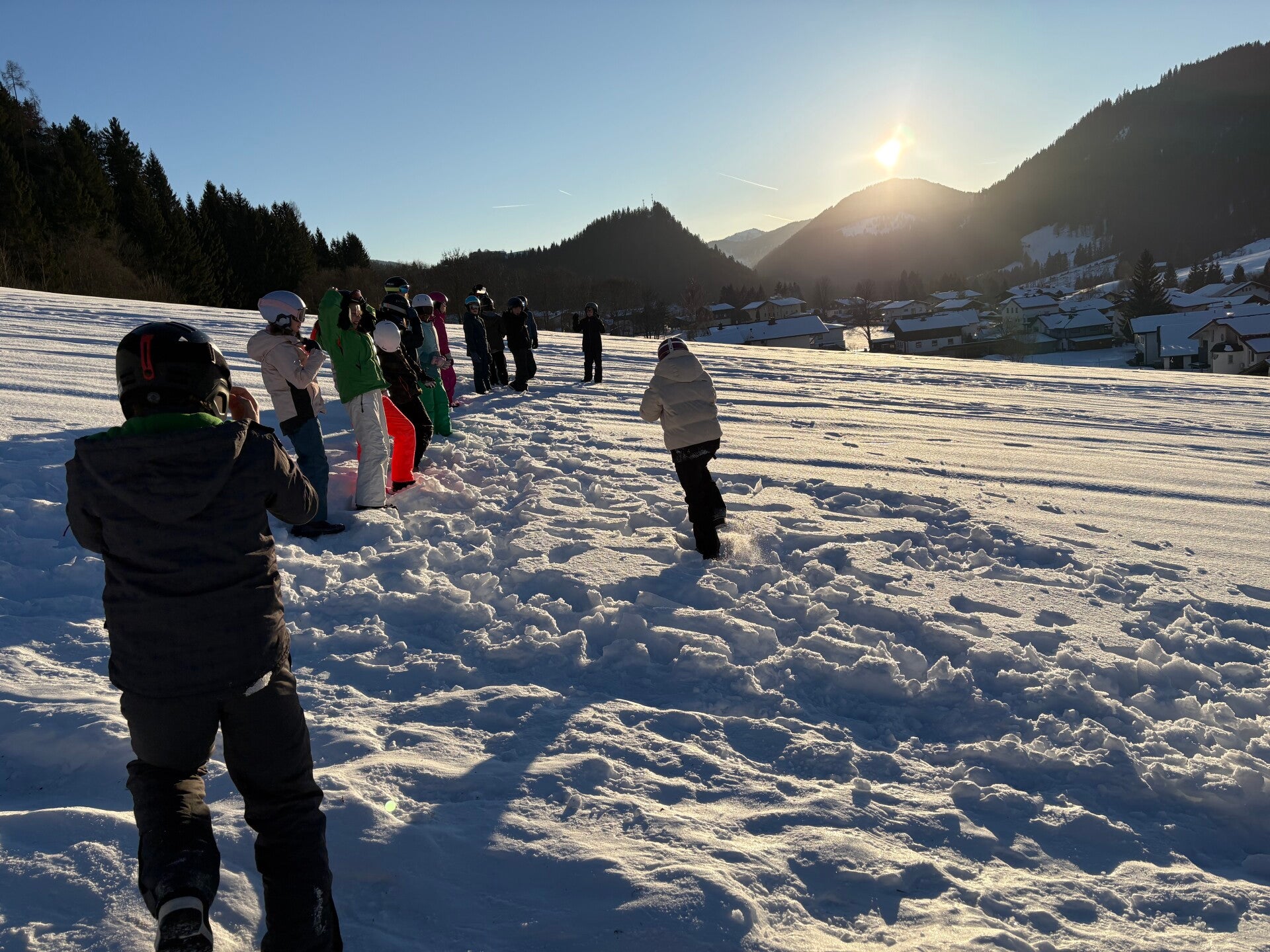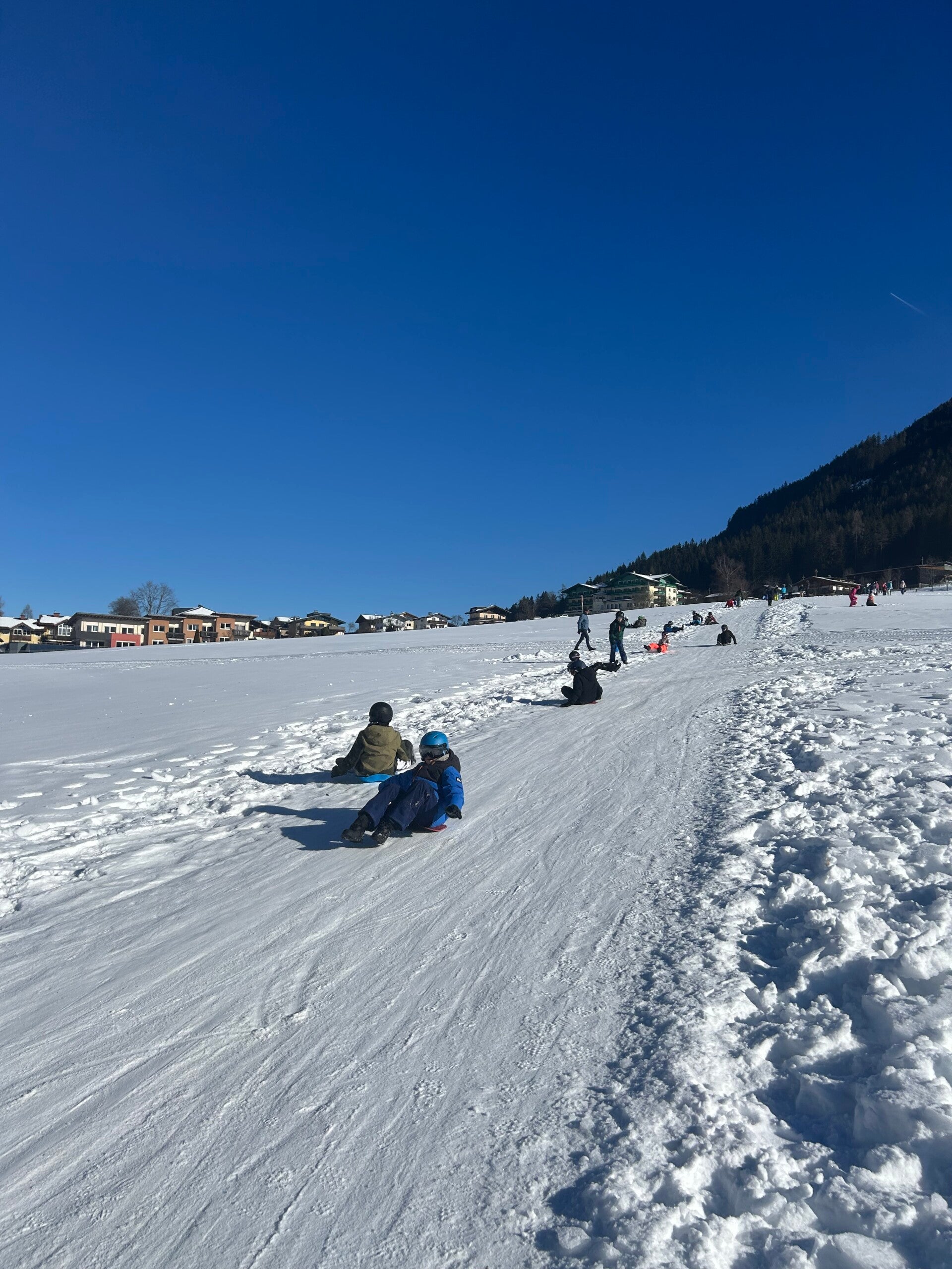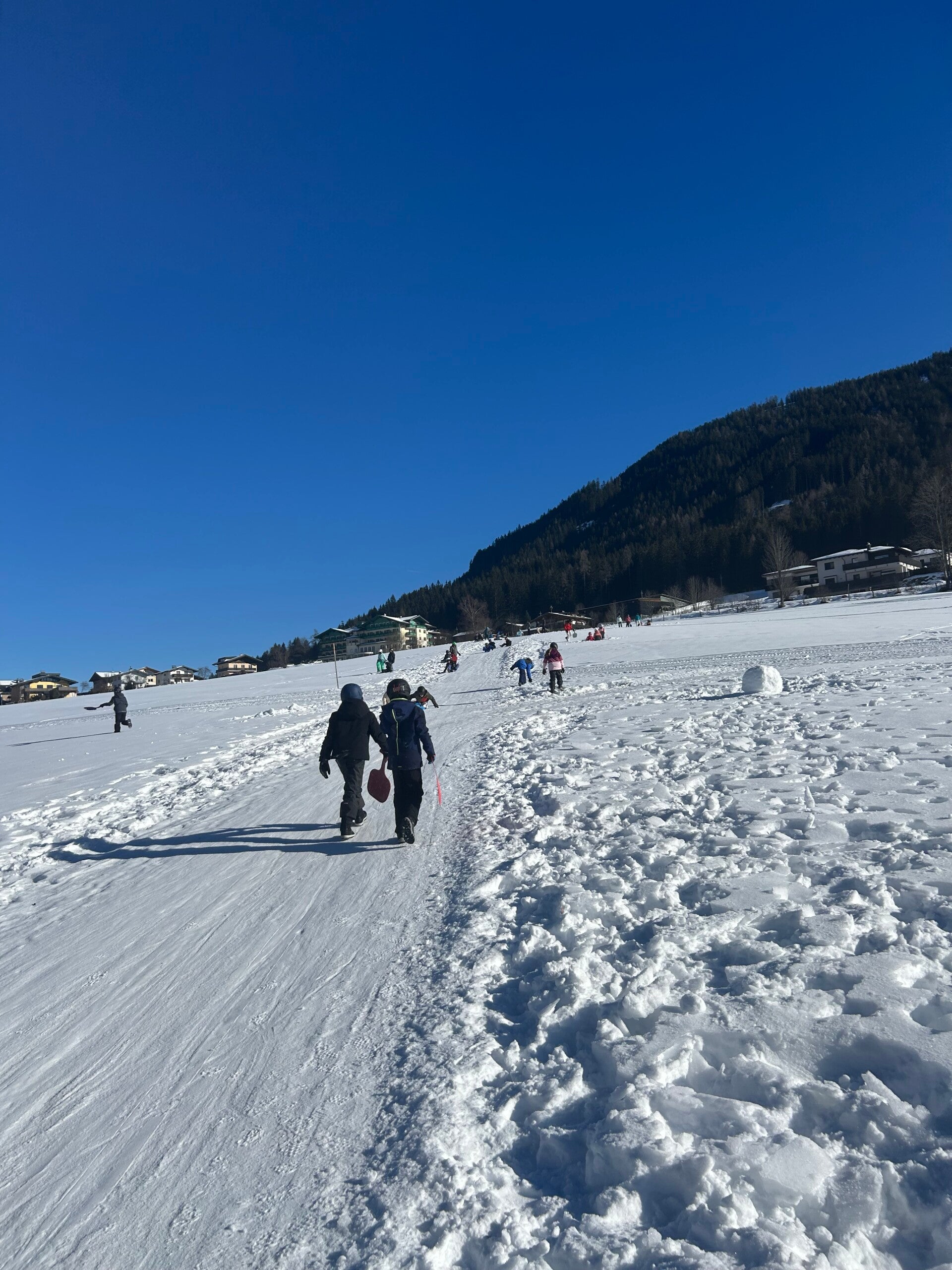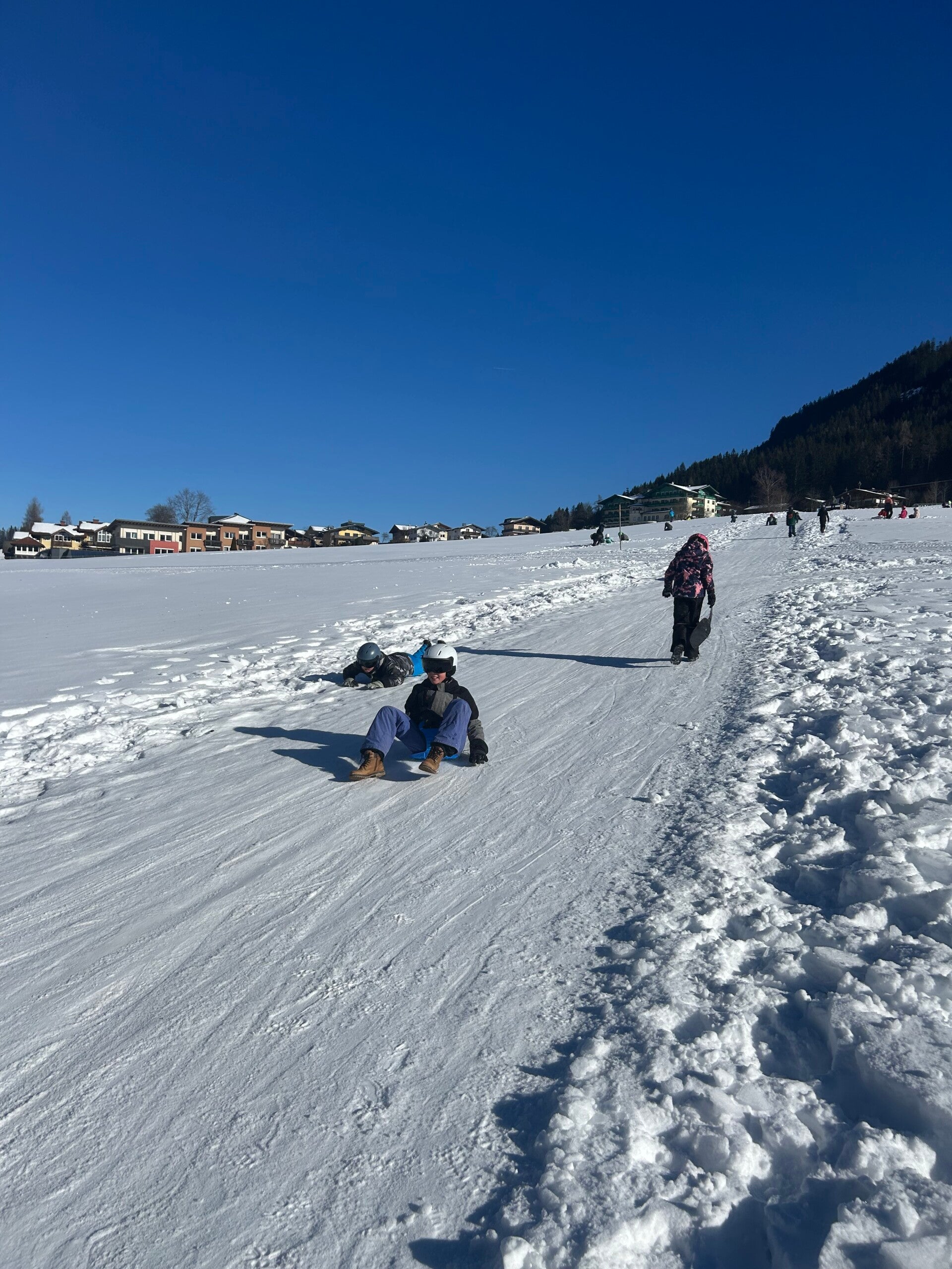 We werden met muziek gewekt. Speciaal voor onze kamer werd er ‘wanna play’ gekozen. Nadien kregen we als ochtendeten keizerpistolets en cornflakes. 6A vertrok nadien richting de snowtubes hier in het dorp. Die bleken echter nog toe in de ochtend. Daarom zijn we met zijn allen gaan poepsleeën en spelen in de sneeuw. De groep van Mitch moest ook nog zijn ski’s en botten gaan halen, want morgen gaan zij skiën in Dachstein-West.