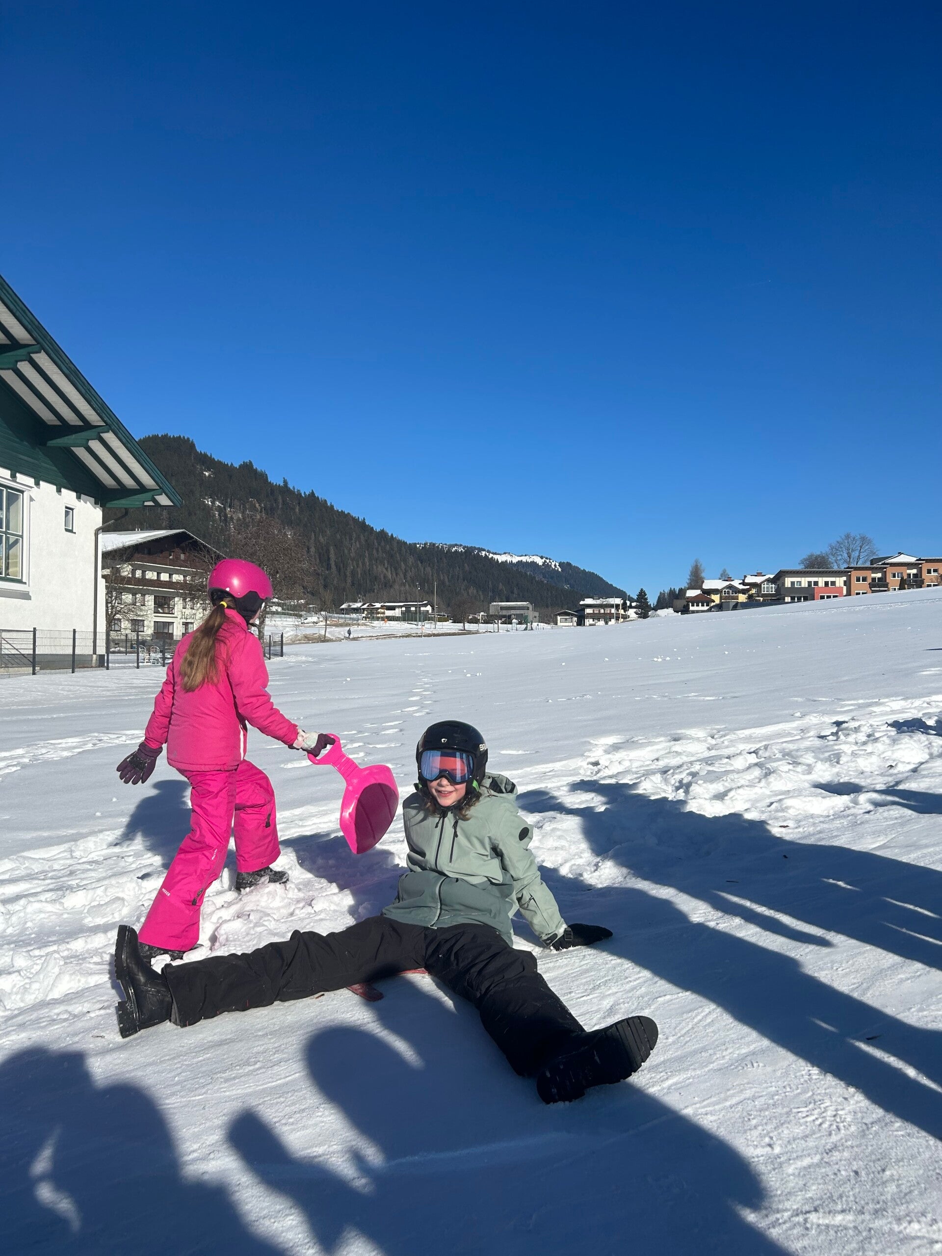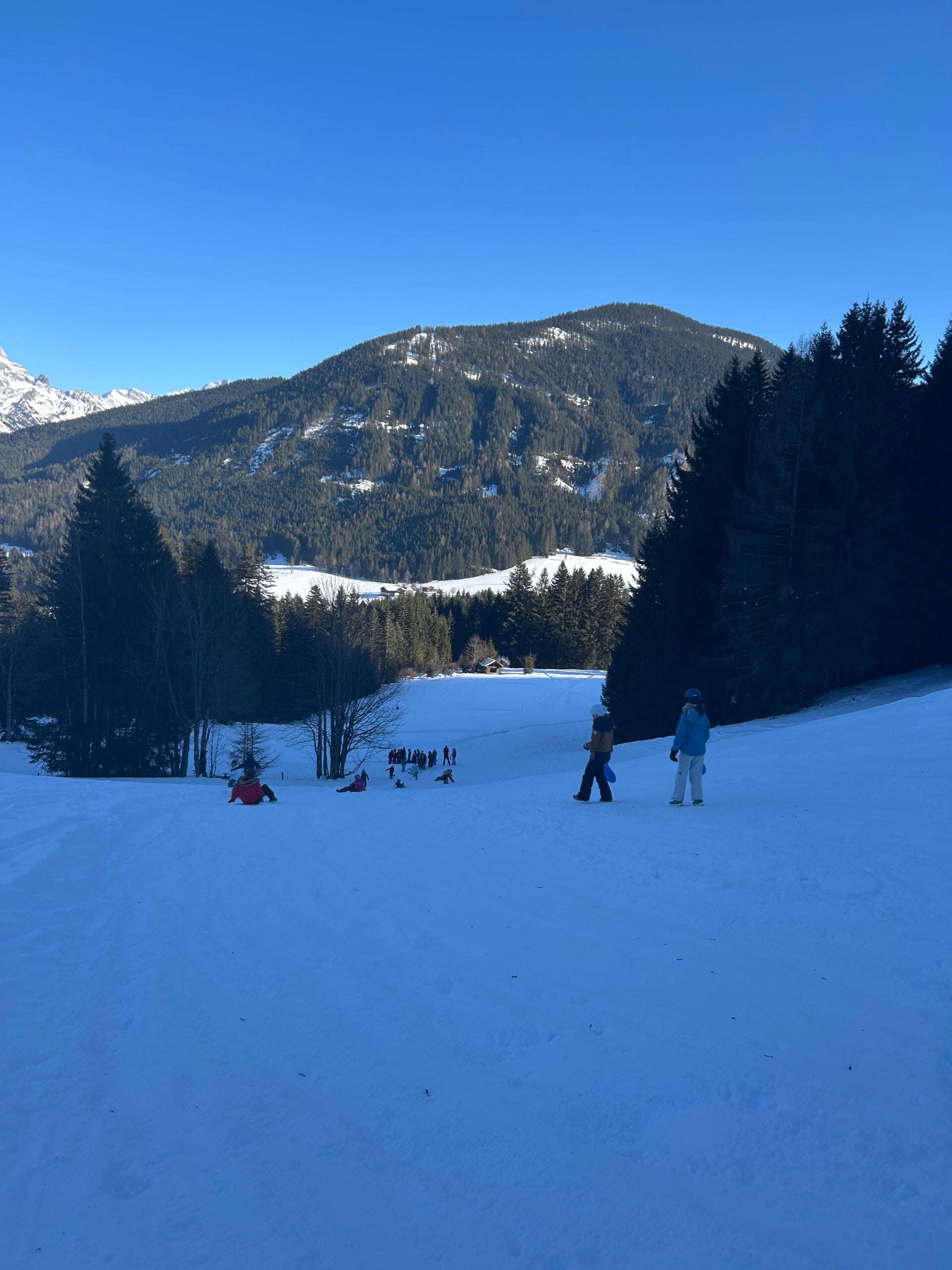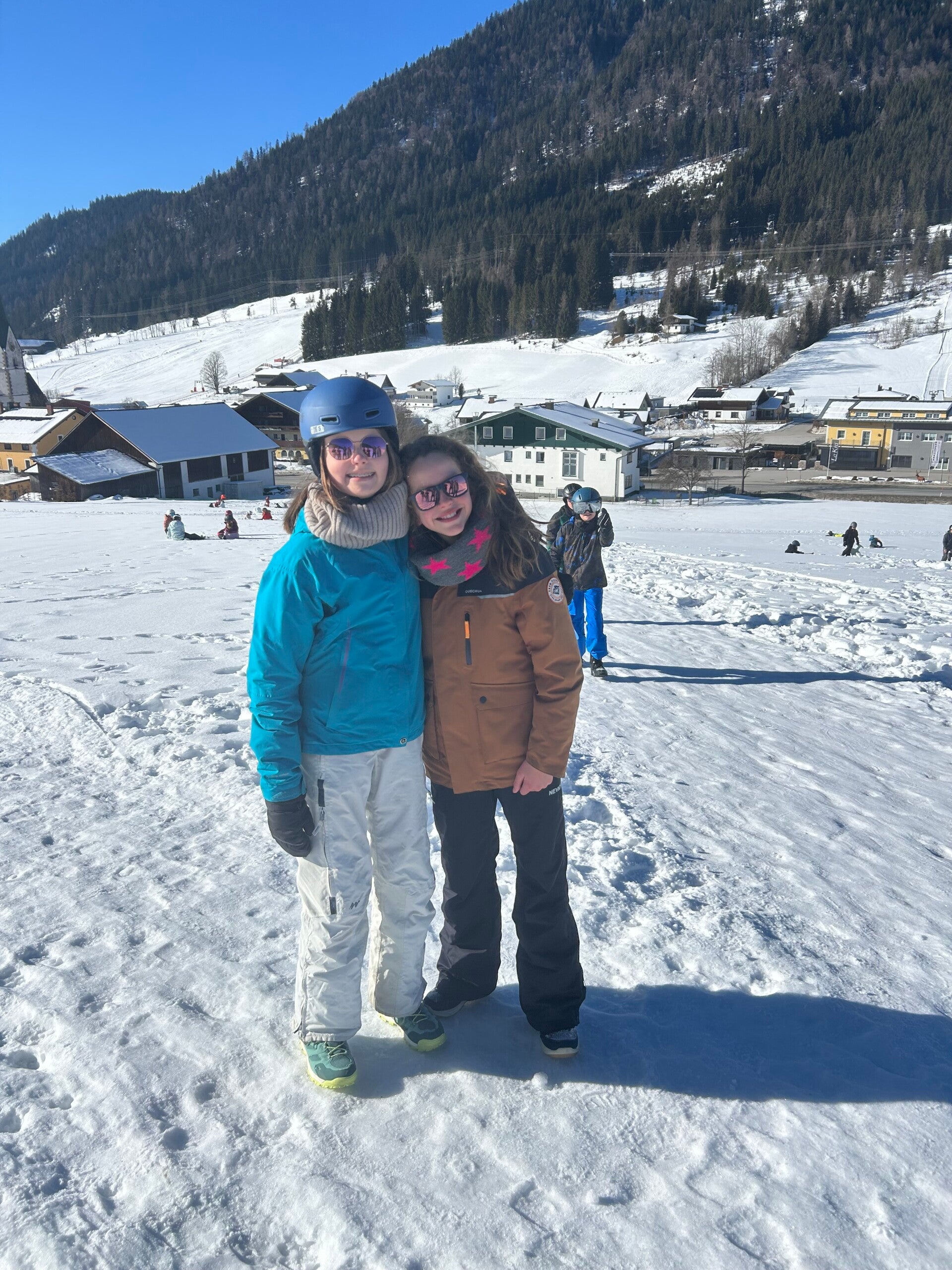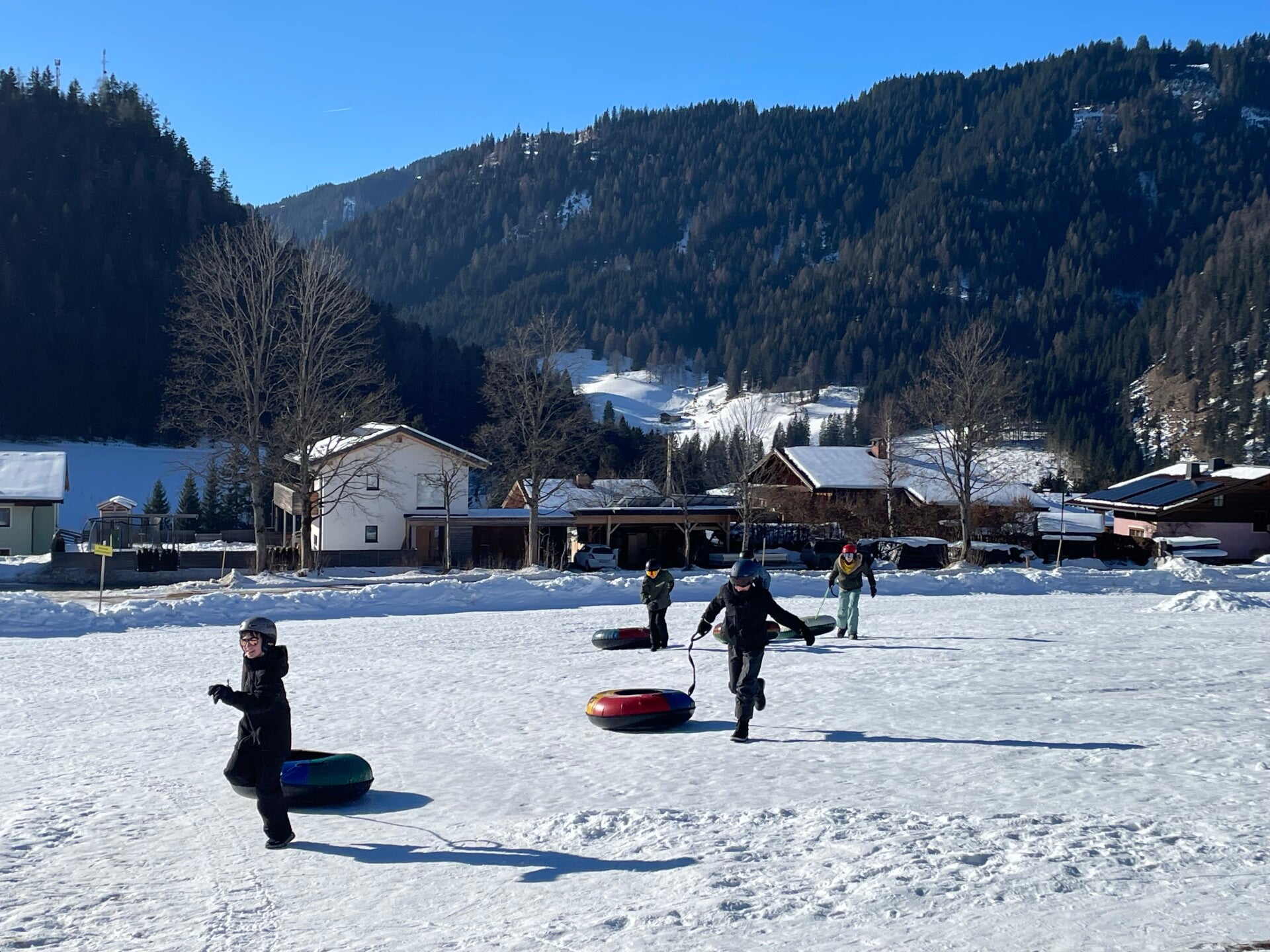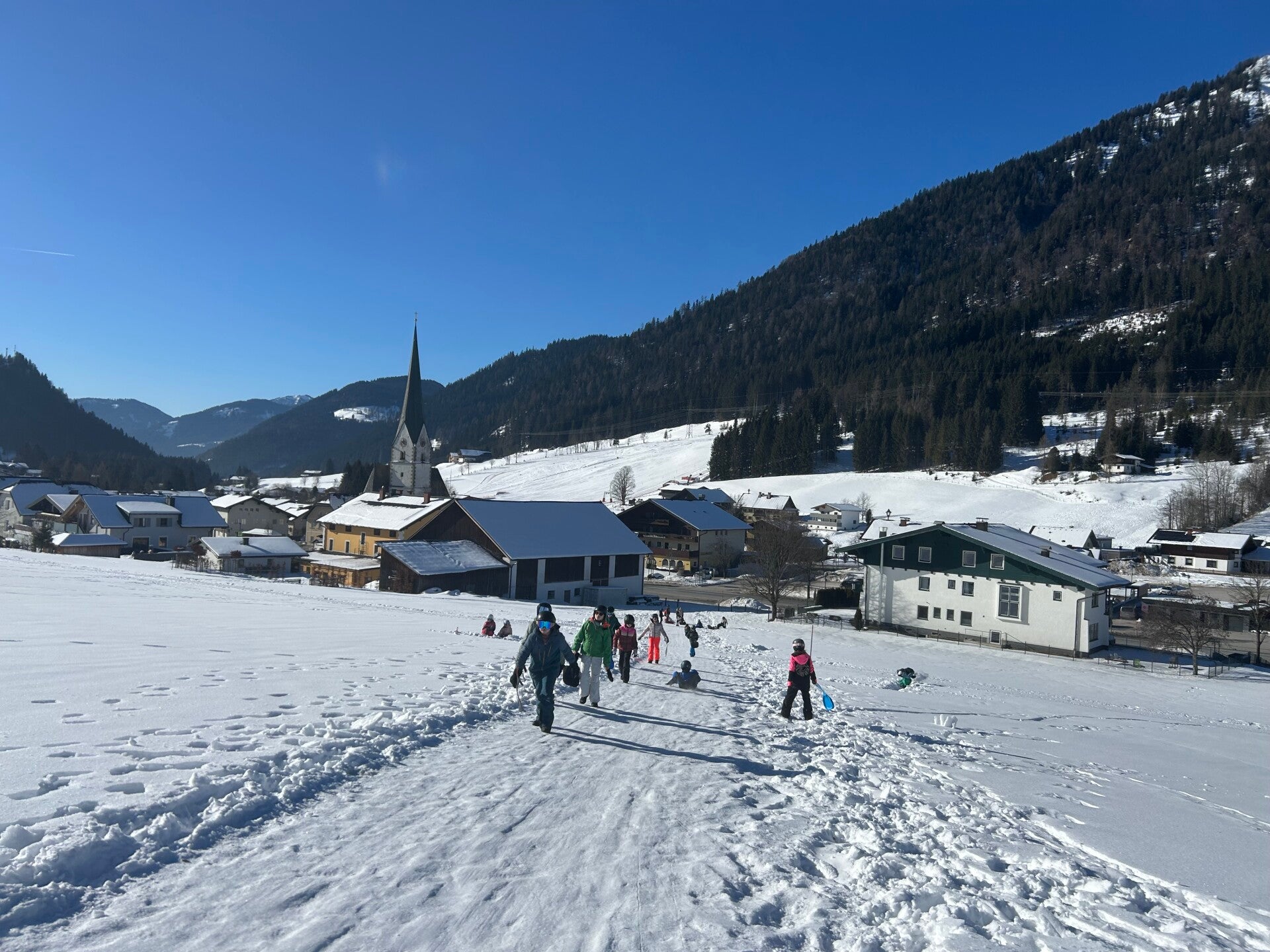 We werden met muziek gewekt. Speciaal voor onze kamer werd er ‘wanna play’ gekozen. Nadien kregen we als ochtendeten keizerpistolets en cornflakes. 6A vertrok nadien richting de snowtubes hier in het dorp. Die bleken echter nog toe in de ochtend. Daarom zijn we met zijn allen gaan poepsleeën en spelen in de sneeuw. De groep van Mitch moest ook nog zijn ski’s en botten gaan halen, want morgen gaan zij skiën in Dachstein-West.