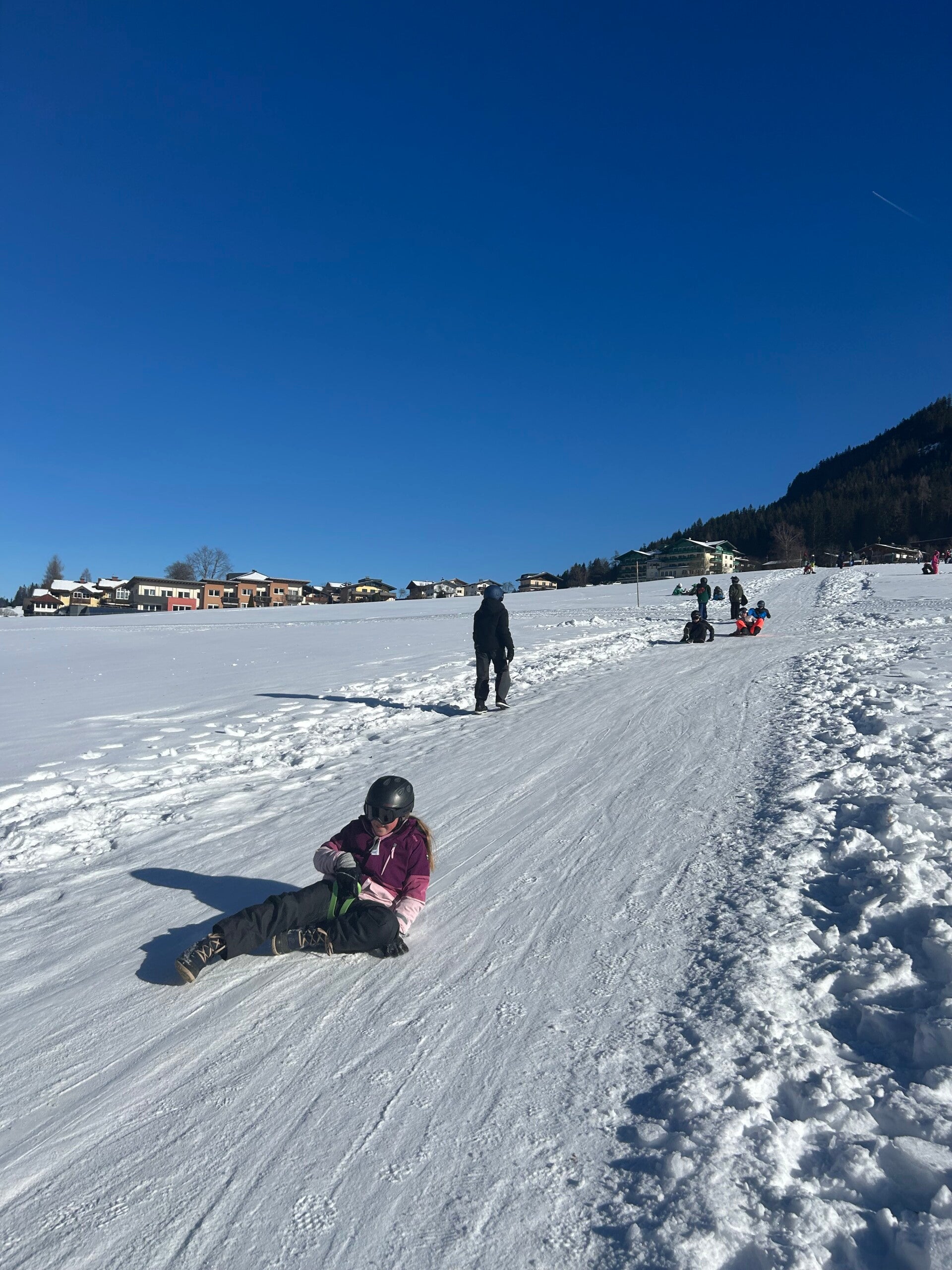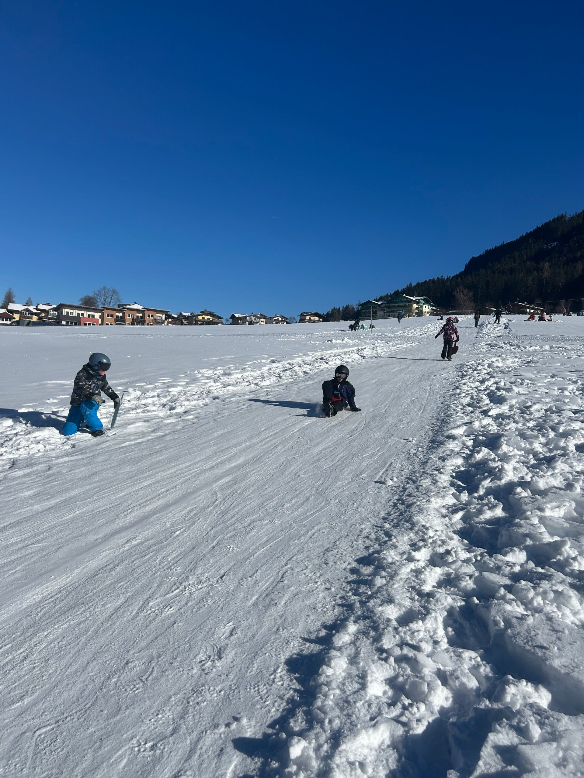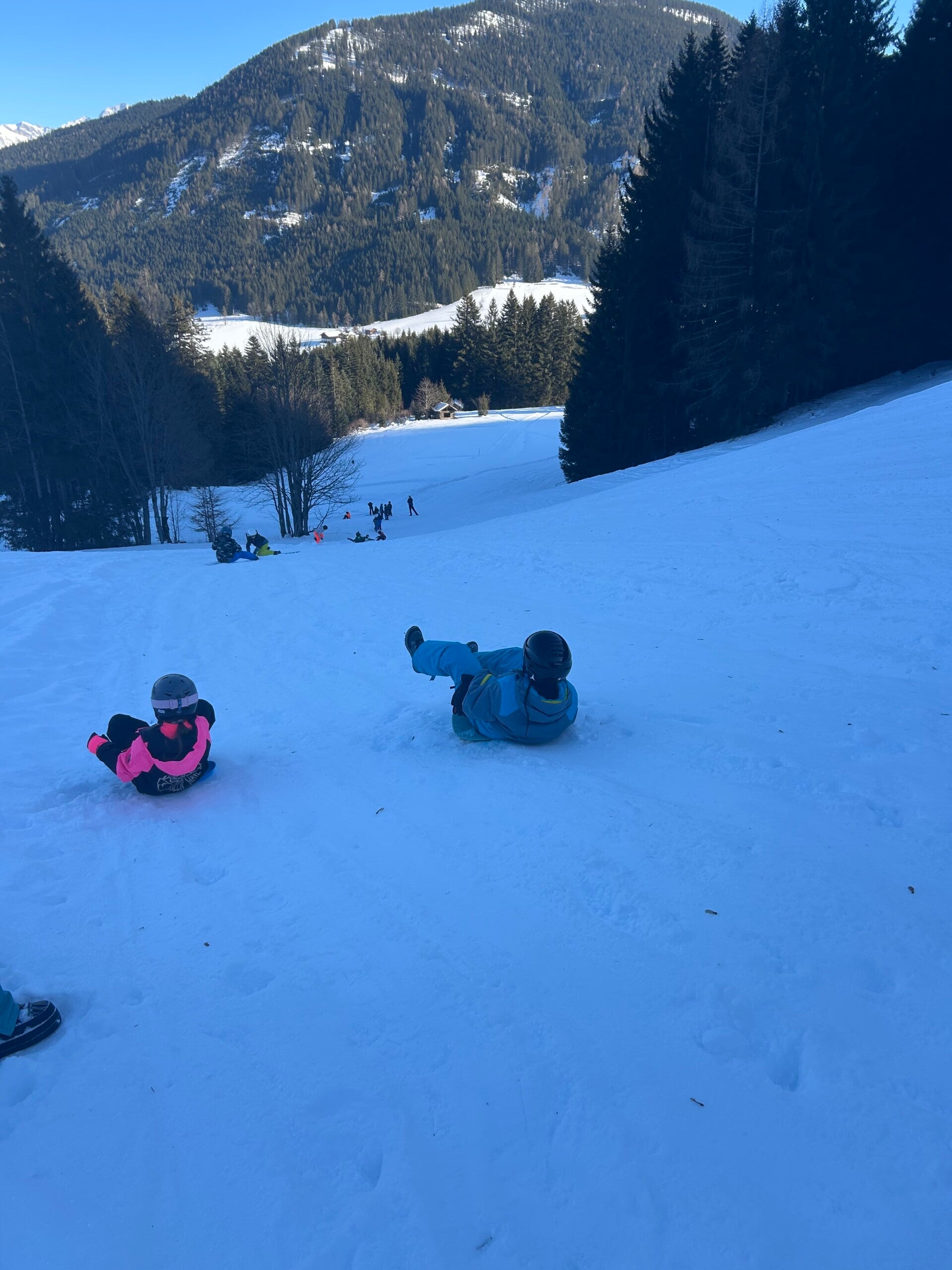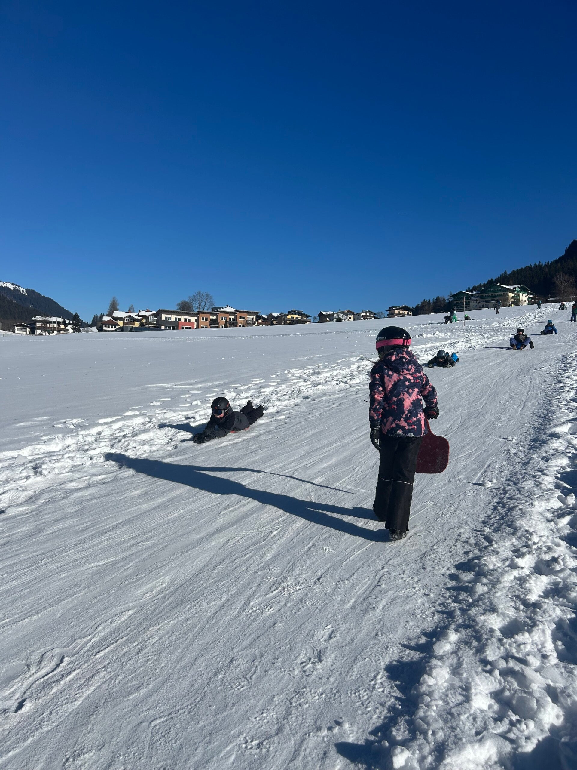 We werden met muziek gewekt. Speciaal voor onze kamer werd er ‘wanna play’ gekozen. Nadien kregen we als ochtendeten keizerpistolets en cornflakes. 6A vertrok nadien richting de snowtubes hier in het dorp. Die bleken echter nog toe in de ochtend. Daarom zijn we met zijn allen gaan poepsleeën en spelen in de sneeuw. De groep van Mitch moest ook nog zijn ski’s en botten gaan halen, want morgen gaan zij skiën in Dachstein-West.