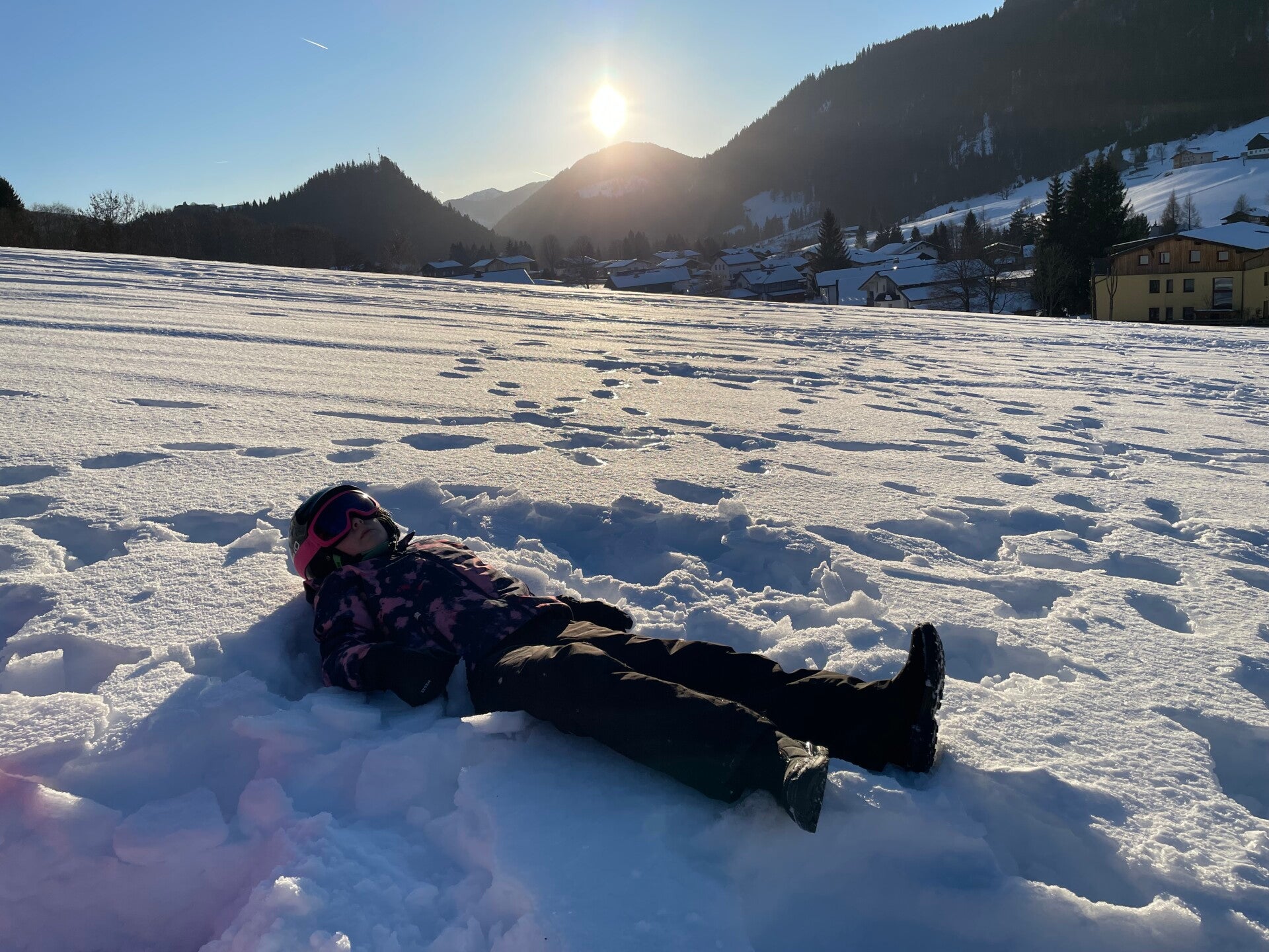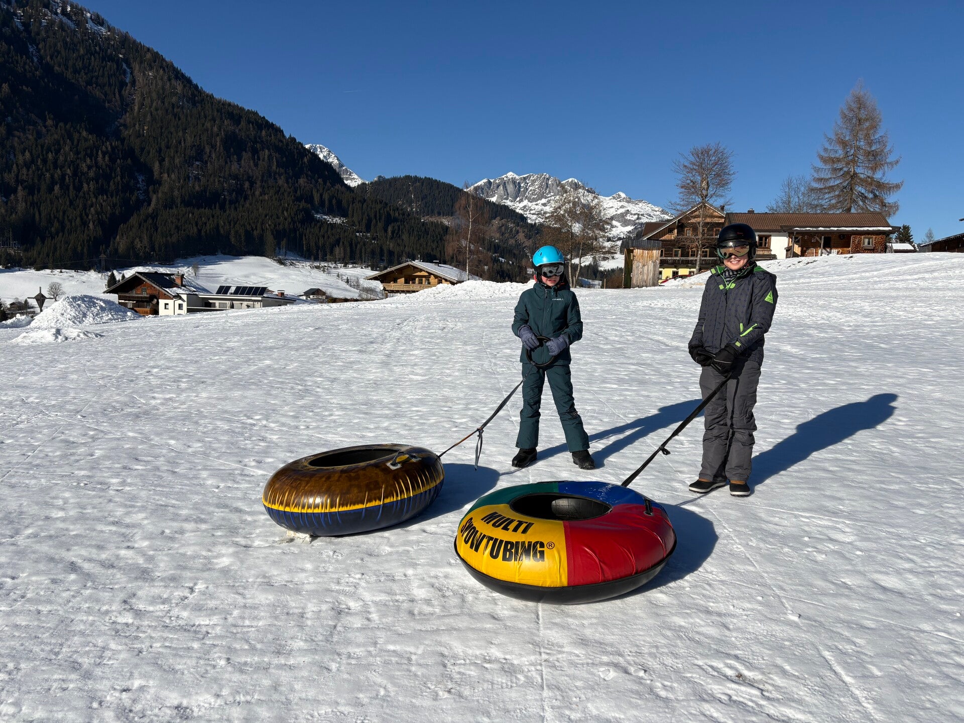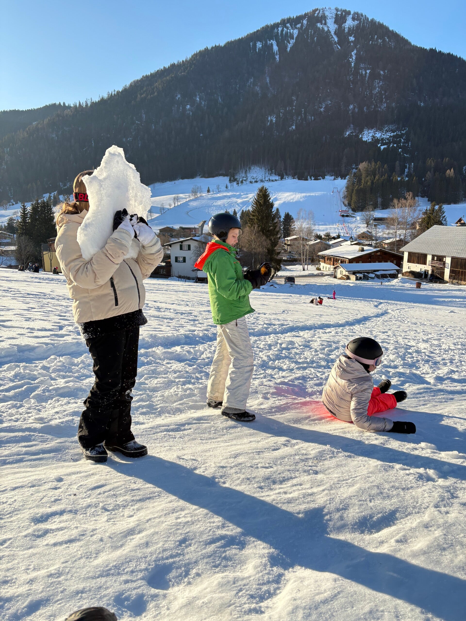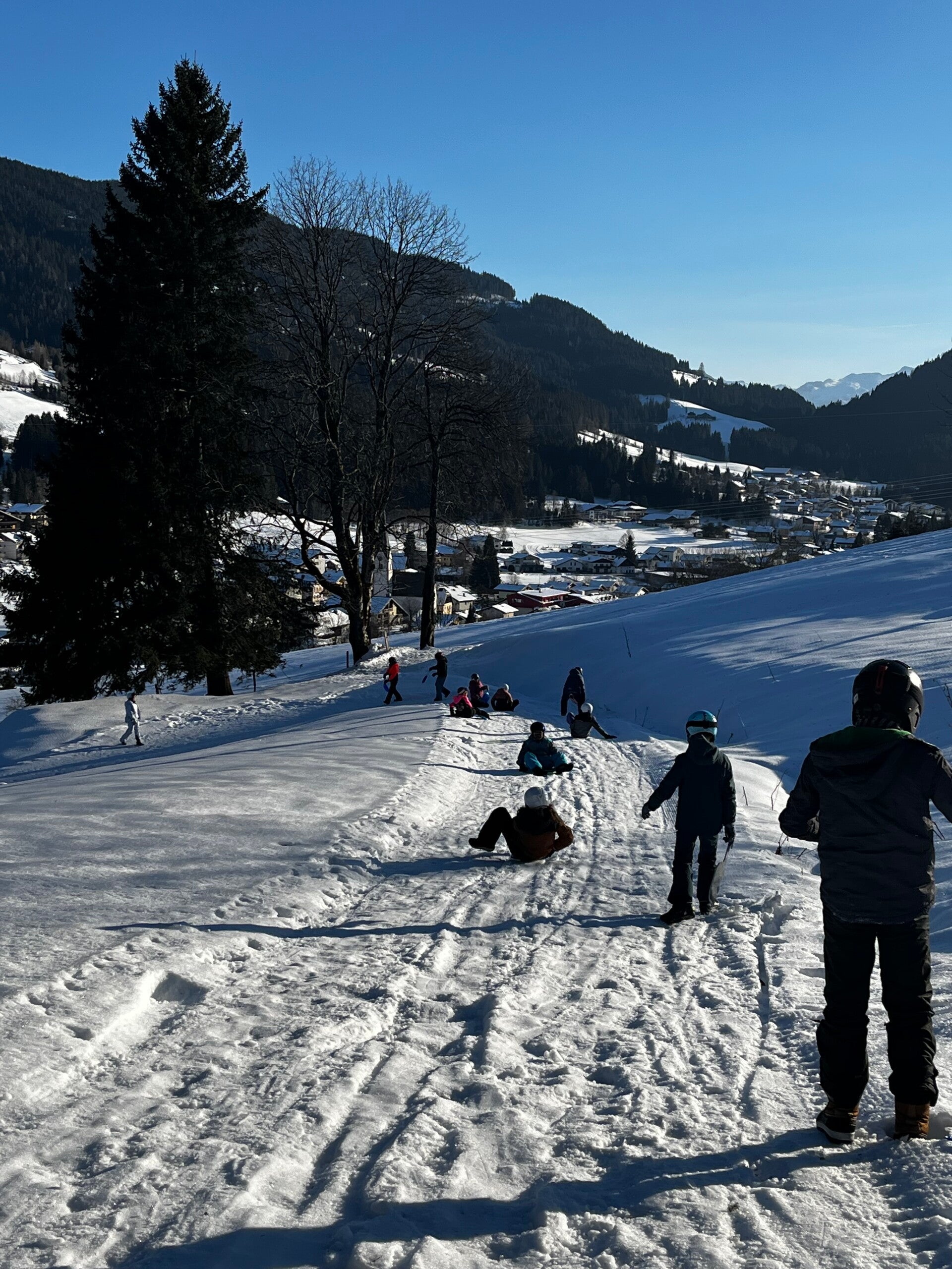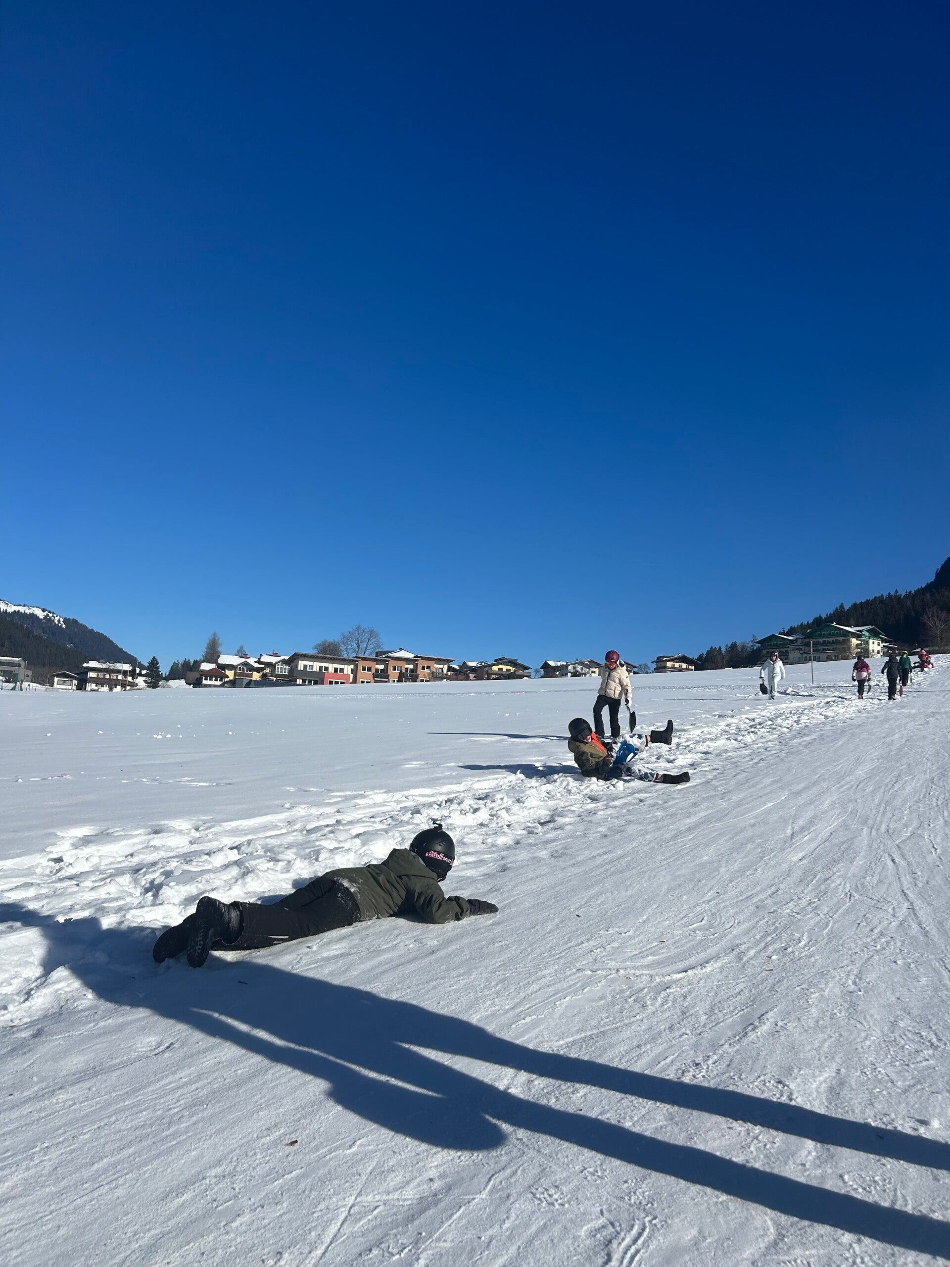 We werden met muziek gewekt. Speciaal voor onze kamer werd er ‘wanna play’ gekozen. Nadien kregen we als ochtendeten keizerpistolets en cornflakes. 6A vertrok nadien richting de snowtubes hier in het dorp. Die bleken echter nog toe in de ochtend. Daarom zijn we met zijn allen gaan poepsleeën en spelen in de sneeuw. De groep van Mitch moest ook nog zijn ski’s en botten gaan halen, want morgen gaan zij skiën in Dachstein-West.