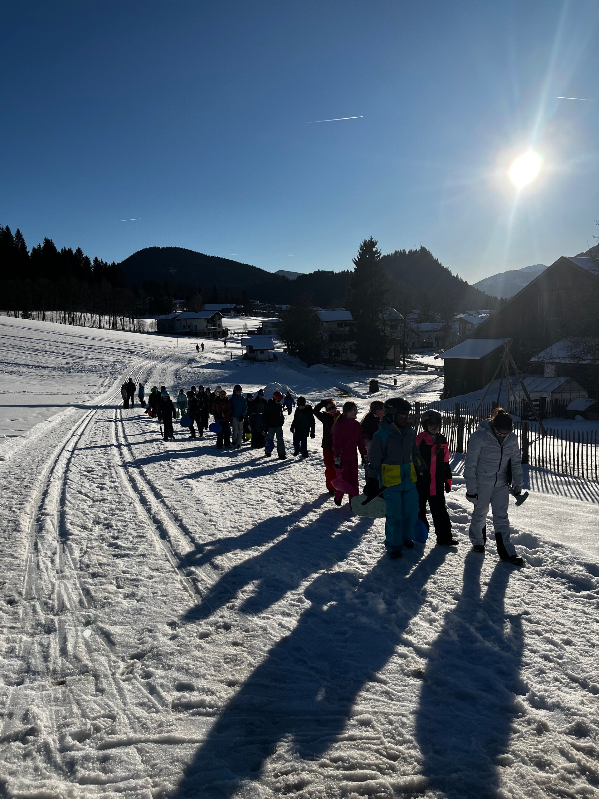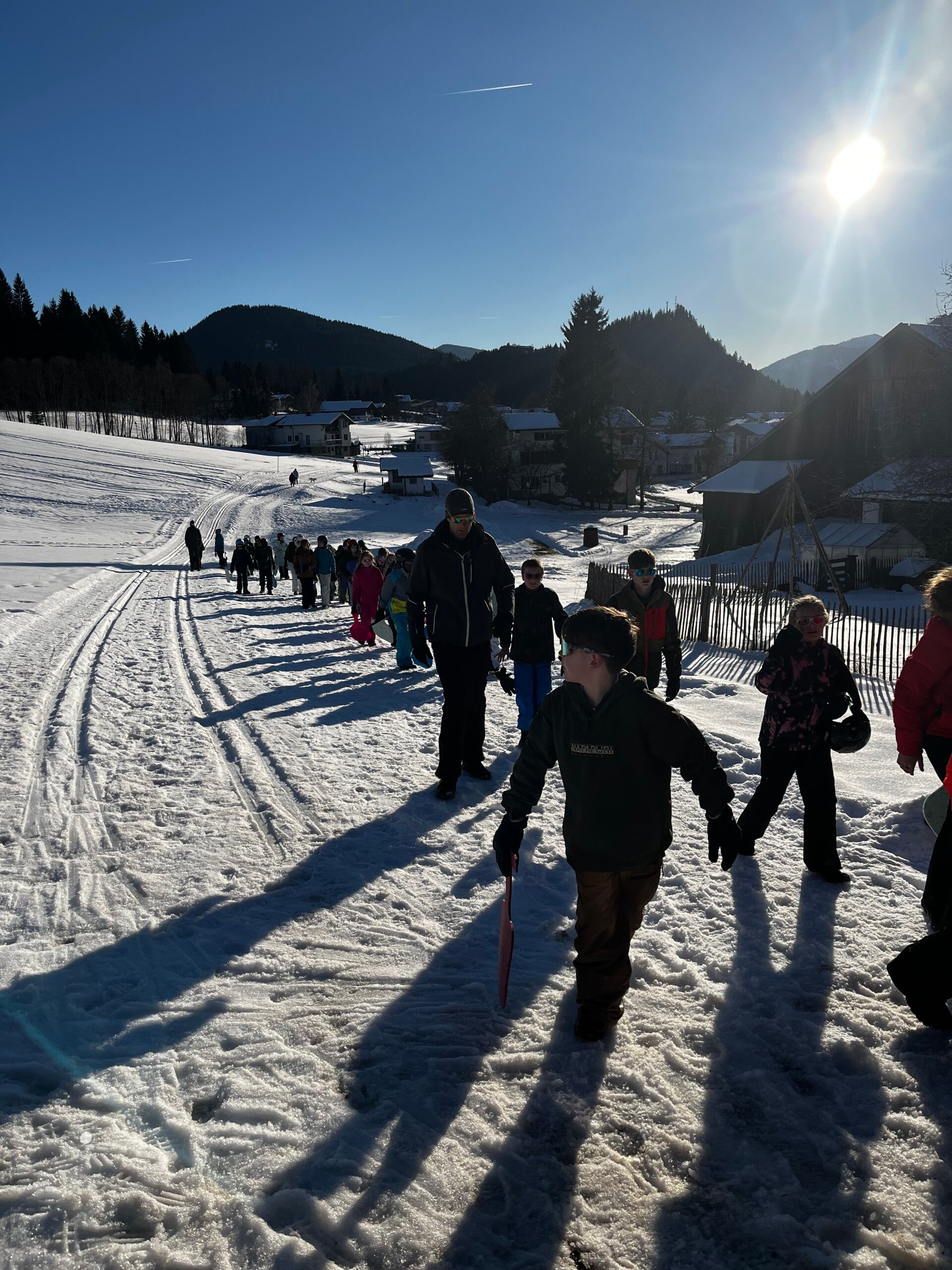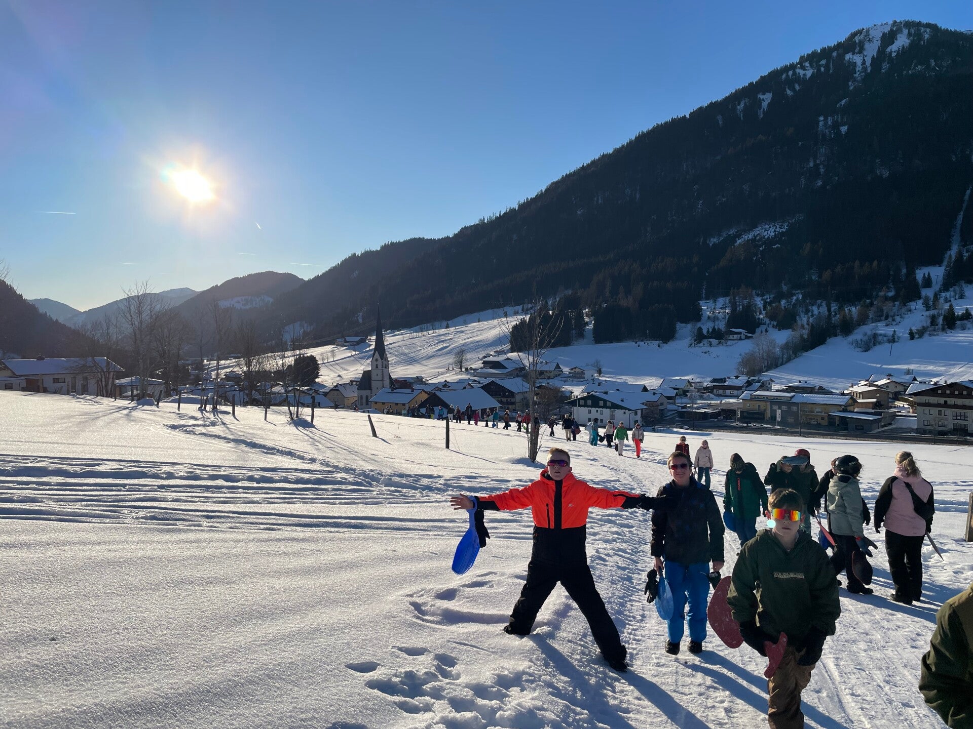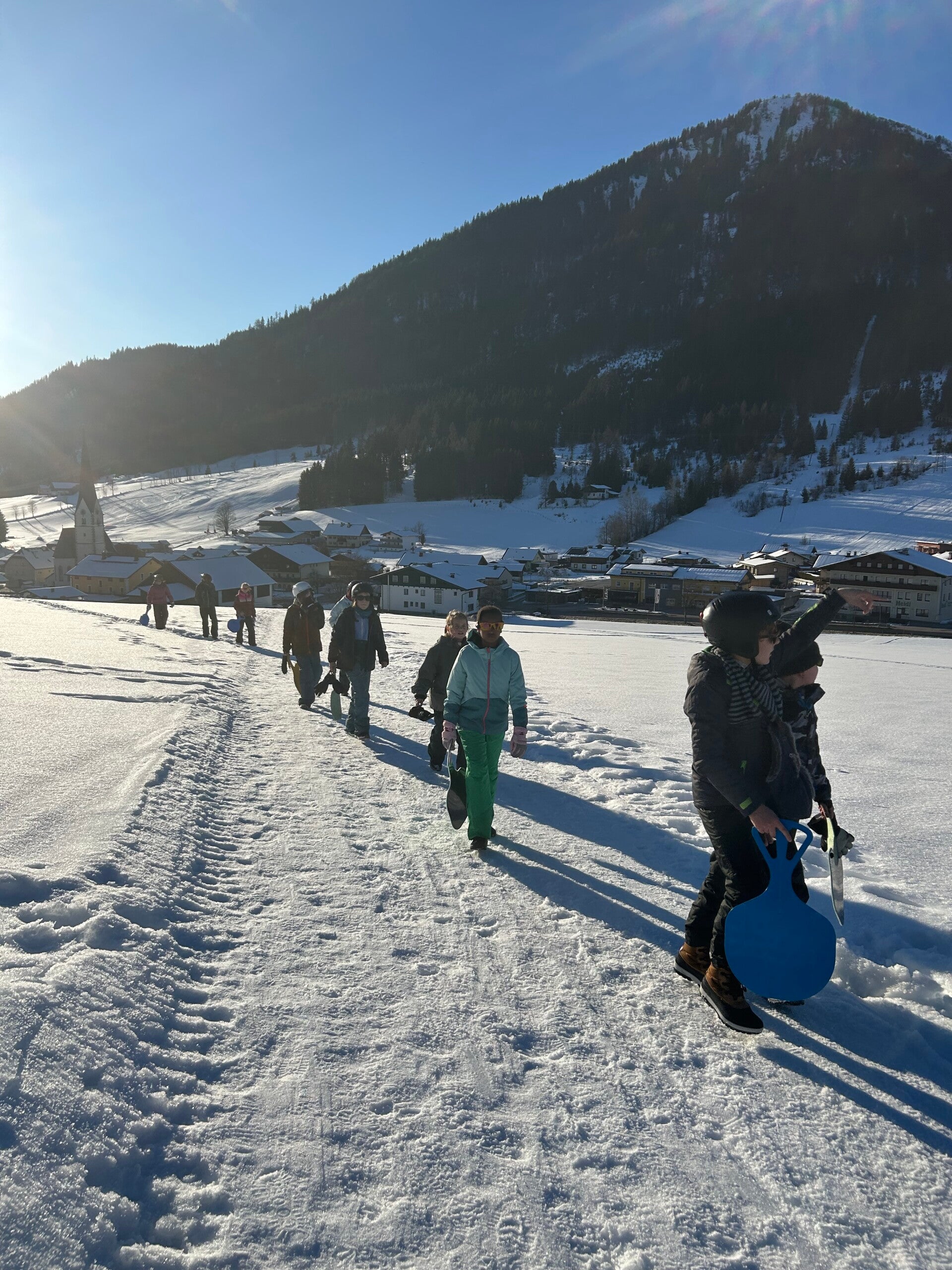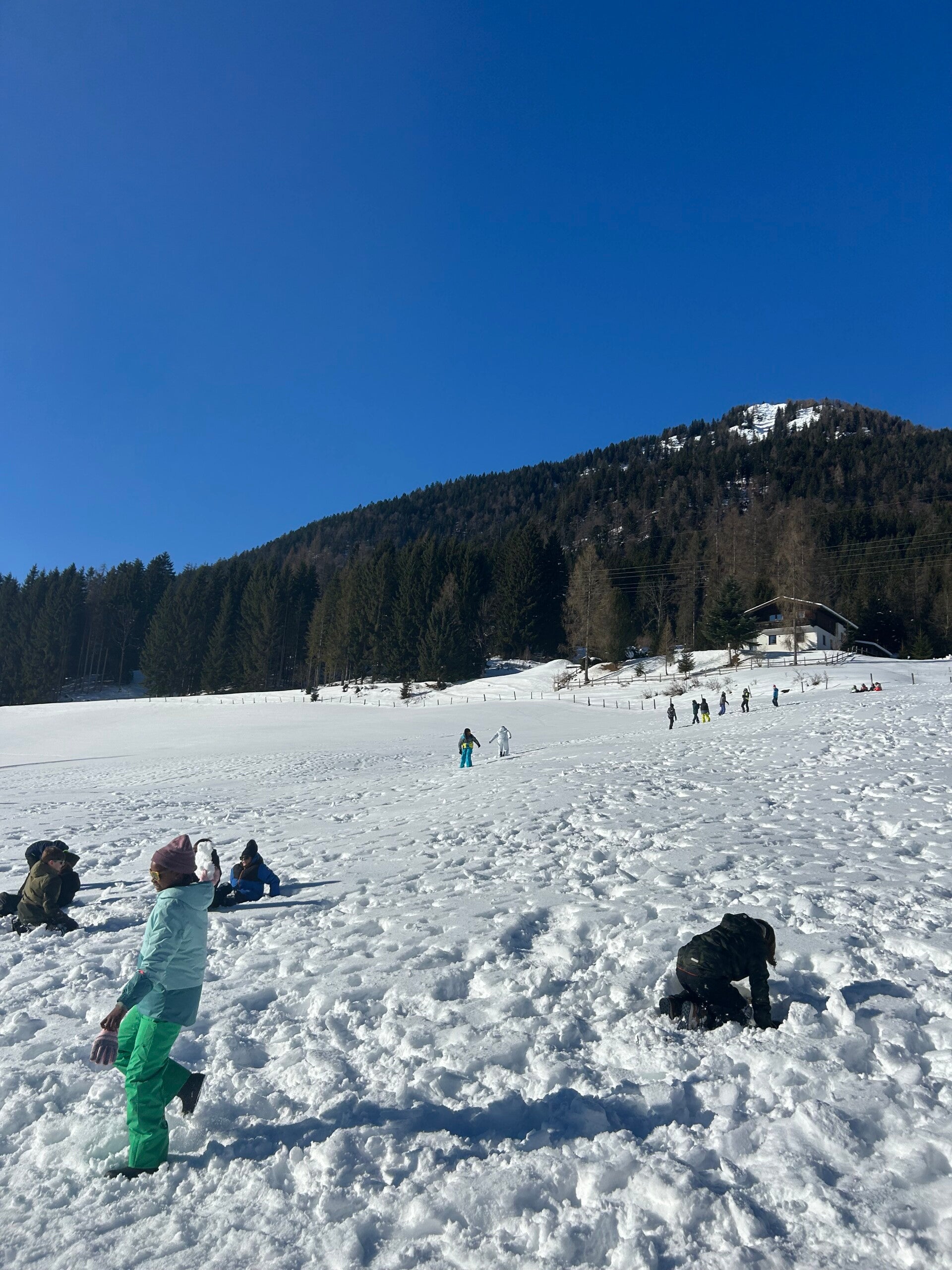 Als tussendoortje keken we nog even een film van ‘The Lion King’ en dan begon de spanning echt. We kwamen aan en meteen kregen we onze kamers. Iedereen was tevreden. Na het sleuren met de koffers was het ski-broek aandoen en naar buiten gaan. Hop, de sneeuw in en wij hadden het echt naar onze zin. We hebben lekker eten gekregen, nog een grote wandeling gemaakte en met de poepsleetjes naar beneden gegleden. We stonden ook op de webcam. Toen we terug waren hebben we een koekje gegeten en ons opgefrist. Daarna was het avondeten om de dag te eindigen met spelletjes spelen en brieven schrijven. Slaapwel!