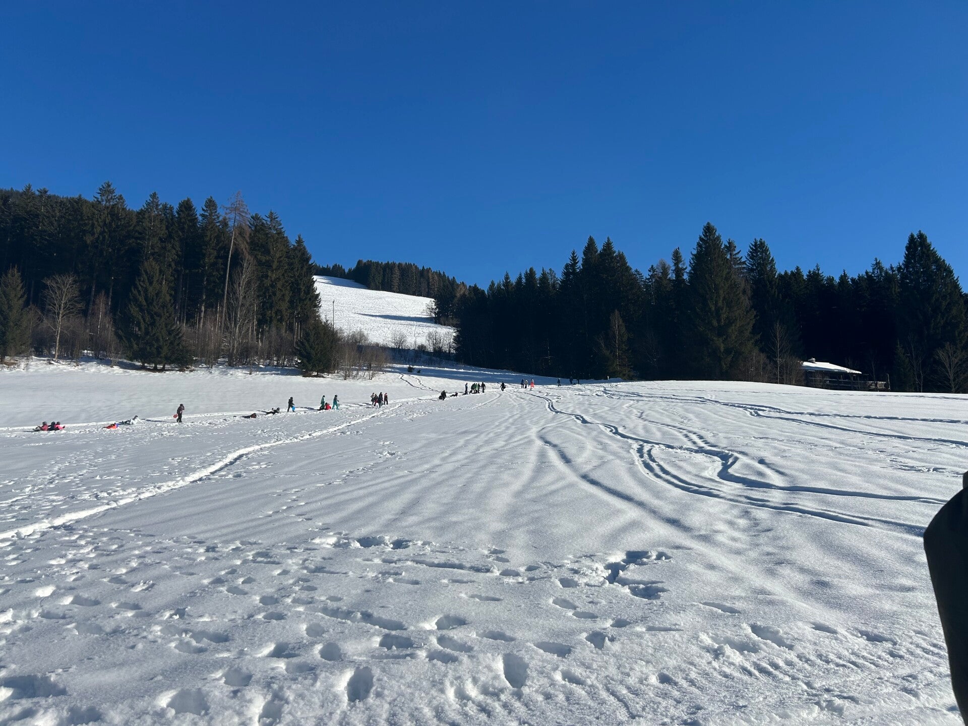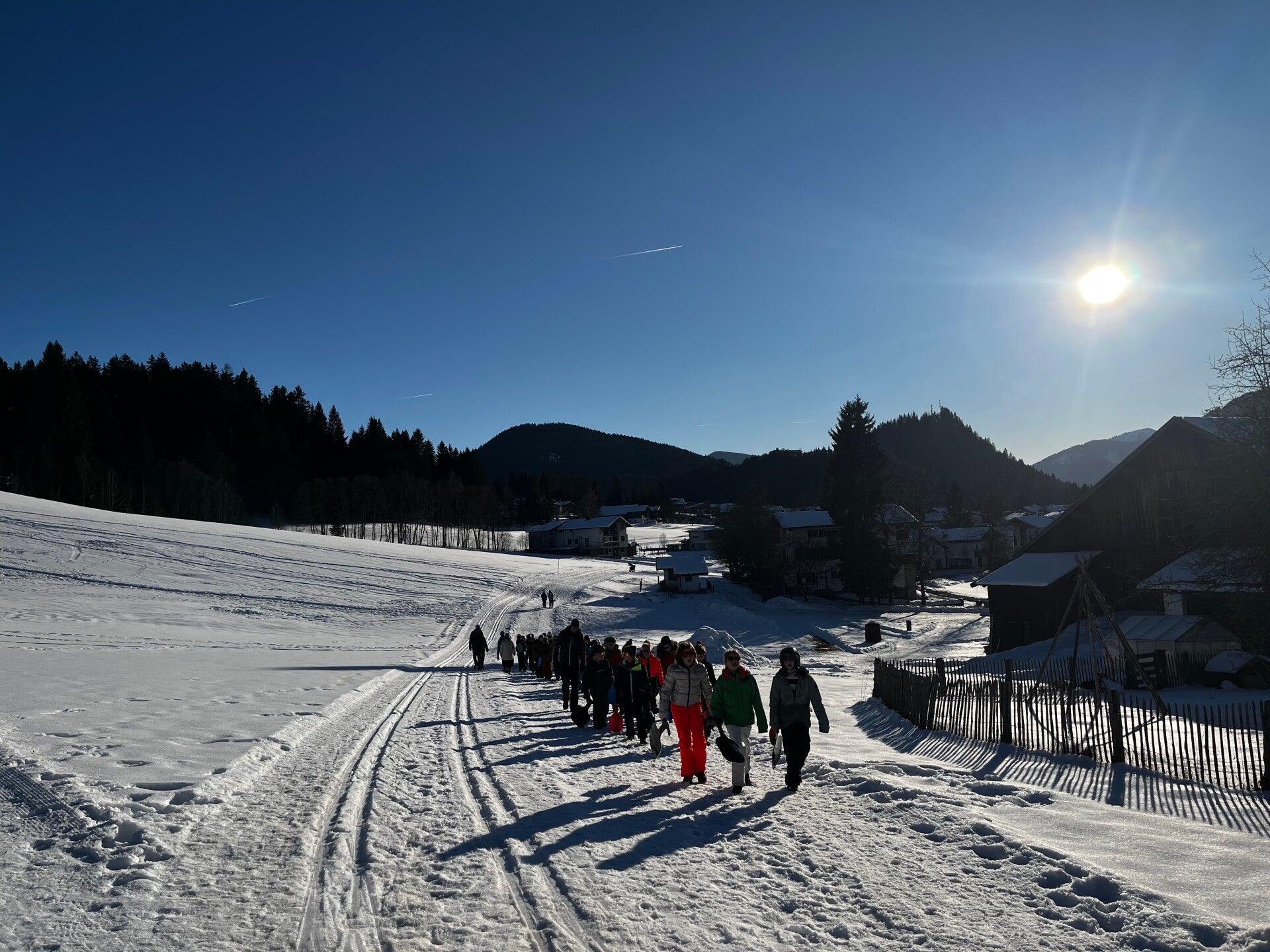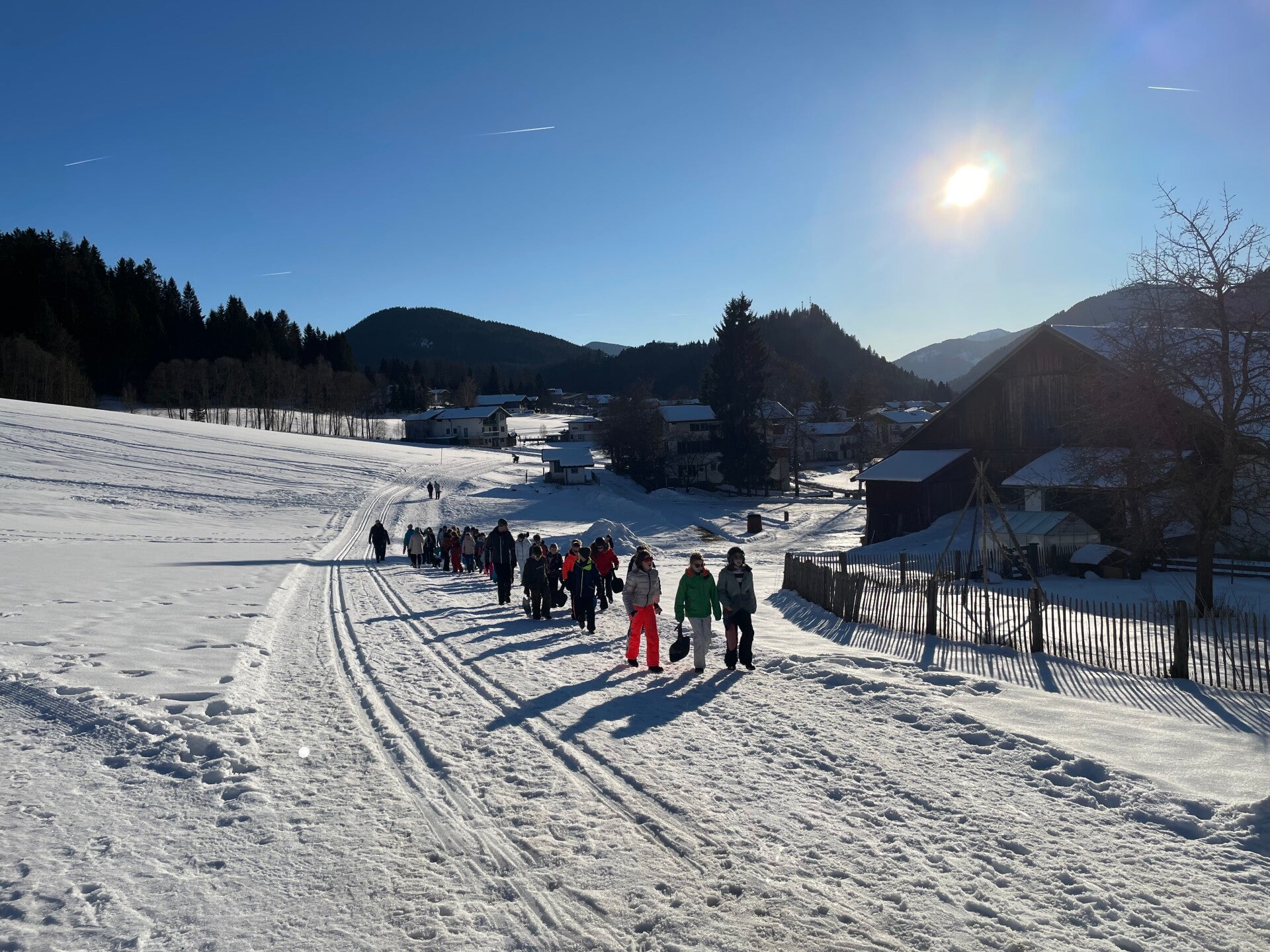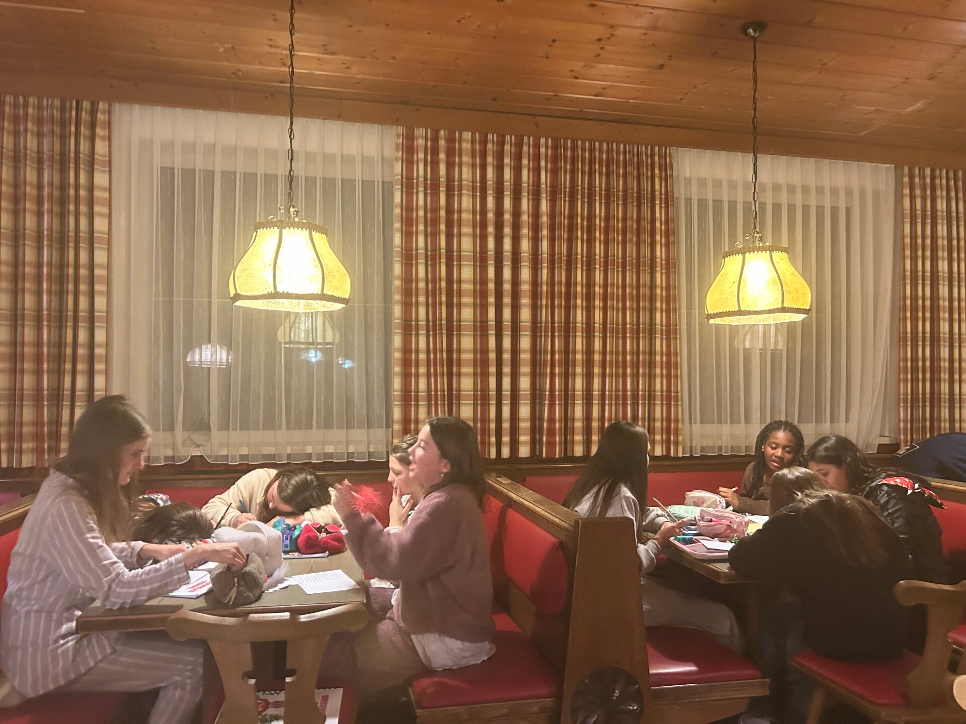 Als tussendoortje keken we nog even een film van ‘The Lion King’ en dan begon de spanning echt. We kwamen aan en meteen kregen we onze kamers. Iedereen was tevreden. Na het sleuren met de koffers was het ski-broek aandoen en naar buiten gaan. Hop, de sneeuw in en wij hadden het echt naar onze zin. We hebben lekker eten gekregen, nog een grote wandeling gemaakte en met de poepsleetjes naar beneden gegleden. We stonden ook op de webcam. Toen we terug waren hebben we een koekje gegeten en ons opgefrist. Daarna was het avondeten om de dag te eindigen met spelletjes spelen en brieven schrijven. Slaapwel!