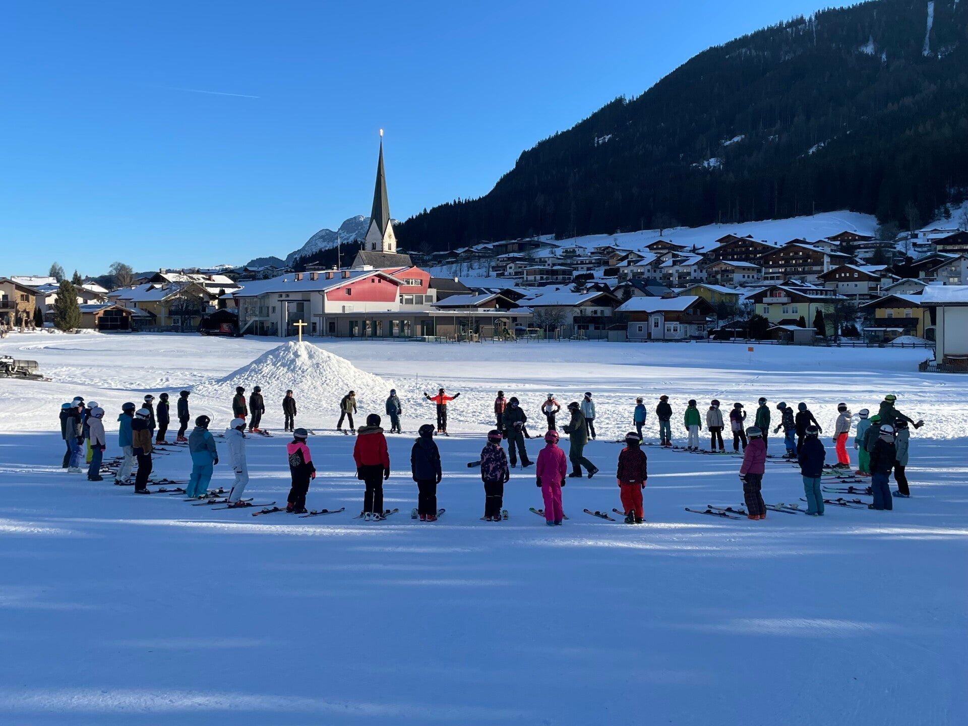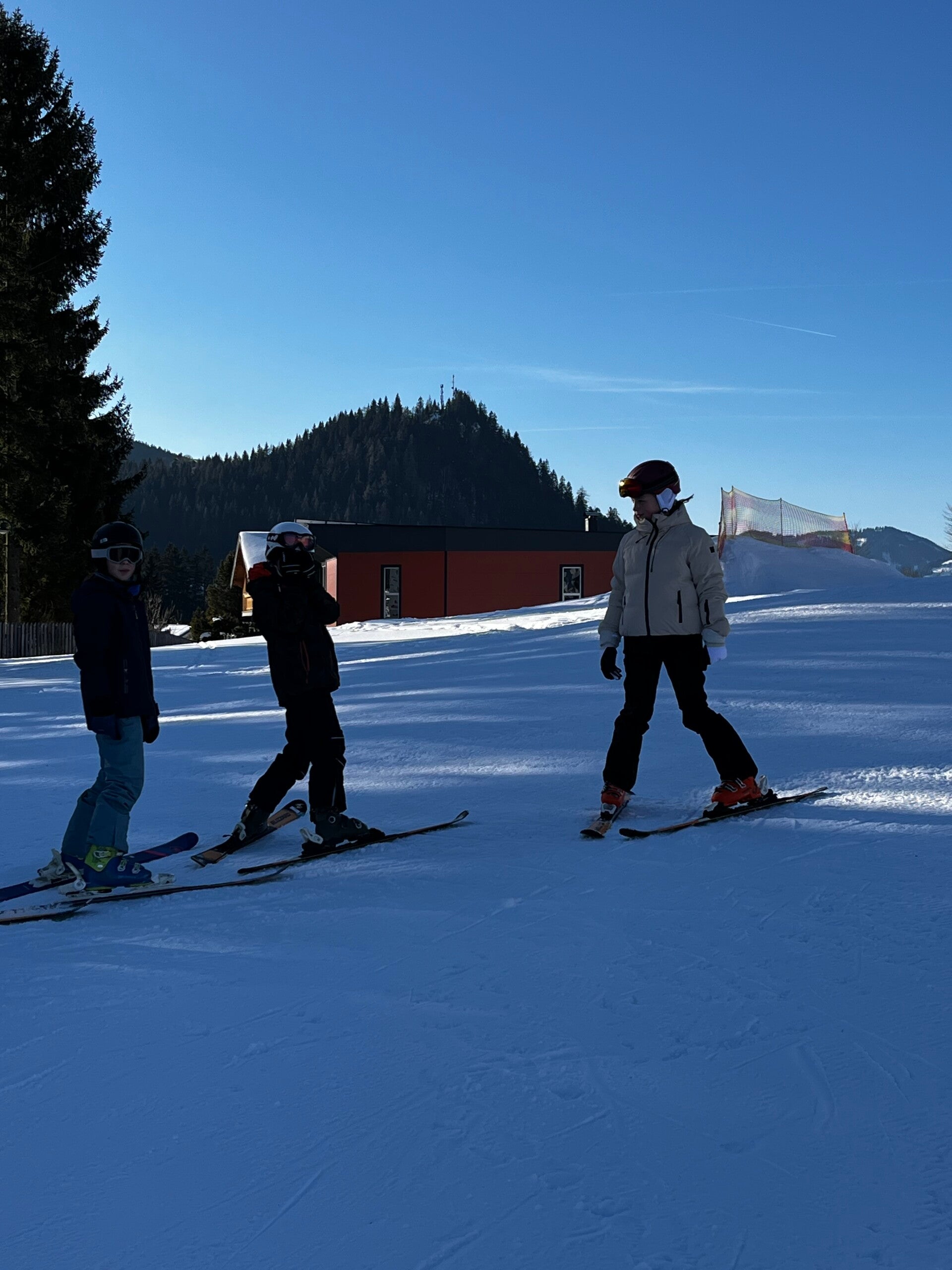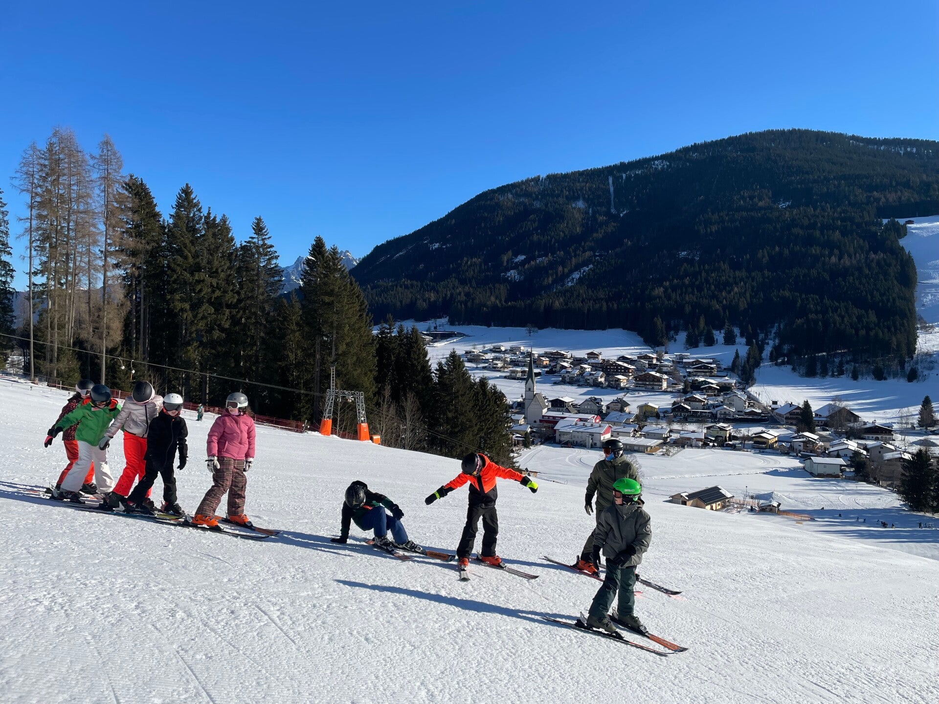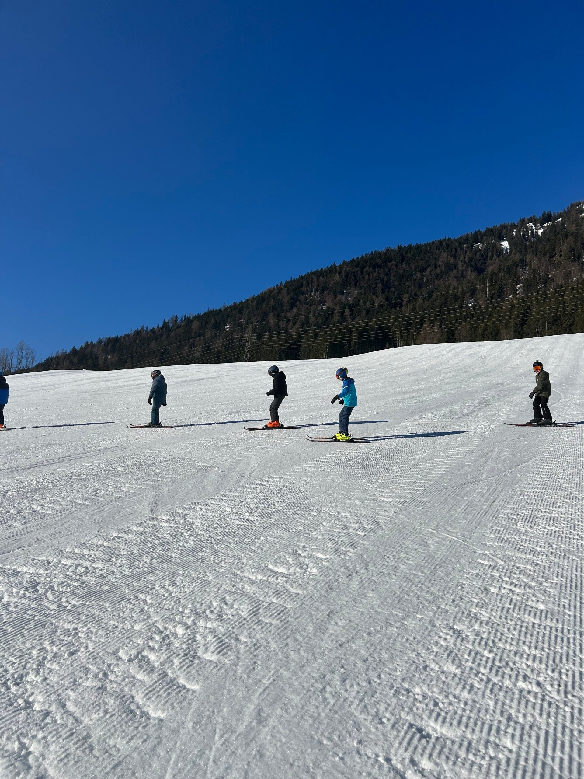 Eens aangekomen op de skipiste moesten we een testje doen om te zien hoe goed we waren, waarna we dan konden gaan skiën met onze vrienden en skimoni’s.