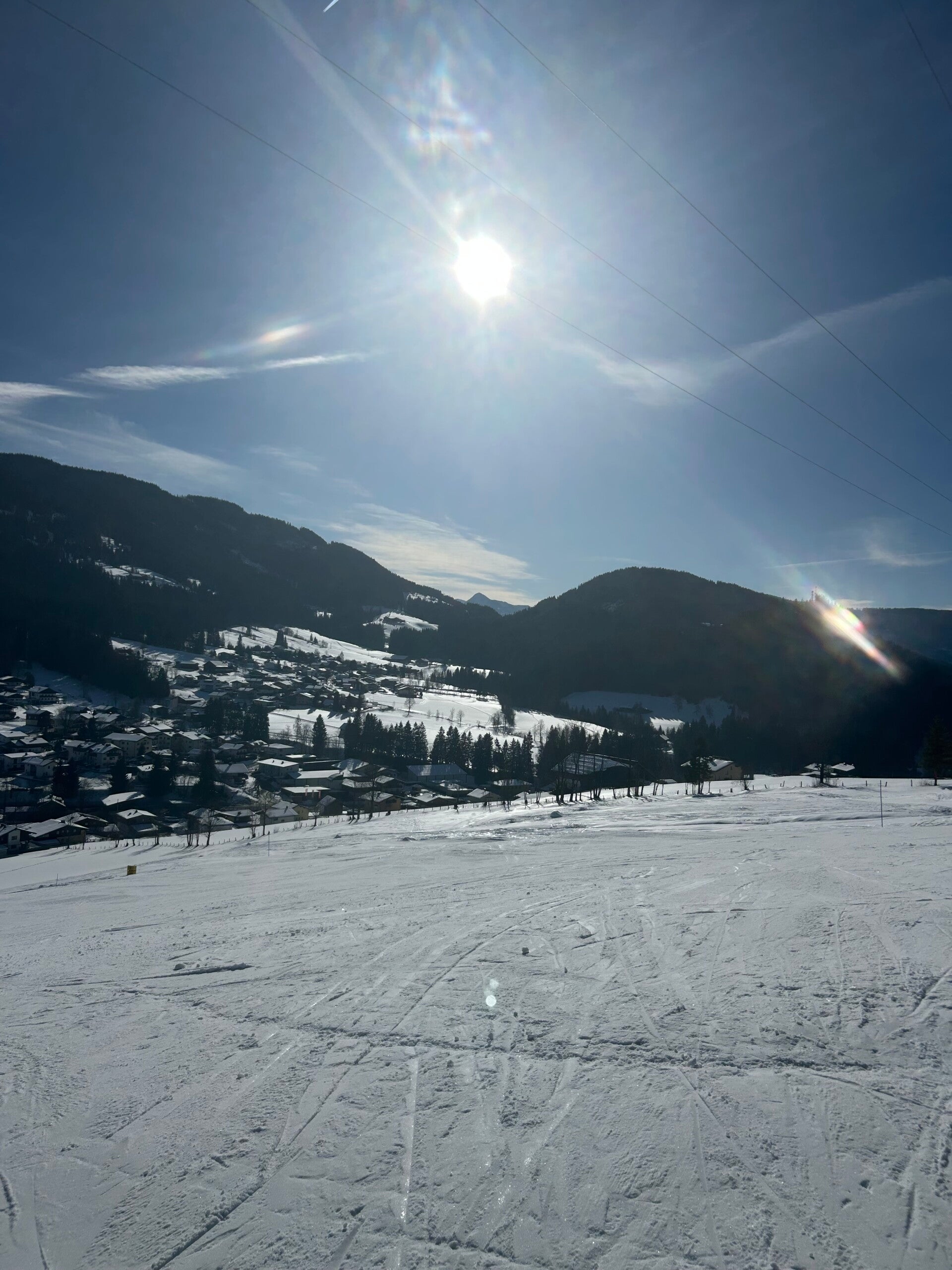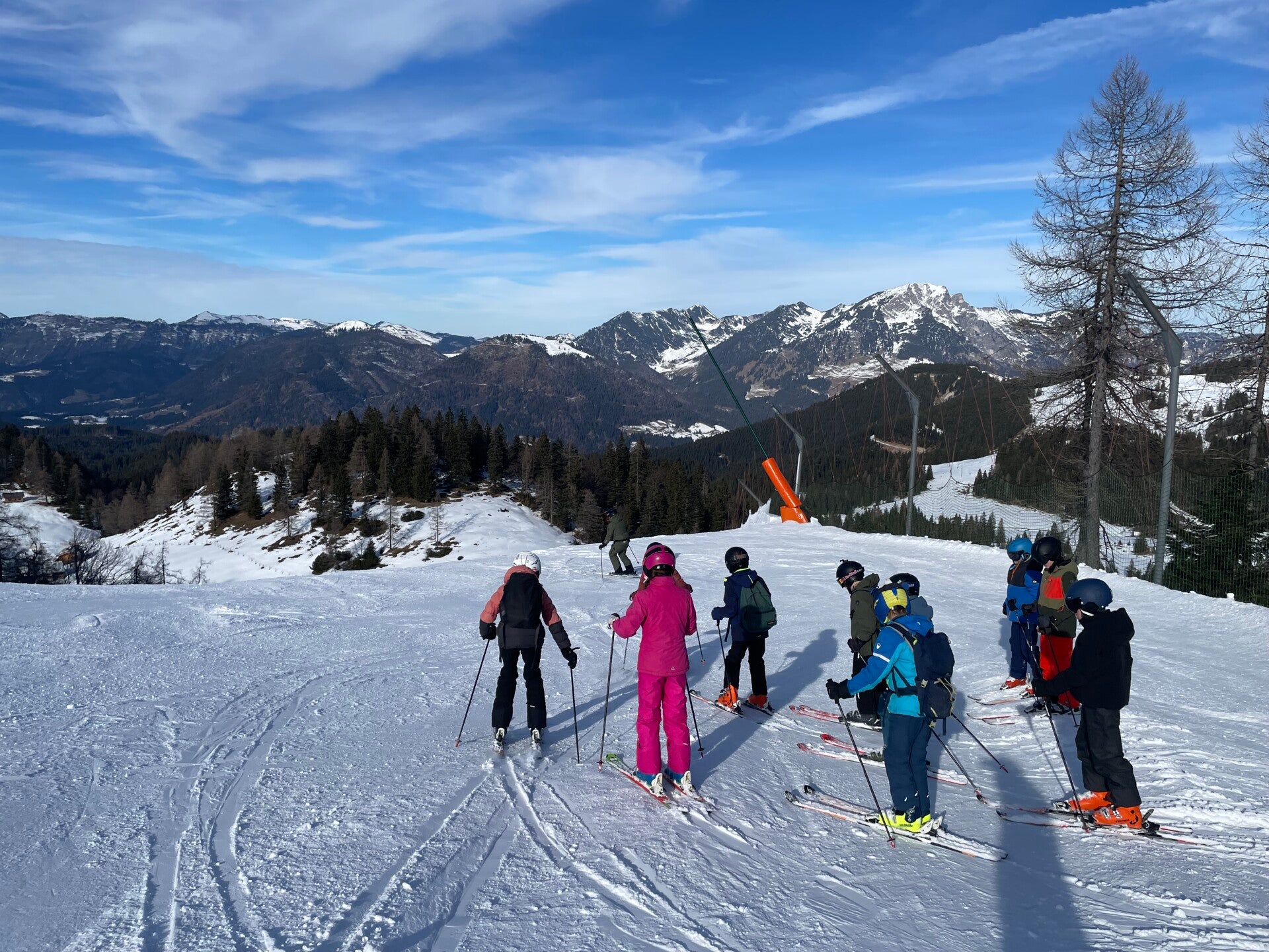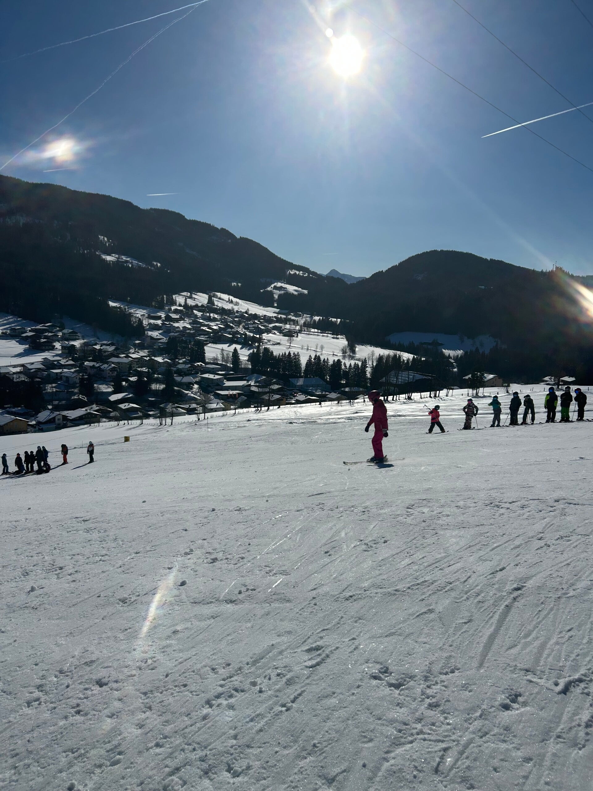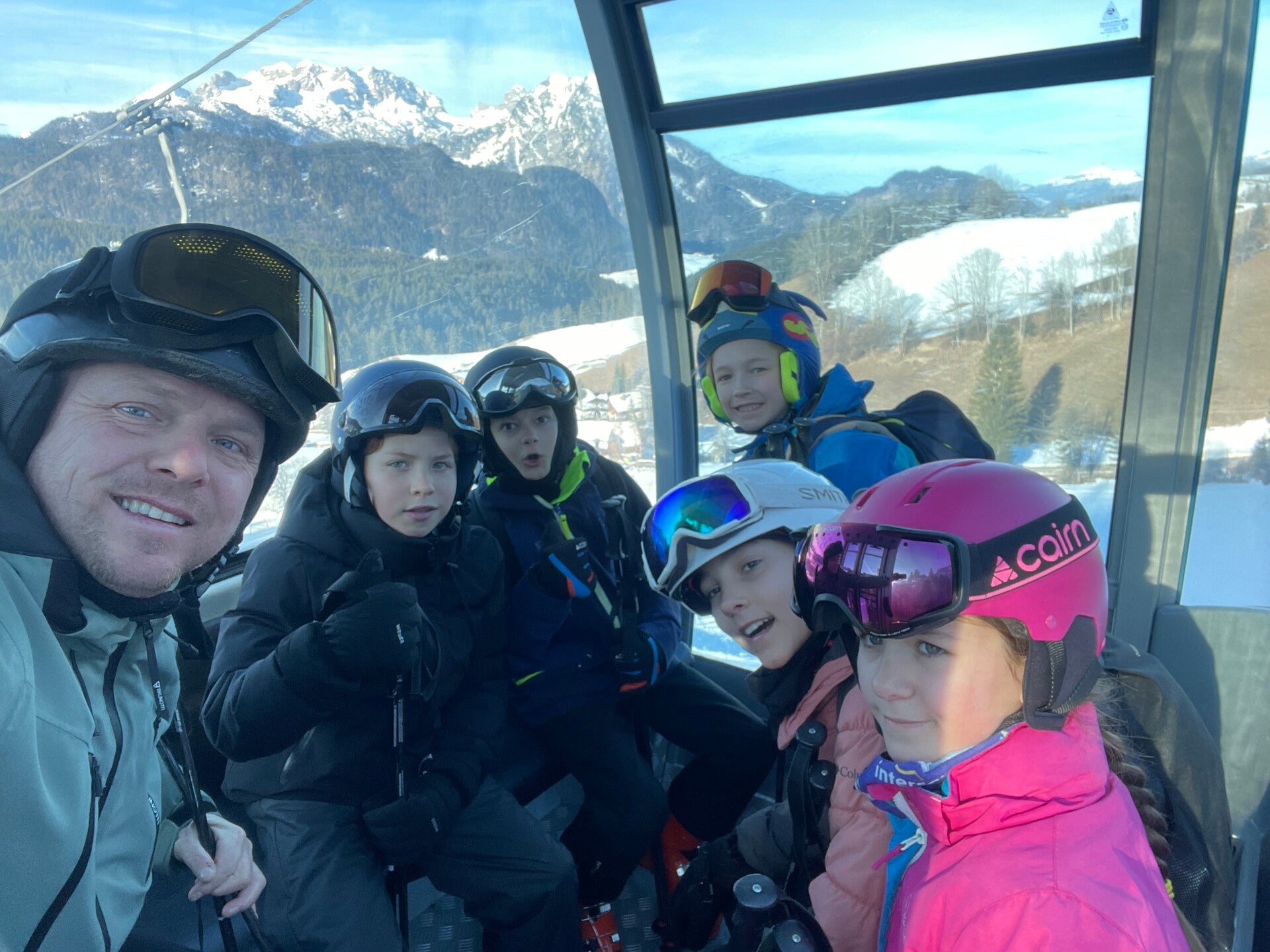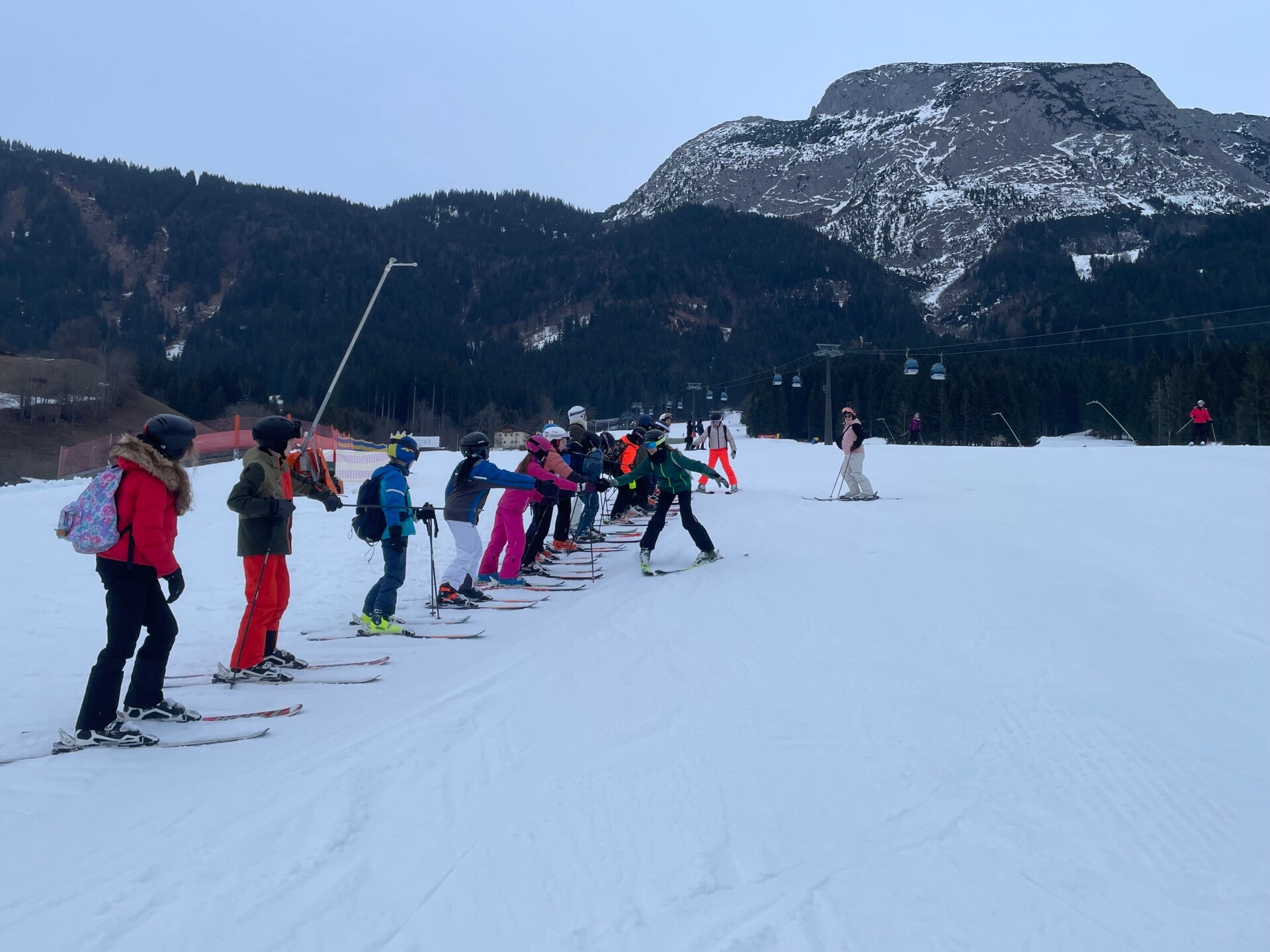 De groep van Marc mocht vandaag voor de eerste keer helemaal tot boven op de skipiste. Dat was voor hen wel superleuk, maar ook een beetje eng. Elke keer viel er wel iemand. De groep van Mitch ging vandaag naar Dachstein-West om al eens daar te skiën. Zij bleven daar de hele dag.