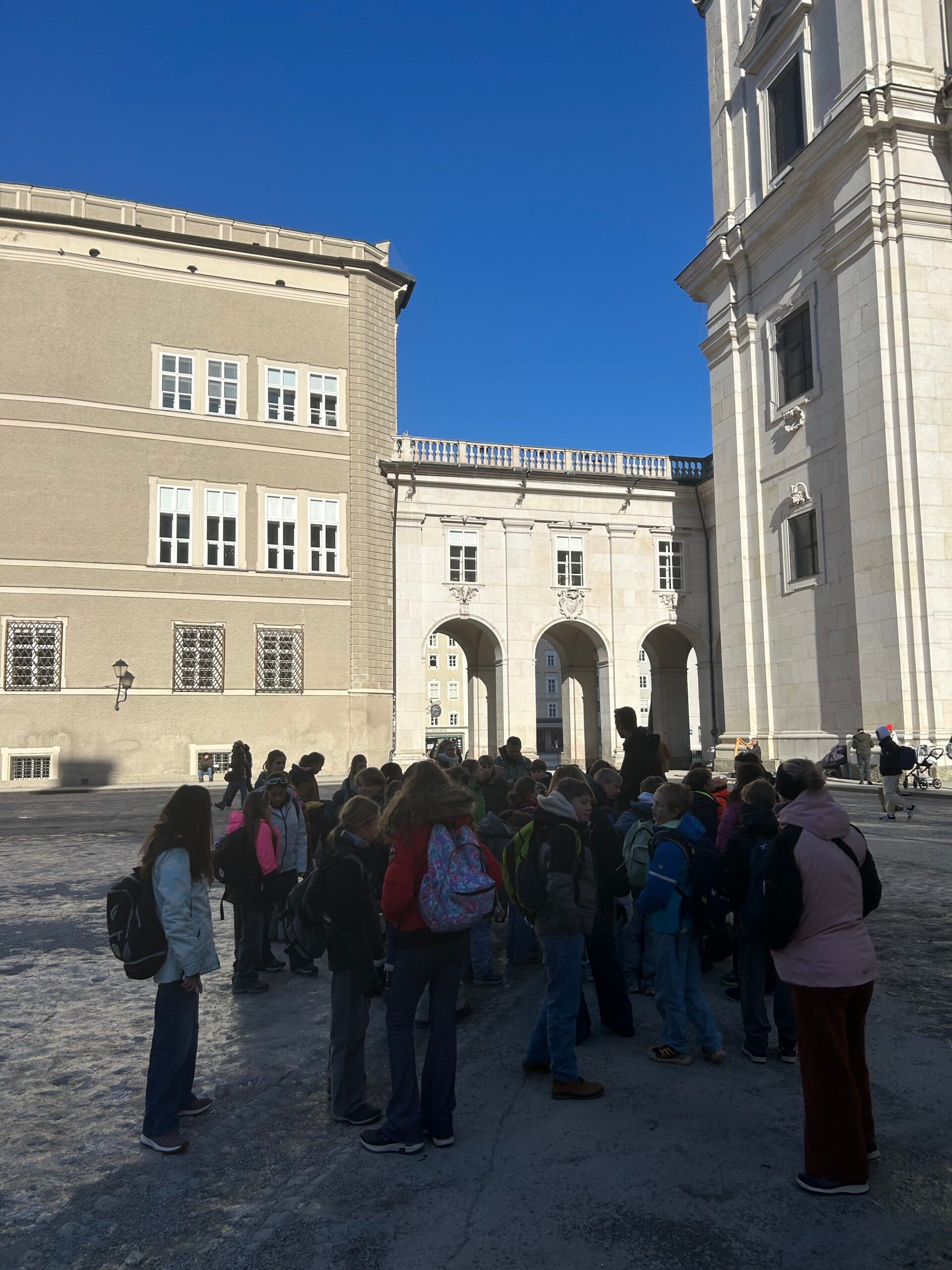 Het ontbijt was hetzelfde als altijd: pistolets en cornflakes. Wel lekker! Na het ontbijt moesten we ook een lunchpakket maken. Daarbij kregen we een reep en een Caprisun om naar Salzburg te gaan! Toen we alles hadden stapten we op de bus en vertrokken we !