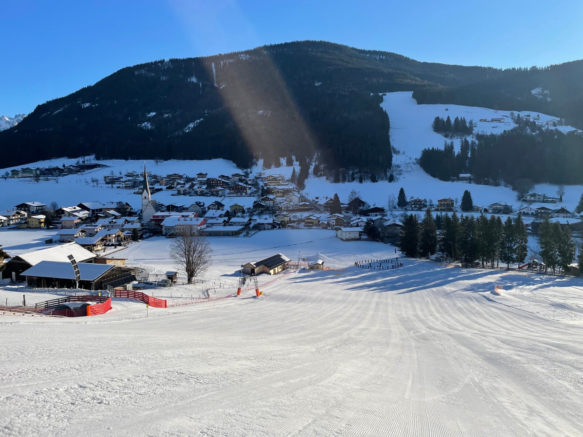 Vandaag een dag zonder skiën. Daarom staan we morgen een hele dat op de latten. 3 groepen blijven in St.-Martin en de hoogte groep gaat al een keer naar Dachstein-West op verkenning.