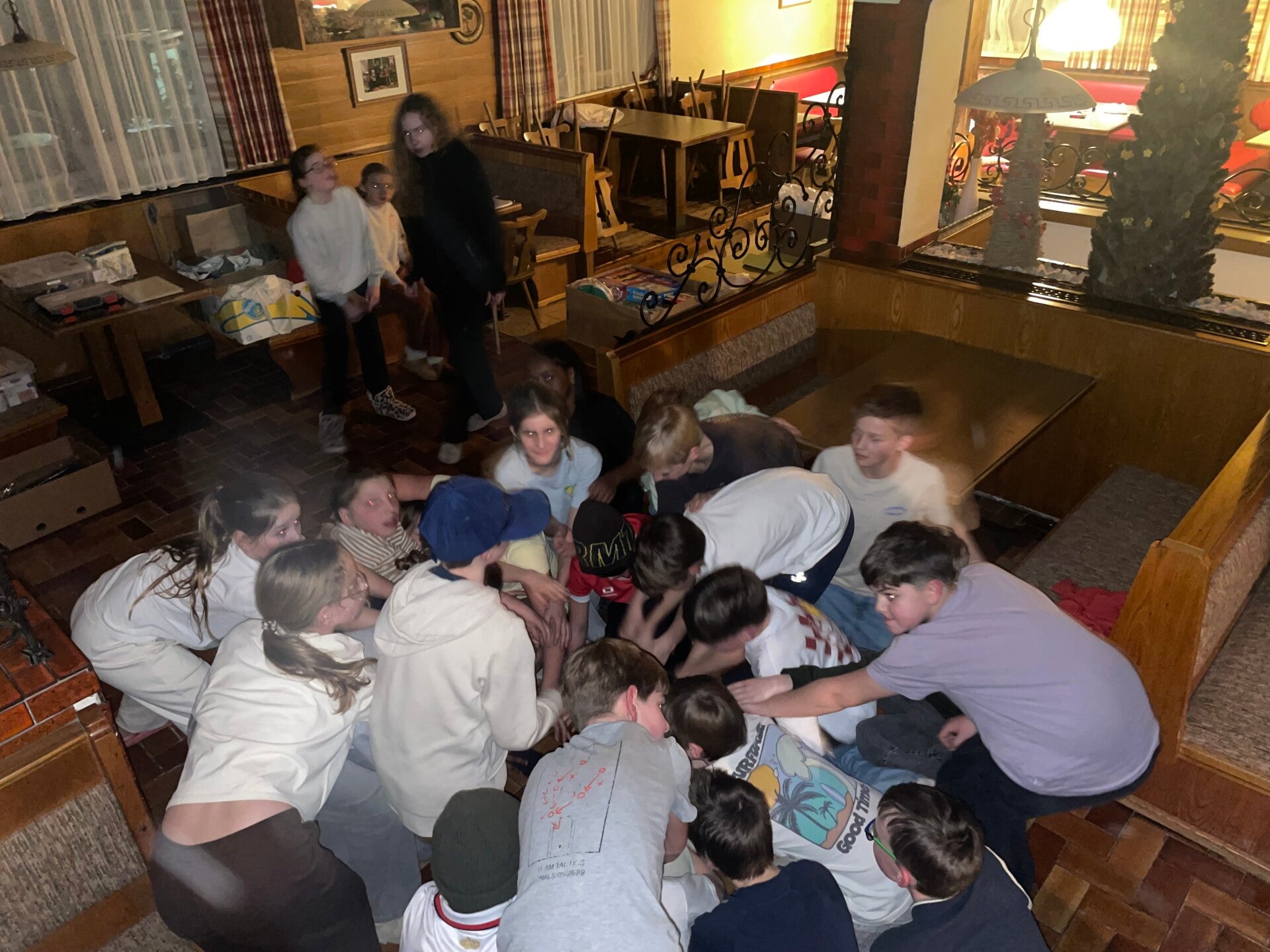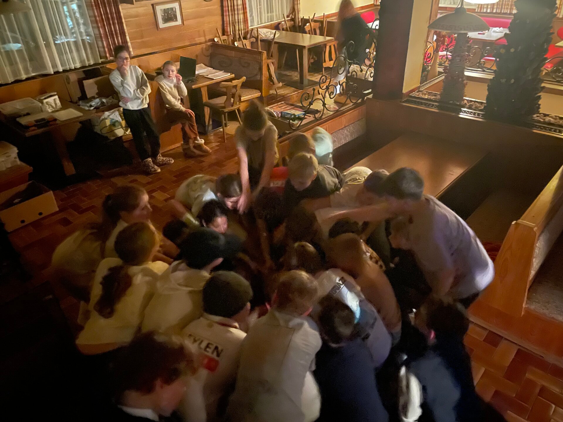 Onze avondactiviteit werd door de skimonitoren georganiseerd. We kregen een vraag en moesten daarbij ook een doe-opdracht doen. Het was een heel leuke dag!