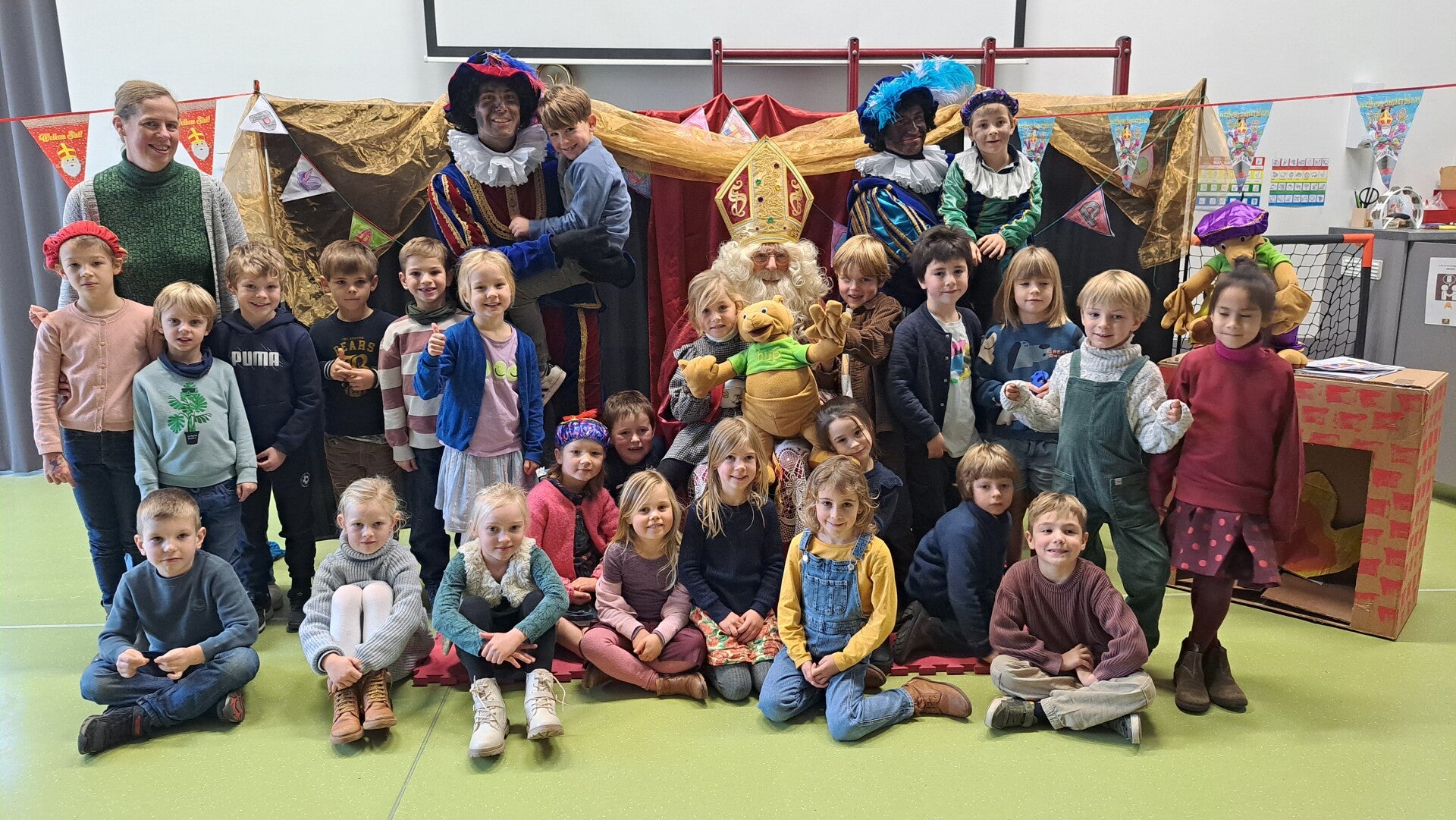 Sinterklaas en de Pieten komen aan op school (Kleuterschool)
